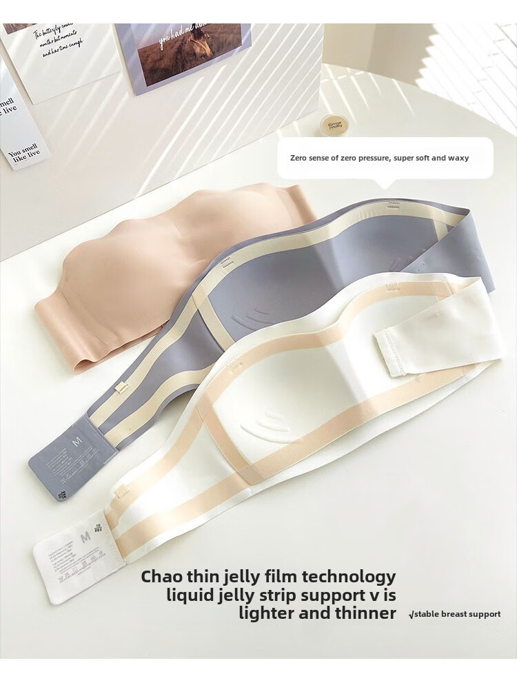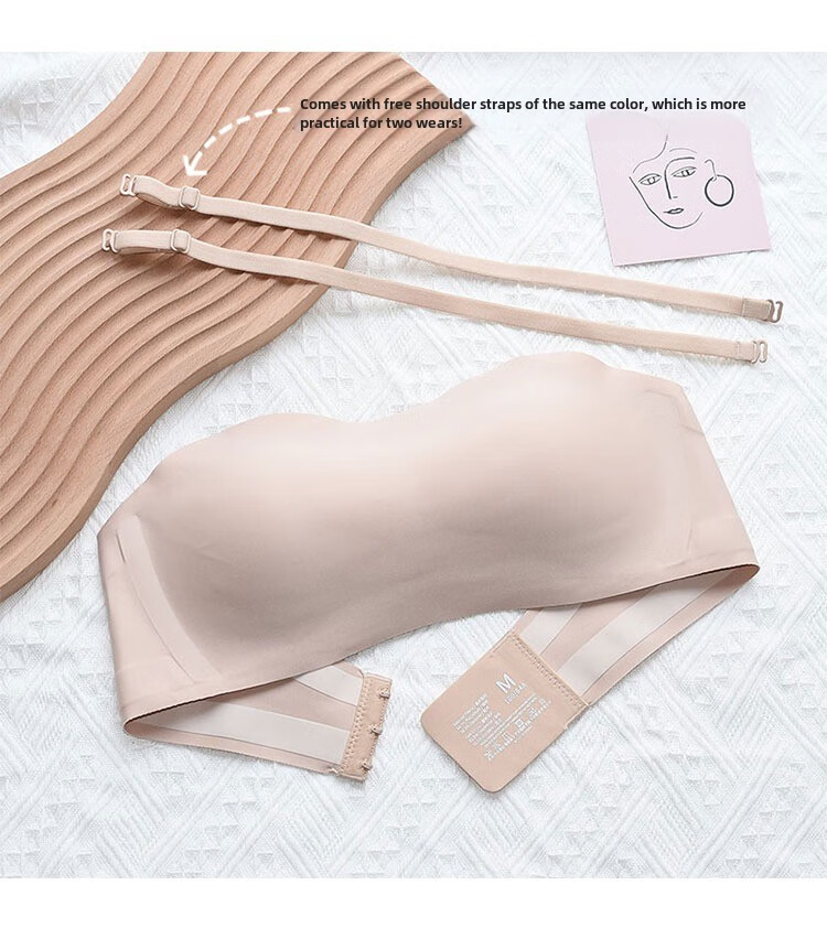 Sturdy strapless women's underwear, non-slip push-up strap type, seamless invisible bra, small breasts, thin wind, white S recommendation 32_70ABC