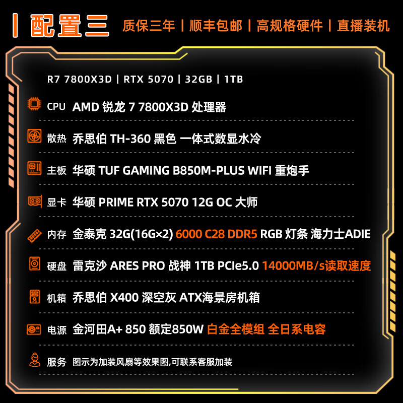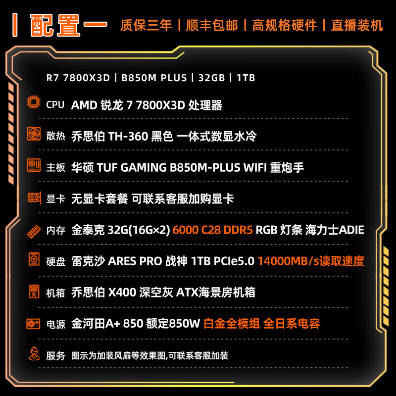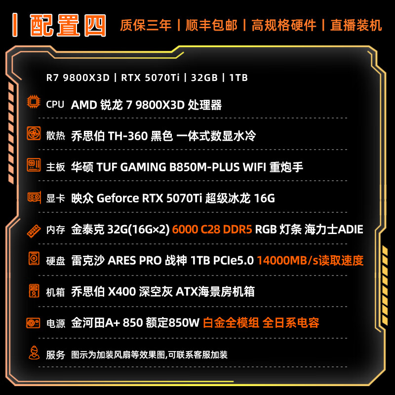 ASUS AMD Ryzen R7 9800X3D host Qiao Sibo X400 RTX5070Ti/RTX5080/9070XT assembled computer graphics card design desktop computer host with two 9800X3D/no graphics card/1T/32G