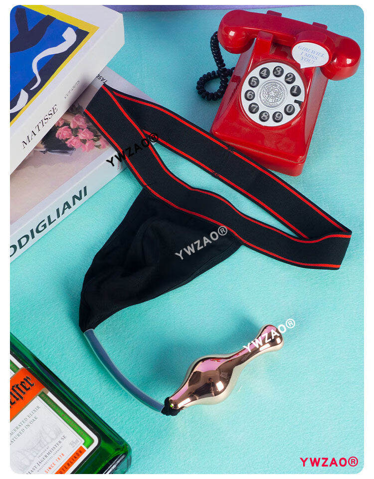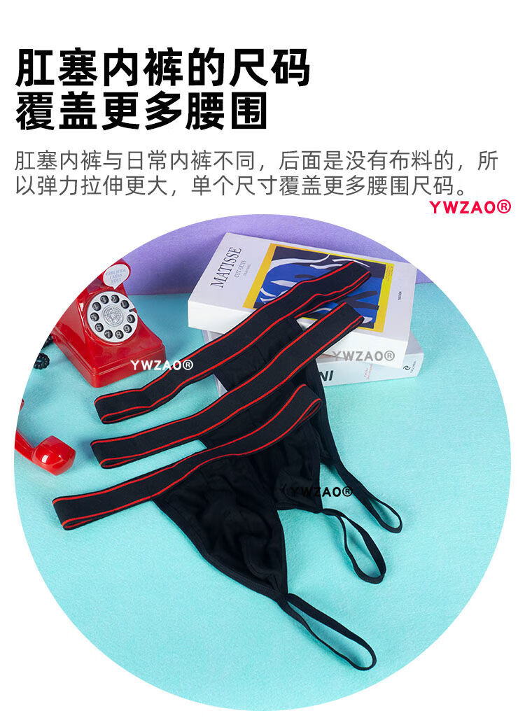Special sexy temptation sm men's going out thong anal plug underwear leg tightening sexy N14 black combination fingertip silicone + underwear inch A28-32