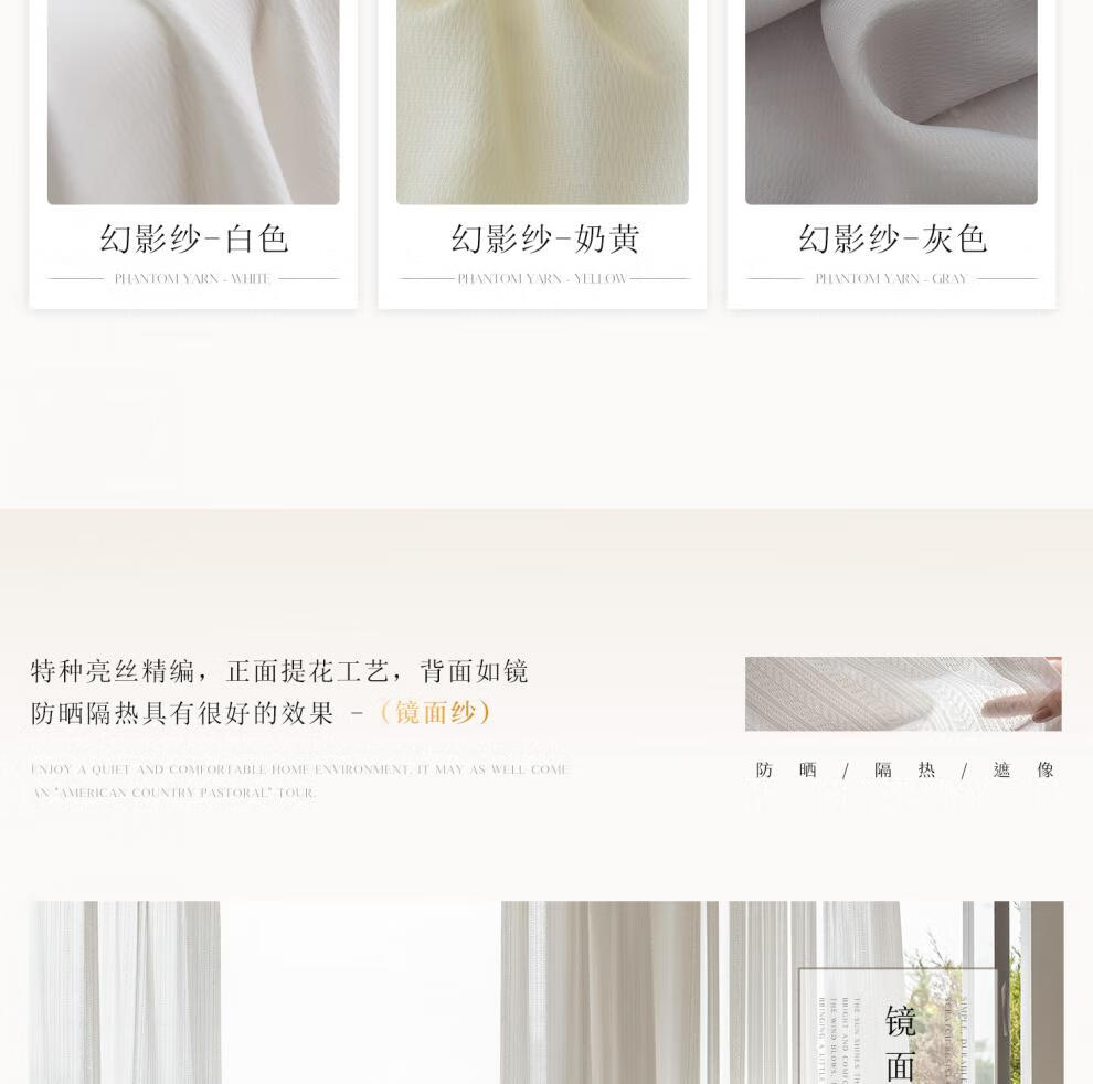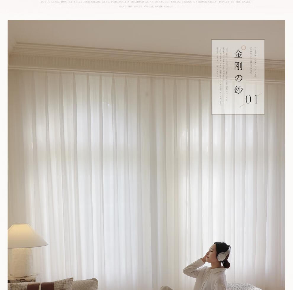Diamond gauze curtain, white gauze curtain, light and opaque gauze, heat insulation and sun protection, white gauze living room balcony bay window window screen, light and opaque phantom gauze - white, 2.0 meters wide, 2.0 meters high, perforated