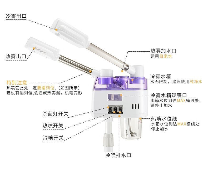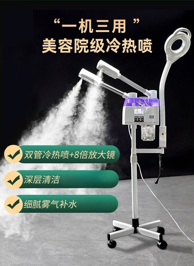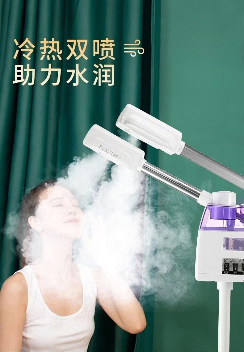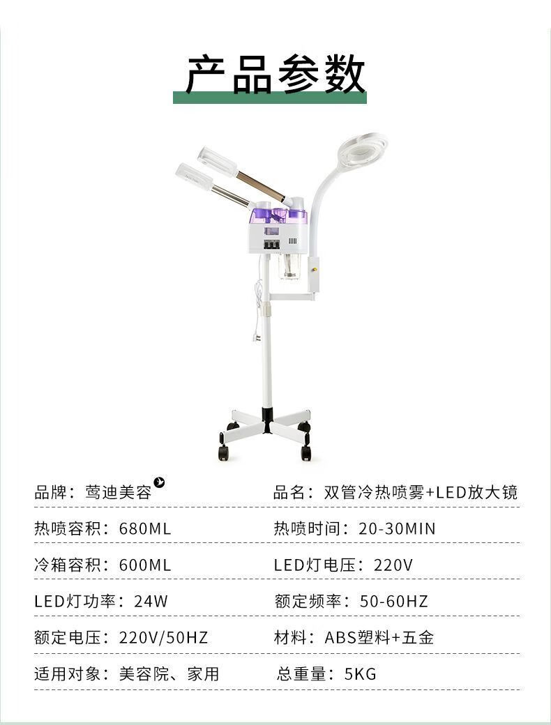 OCDREDY hot and cold spray machine facial steamer beauty instrument cold spray hot spray hydration instrument beauty salon use facial steamer hot spray facial humidifier with magnifying light white 225 button type double tube hot and cold spray + magnifying light