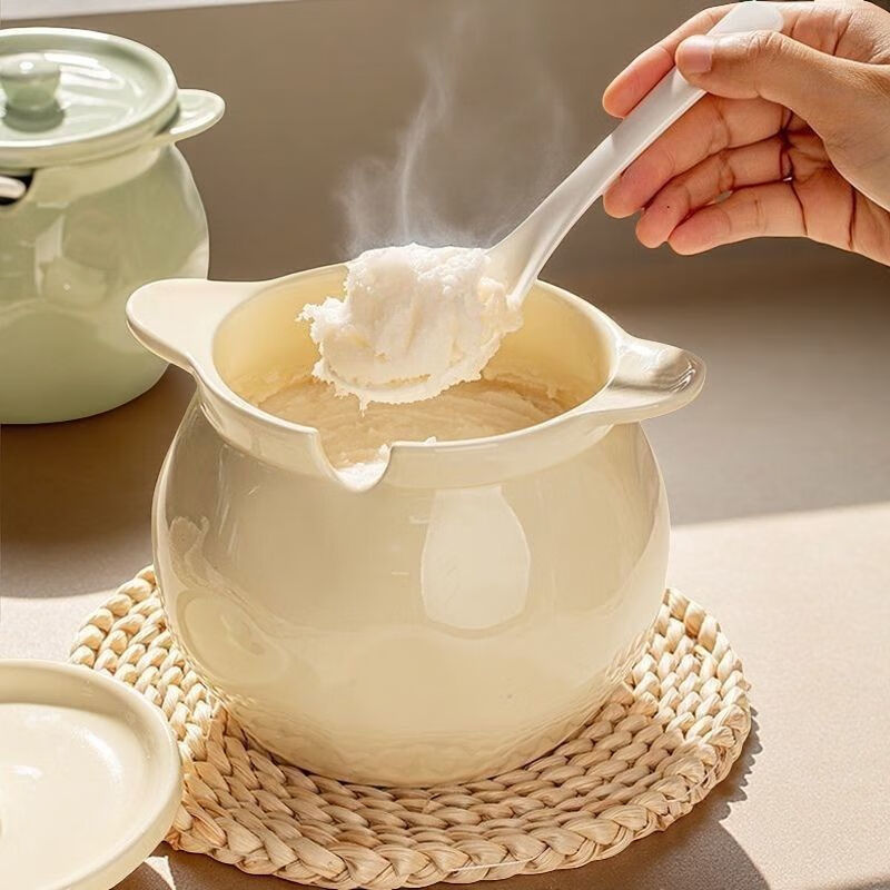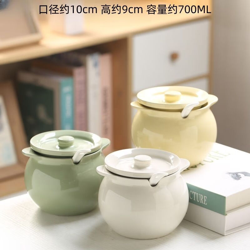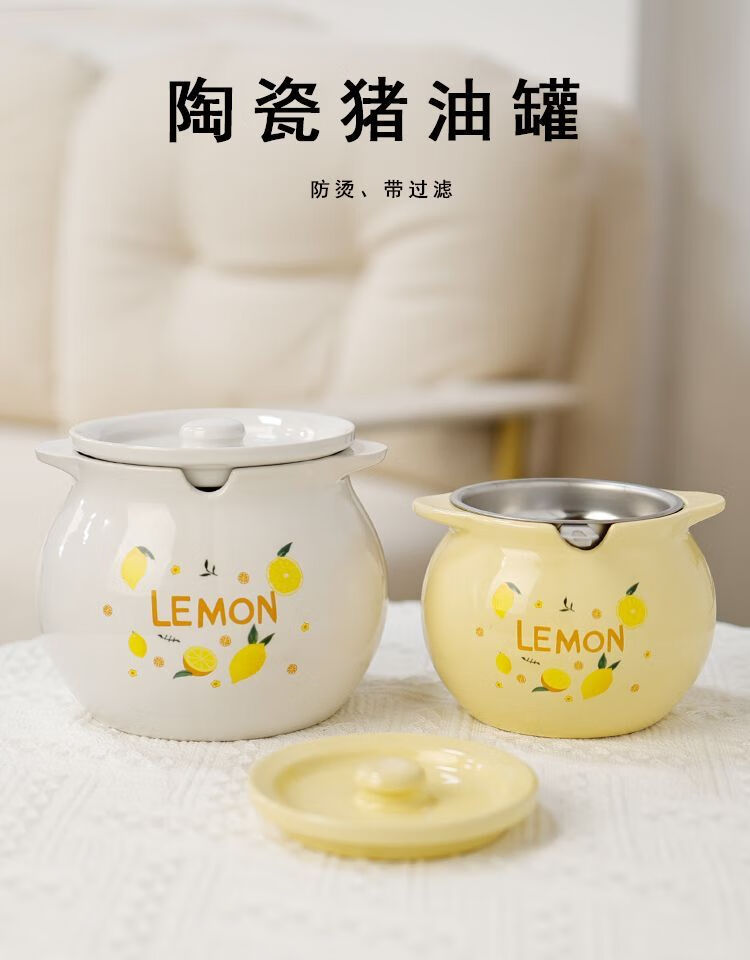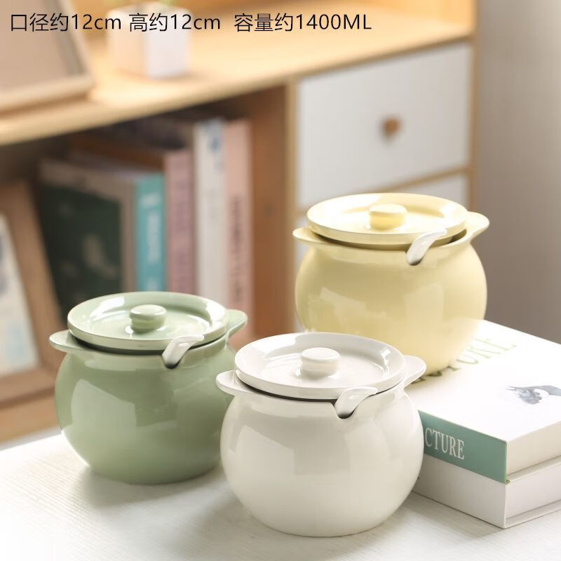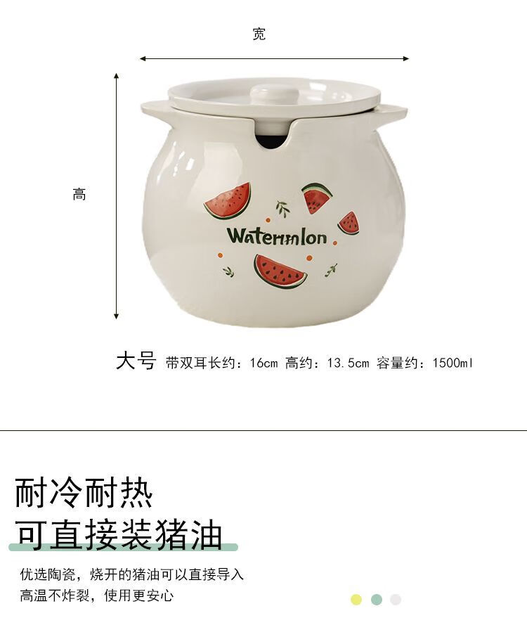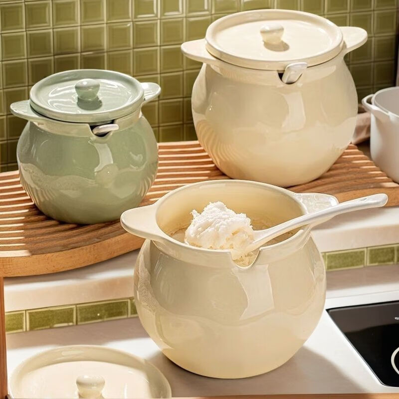 FANCYCHIC ceramic canned lard, high temperature resistant lard can with lid, spicy pepper jar, chili jar, oil storage jar, kitchen household, high temperature resistant, large capacity, large three-piece set, milk green 1400ML + lid + spoon