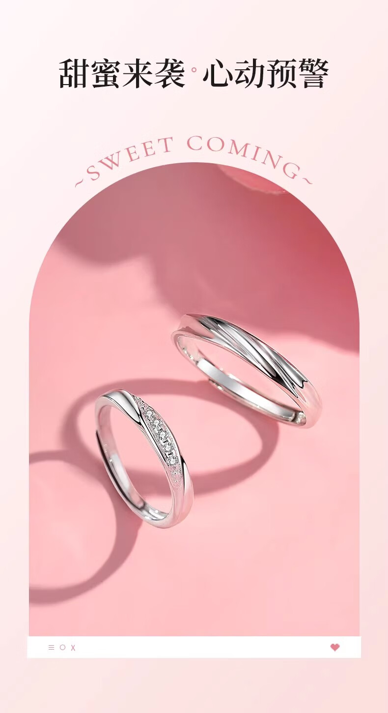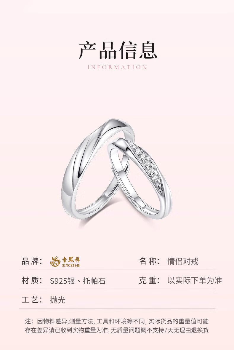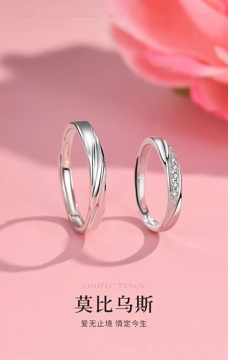 Lao Fengxiang's new Mobius ring, a pair of s925 silver couple's high-end birthday gift for girlfriend and wife, lucky koi ring, brand gift box