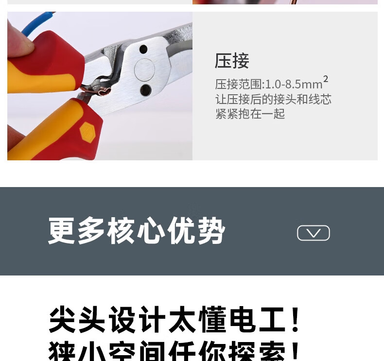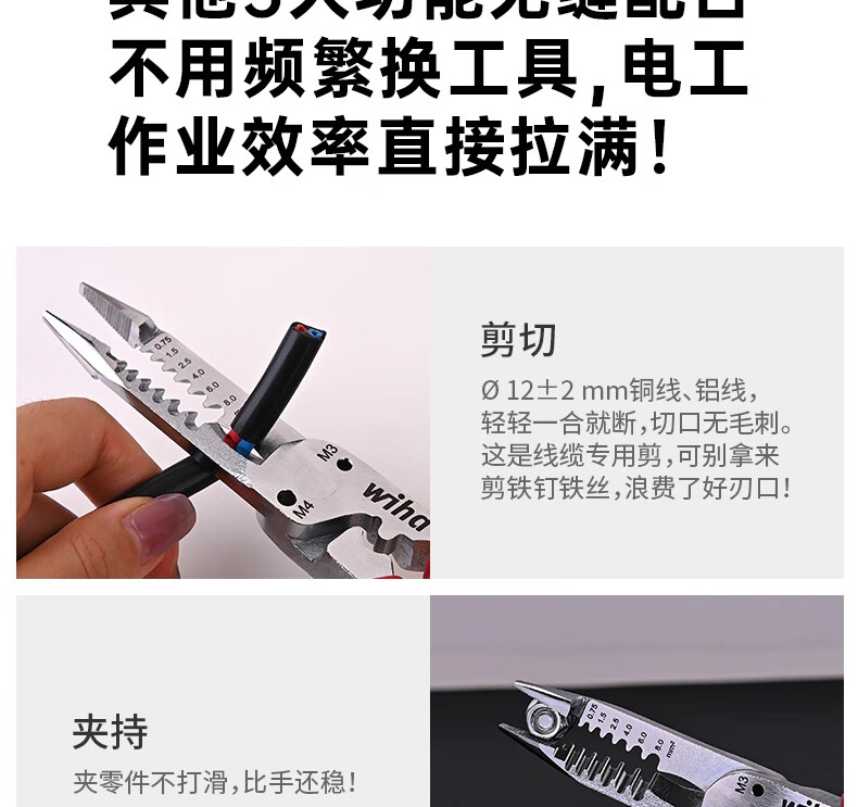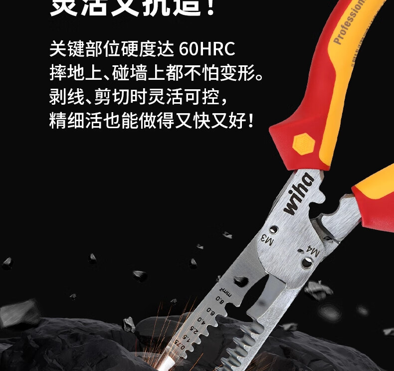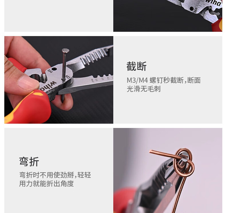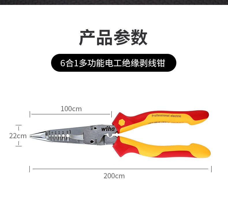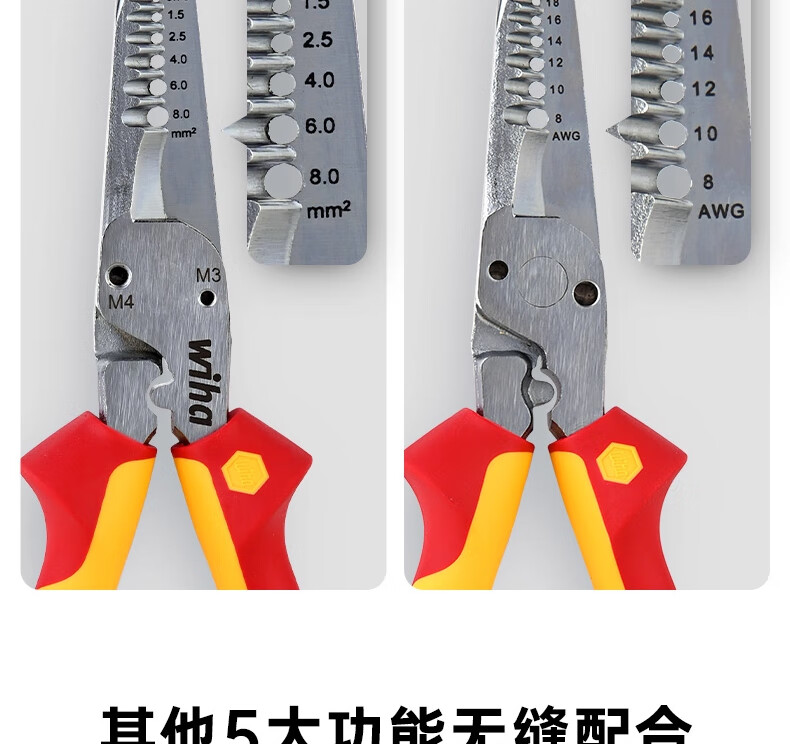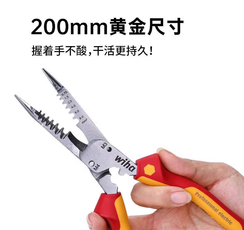 Weihan German Weihan new 6-in-1 electrician's pliers imported multi-functional electrician's special wire stripping and cutting pliers VDE insulated new product launch - 6-in-1 8-inch 200MM 47199