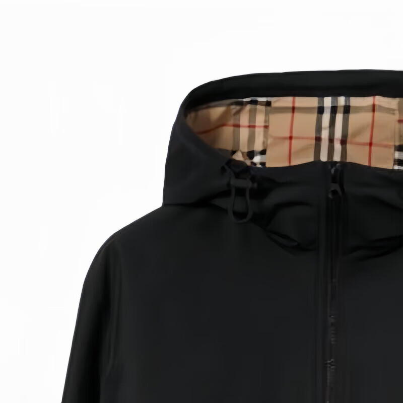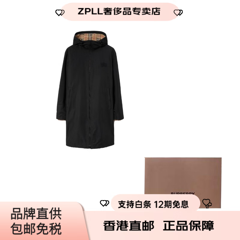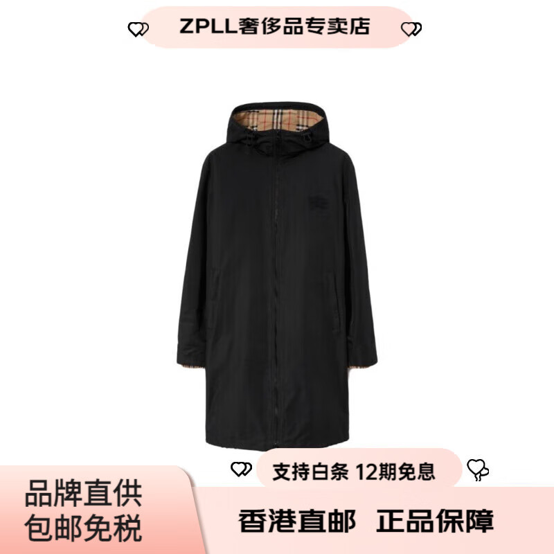 Burberry (BURBERRY) FW23CH color liso con capucha y cremallera de manga larga cortavientos de longitud media para hombre negro negro L sin bolsa de regalo original caja de regalo