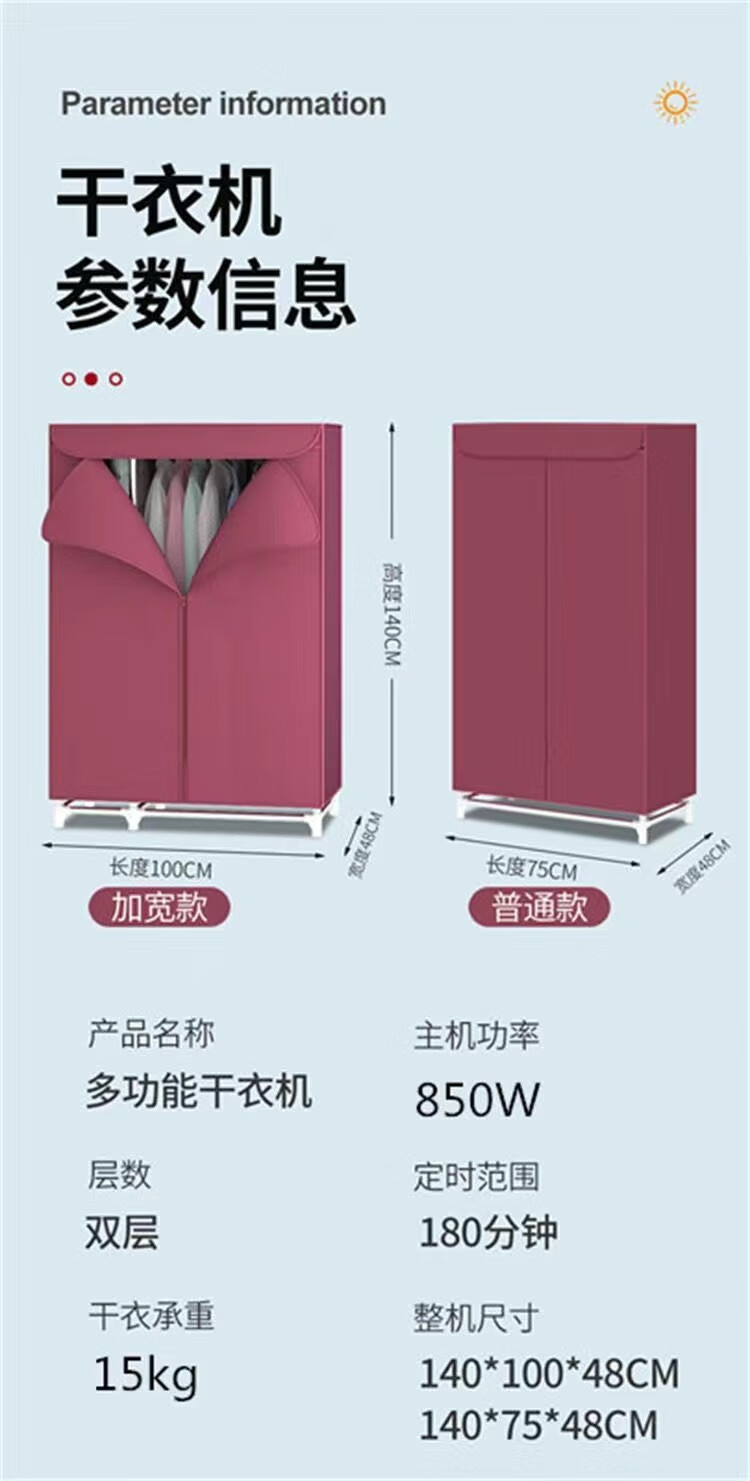 Dryer household clothes dryer heater large capacity quick-drying clothes small baby sterilization dryer dormitory standard (12-16 pieces of dry clothes) brown large capacity thickened painted iron pipe
