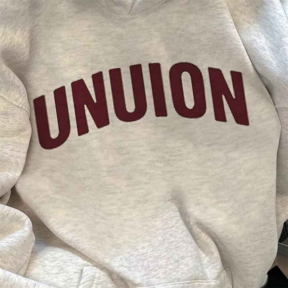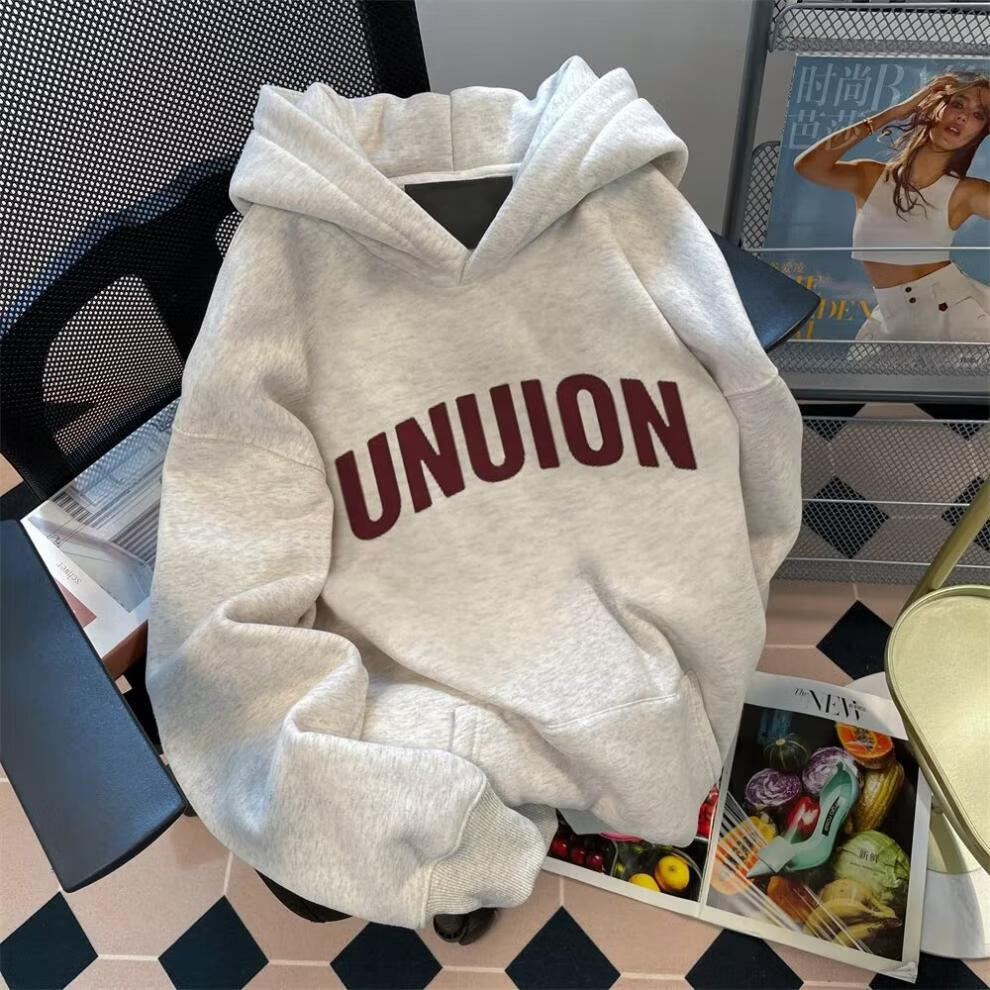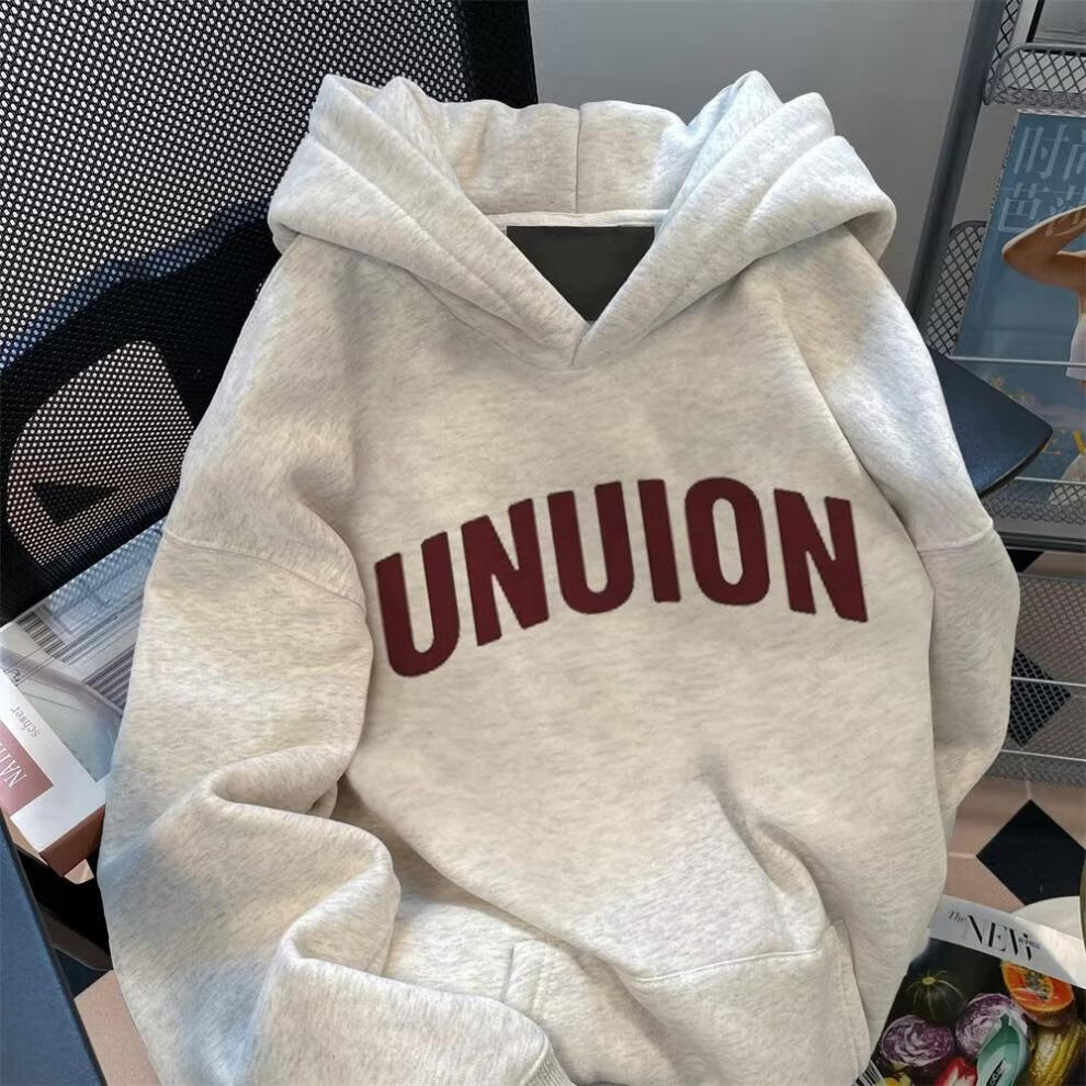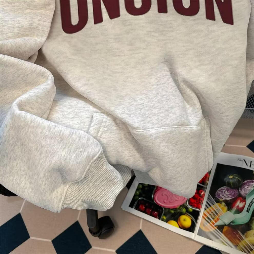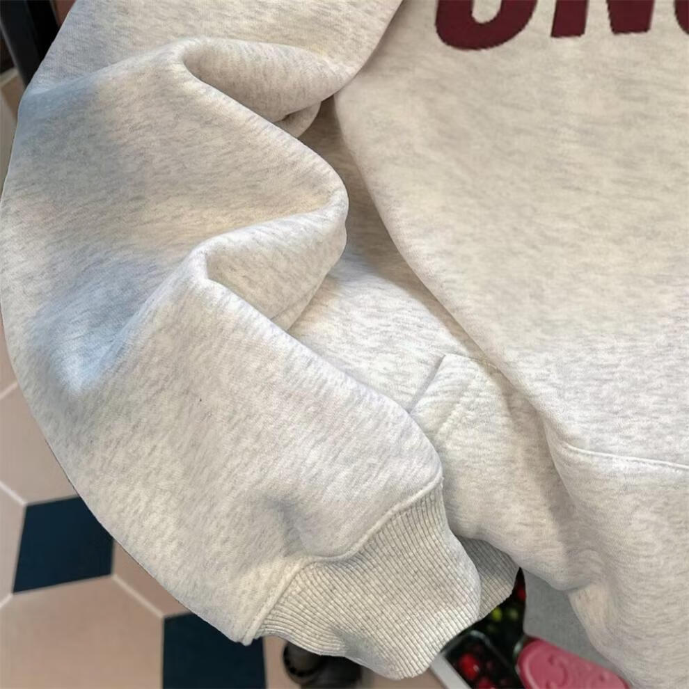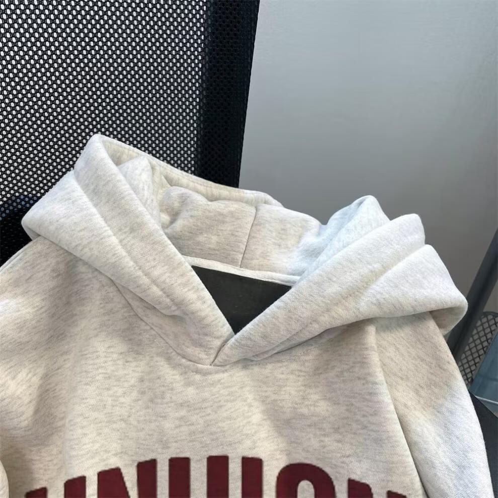花灰色连帽加绒重磅卫衣男女2025秋冬厚款宽松时尚美式复古外套潮 米灰色 加绒 2XL