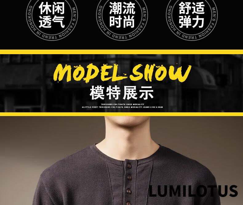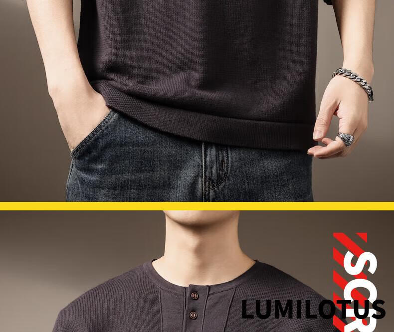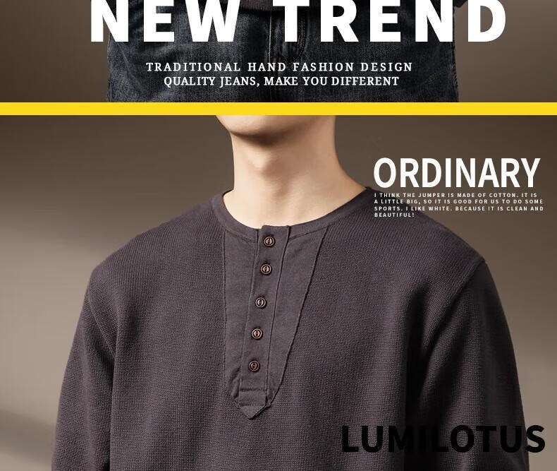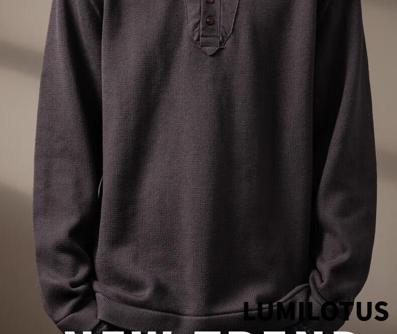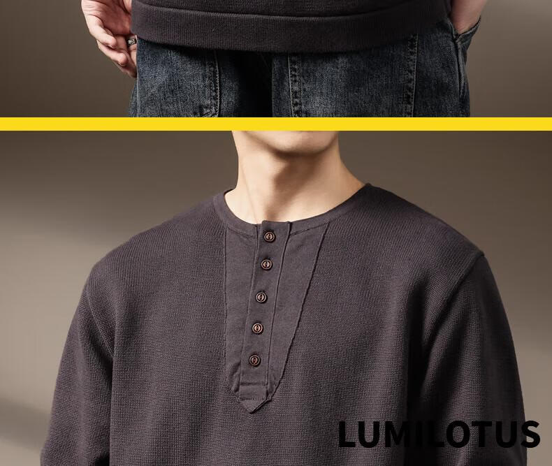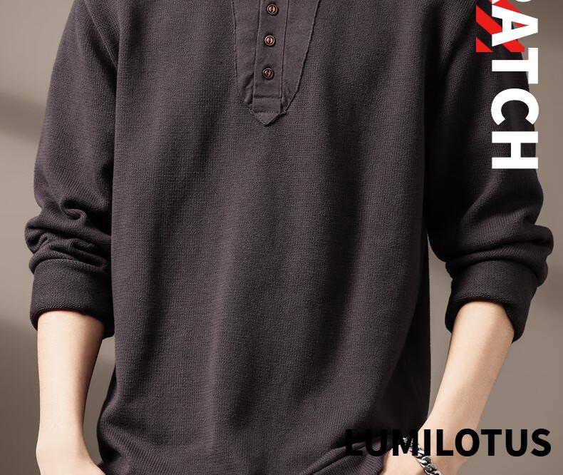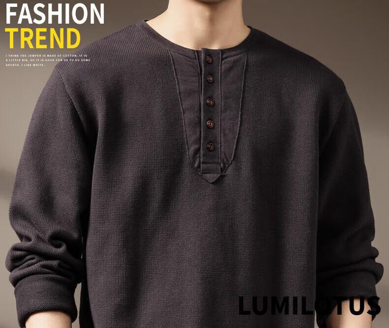 LUMILOTUS light luxury new brand high-end American tough guy Henry collar sweater men's winter new heavy retro casual classic style S suitable for 90-110 Jin Jin equals 0.5 kg