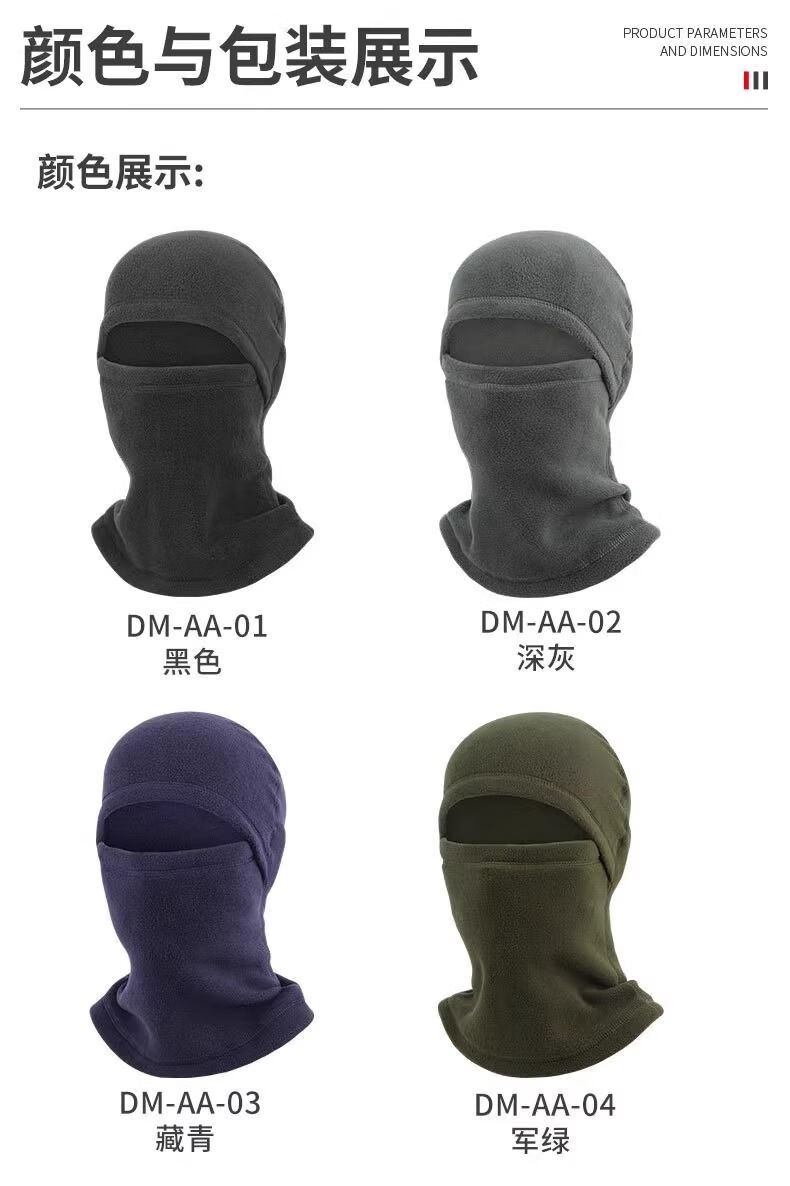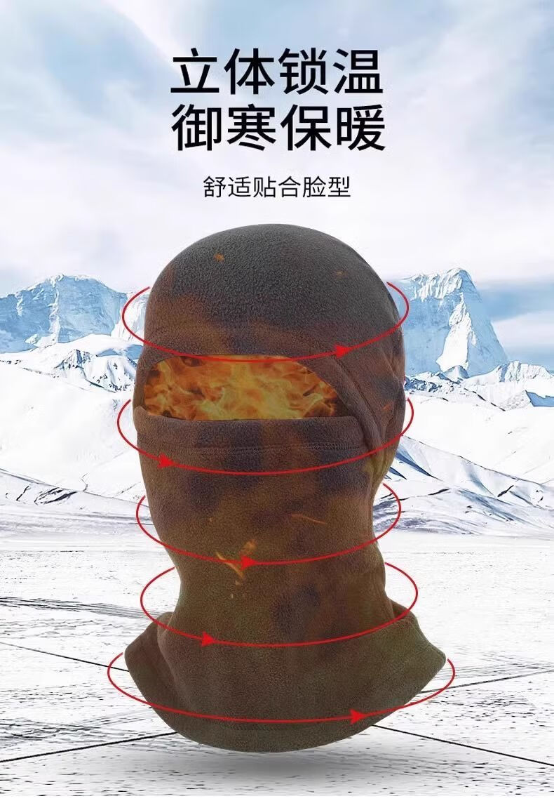 Cycling warm hat, winter windproof mask, polar fleece full face integrated neck hood, motorcycle anti-freeze and cold protection, plus velvet and thickening - black