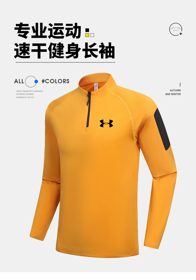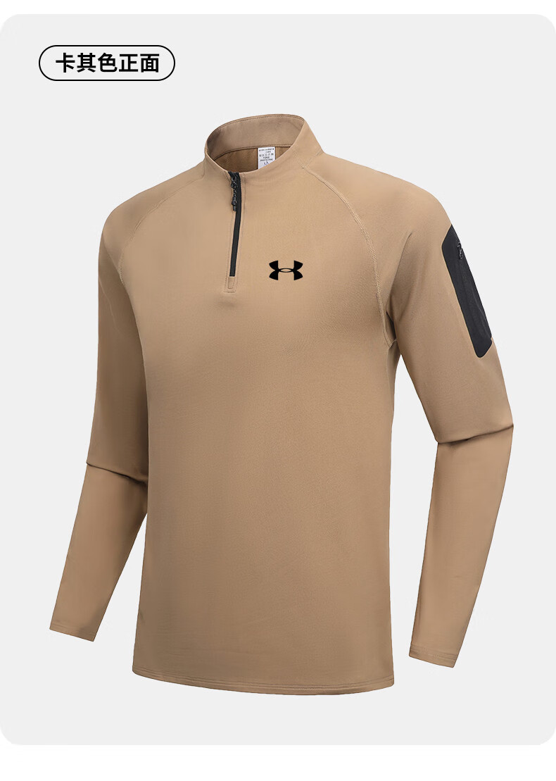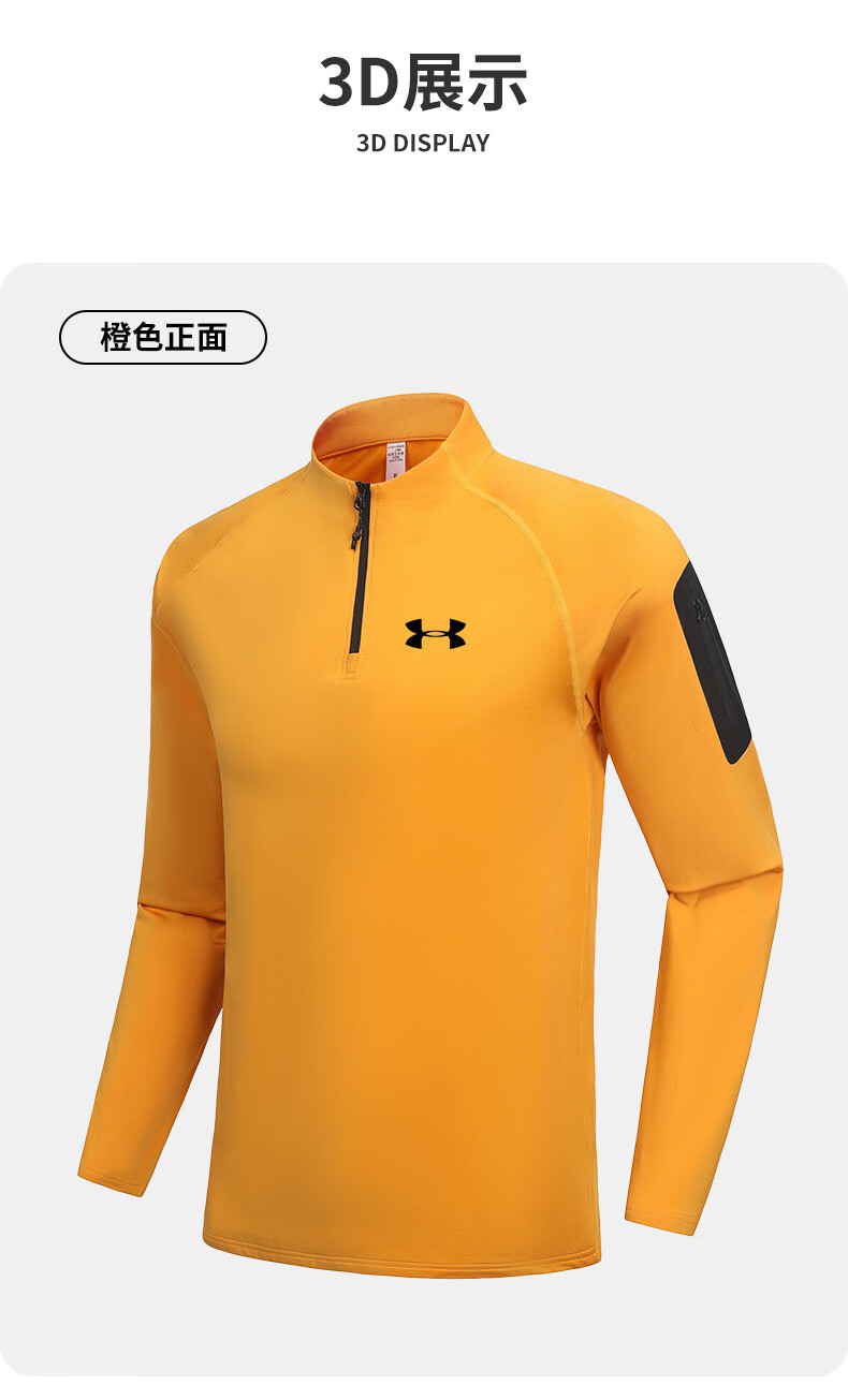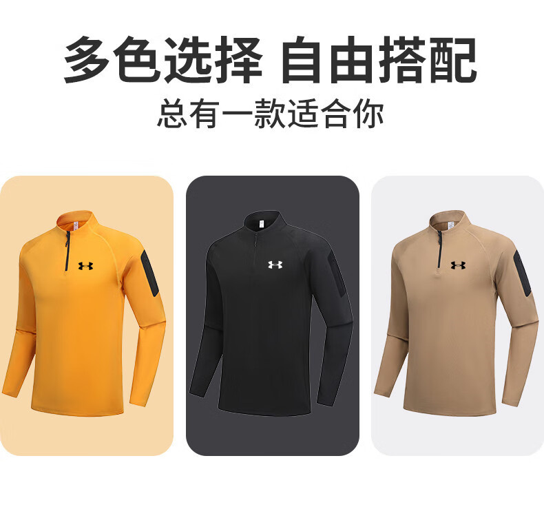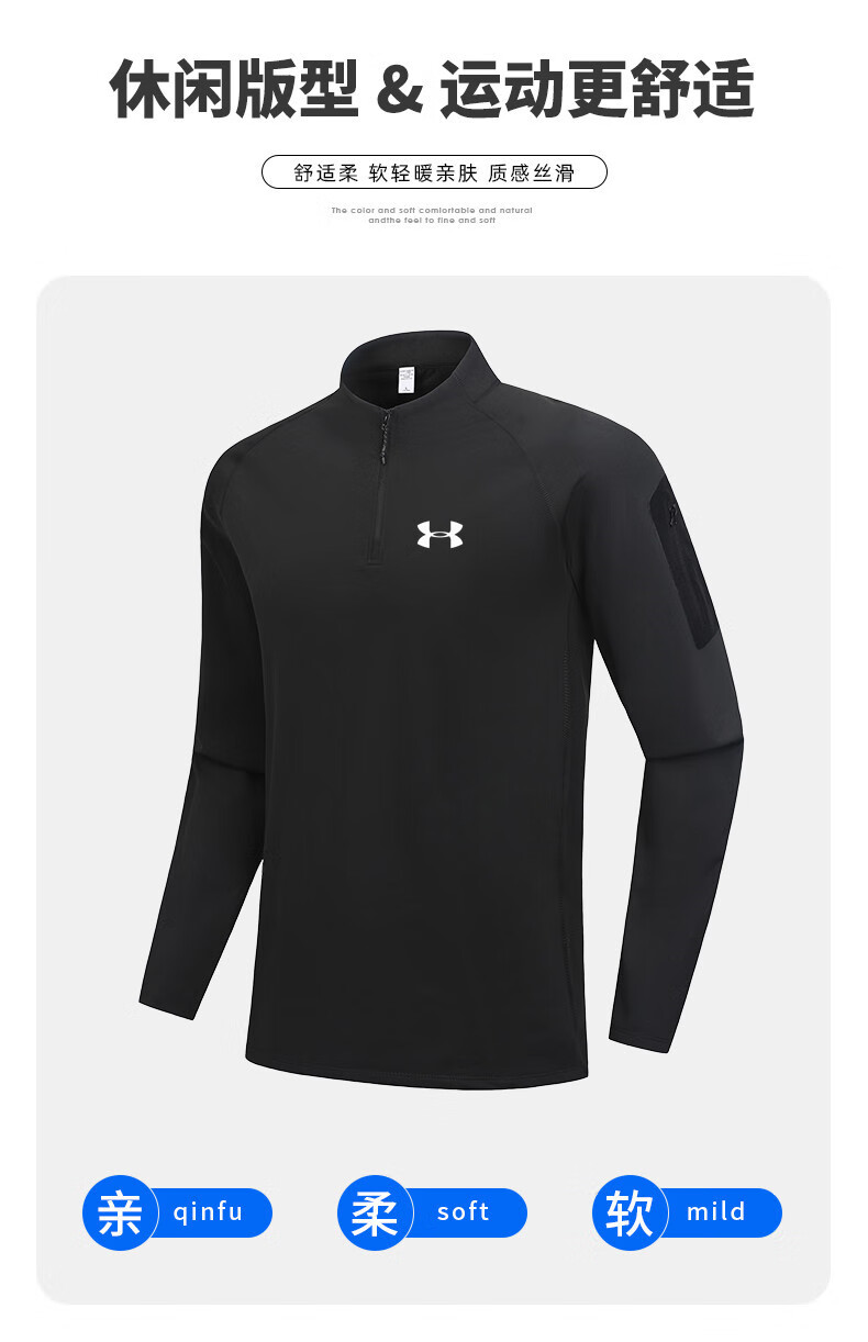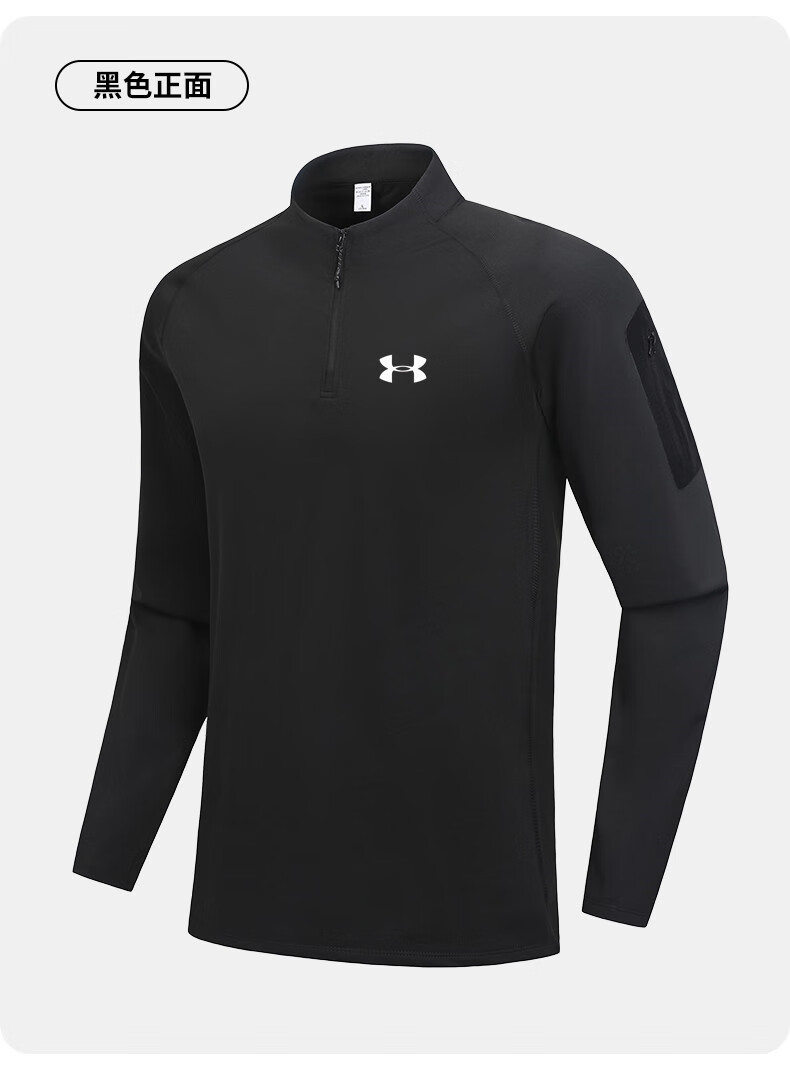 Under Armor fitness long-sleeved men's loose elastic half-zip sports t-shirt American running autumn and winter basketball training cycling jersey black 2XL recommended 170-190Jin Jin equals 0.5 kg