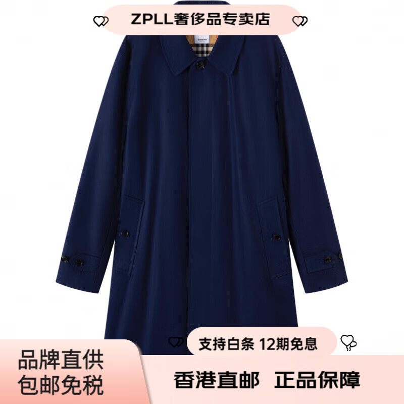 Burberry (BURBERRY) SS25 solid color single-breasted lapel long-sleeved windbreaker for men, navy blue, one size 46