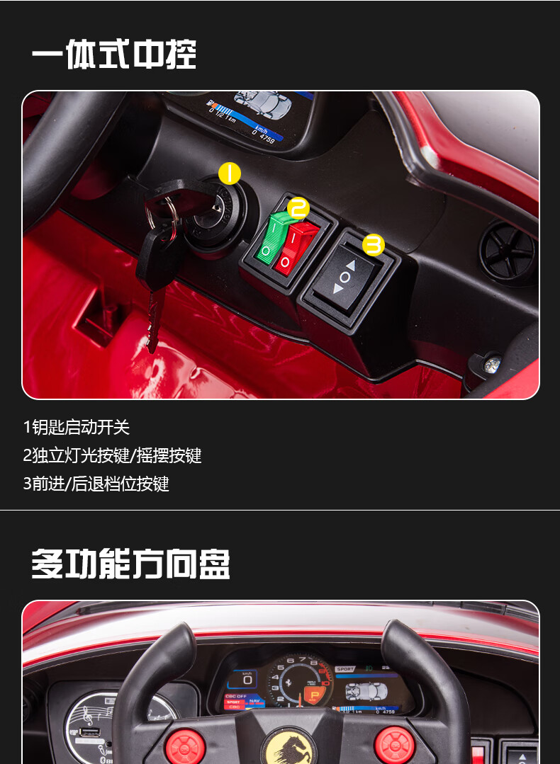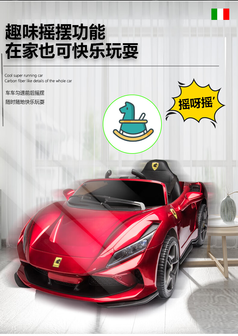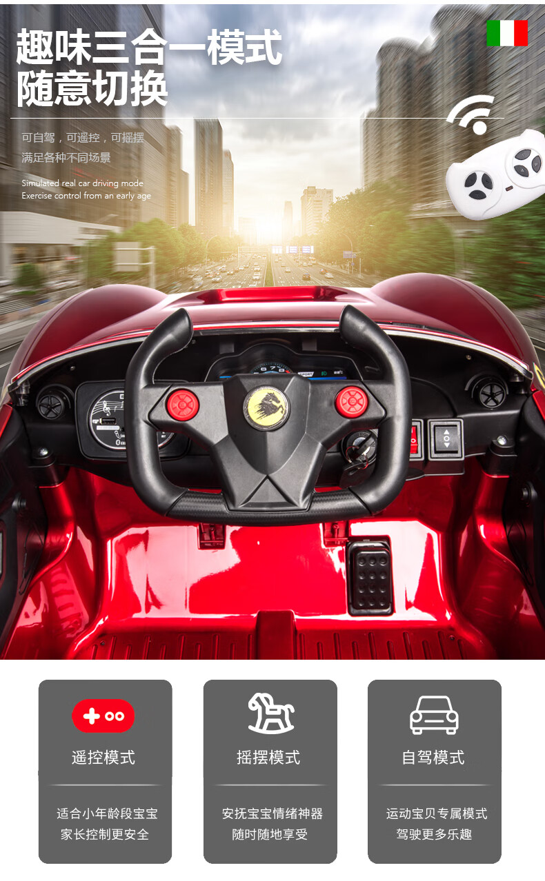 WORK BABY Ferrari children's electric car four-wheel remote control car baby toy car can sit adults and children charging single drive small battery without remote control