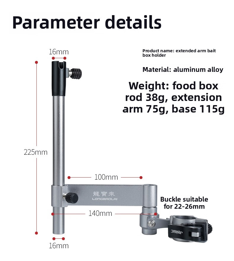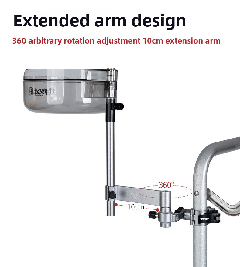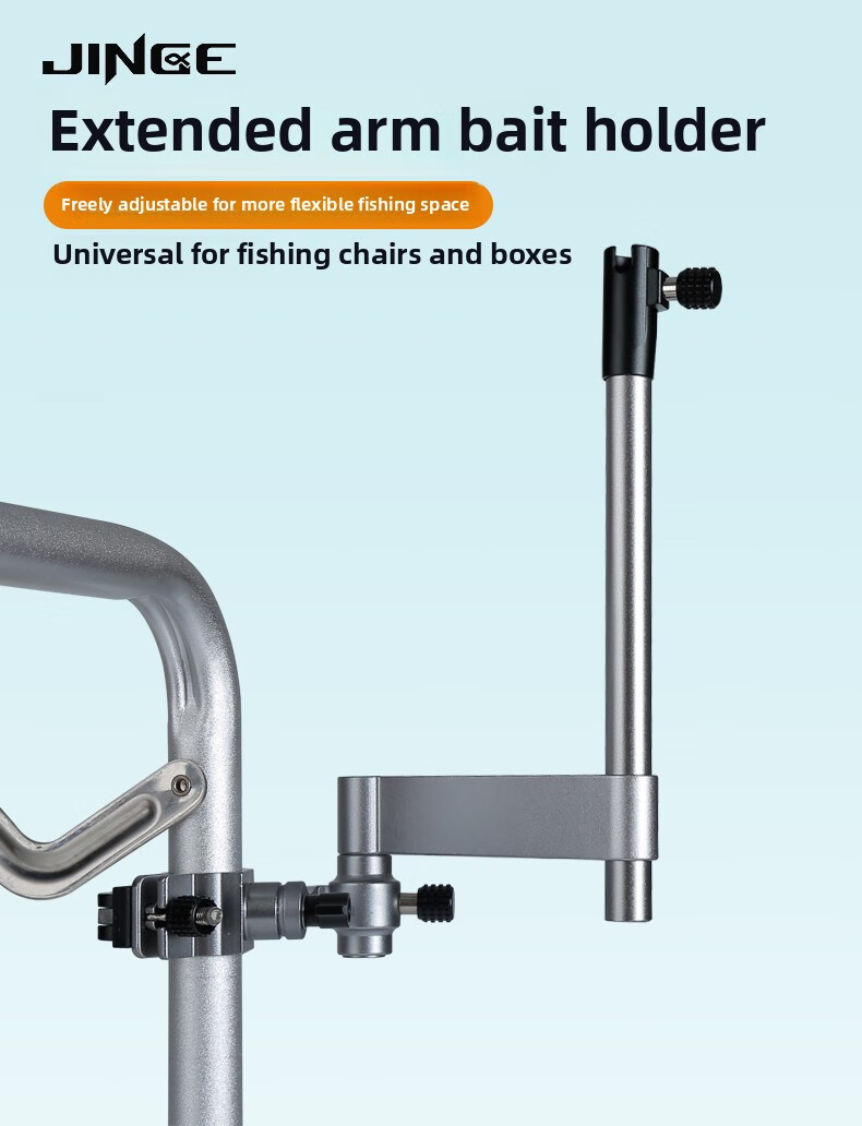 JIN GE aluminum alloy fishing chair accessories bait box rack bait box extension arm bracket fishing bait box rack fishing gear food box rod