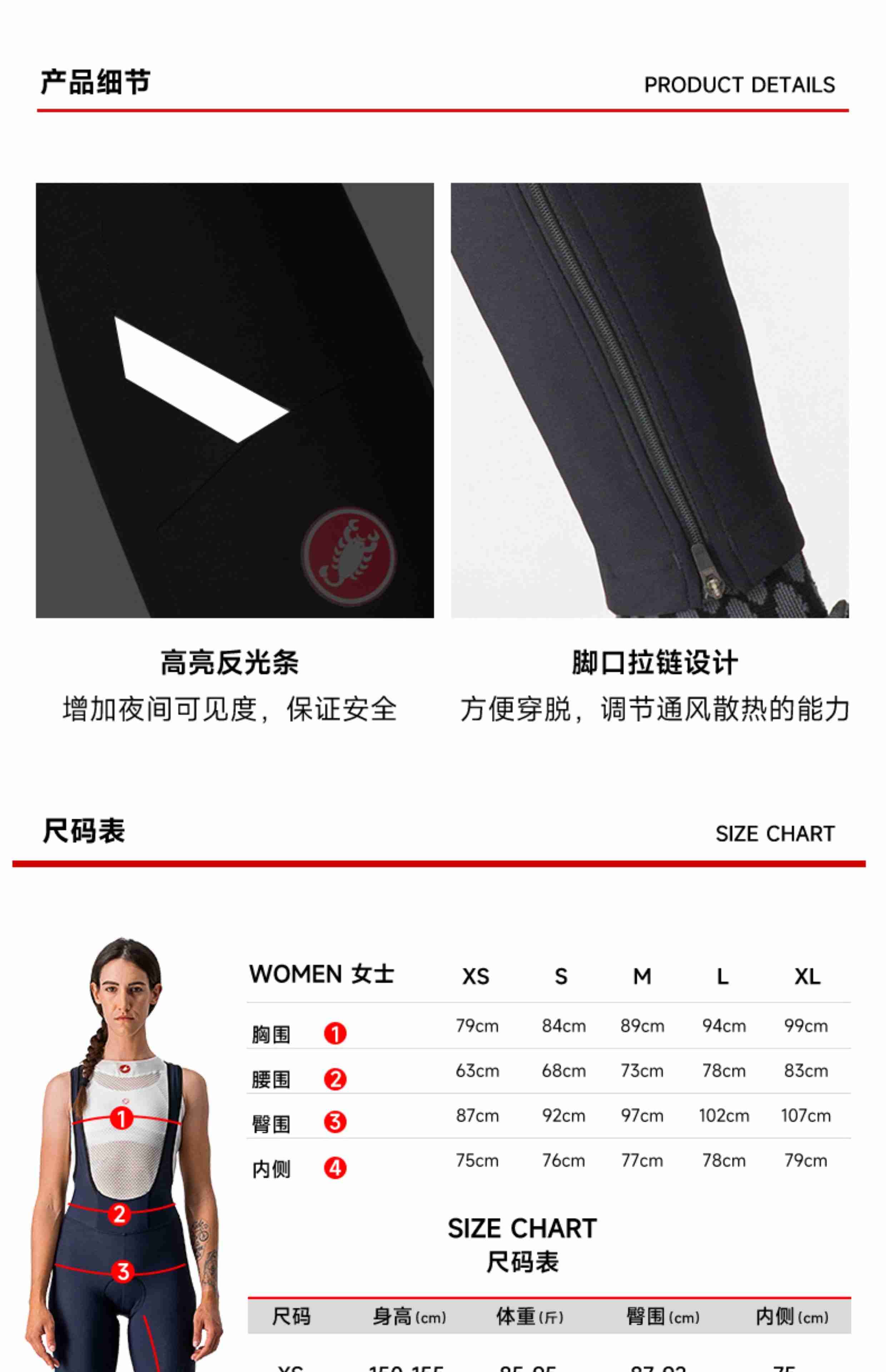 CASTELLI Scorpion women's spring and autumn stretch thin velvet all-terrain universal cycling jersey bib trousers 45 ah practice M