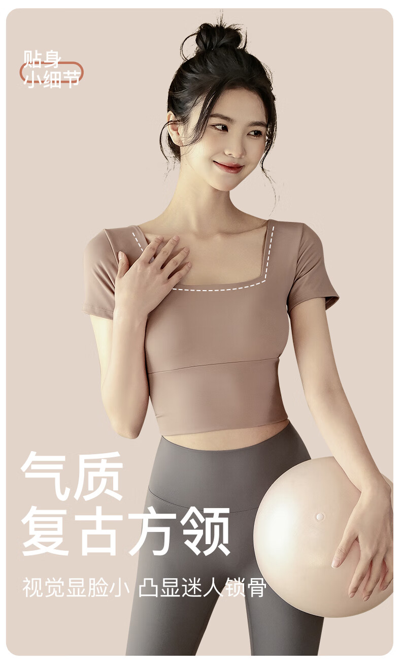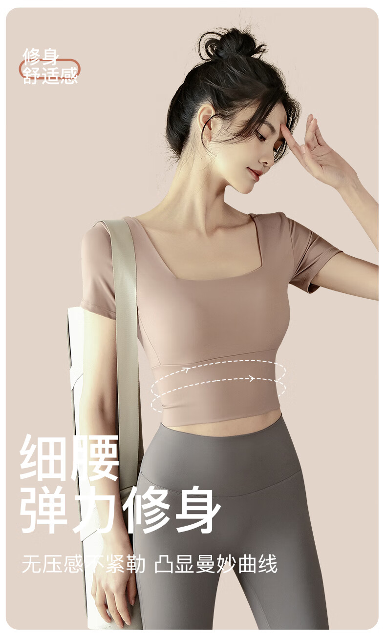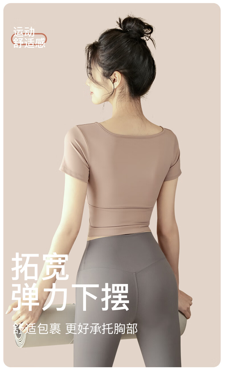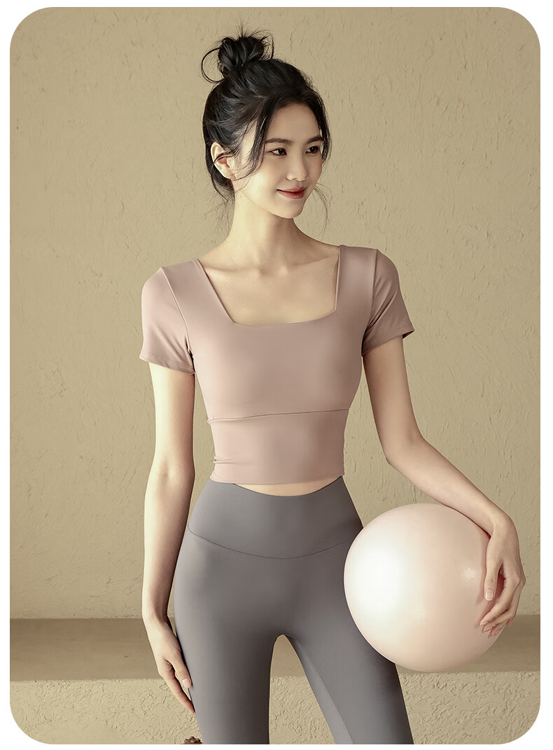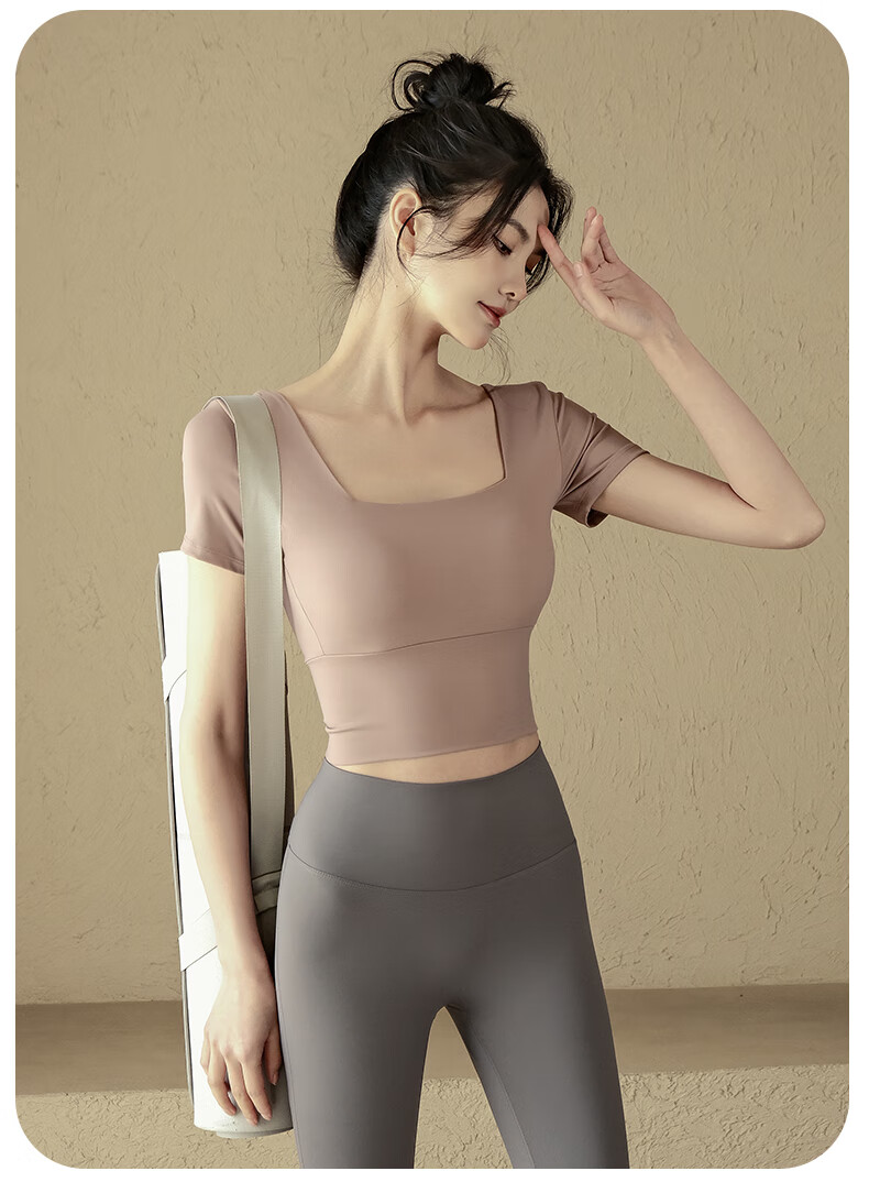 ACKDCS yoga wear with chest pad, short-sleeved women's summer Pilates training fitness top, running sports T-shirt S pink short-sleeved + sea rock gray pants Suit with stand M Recommended 95-110Jin Jin equals 0.5 kg