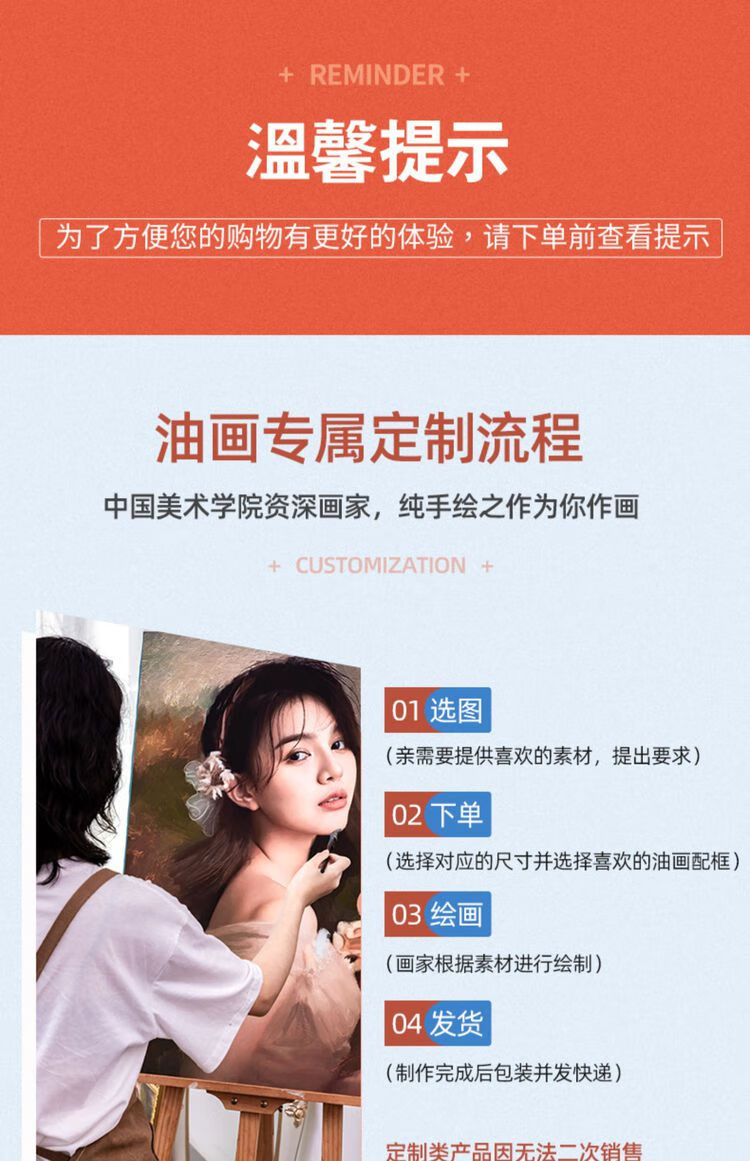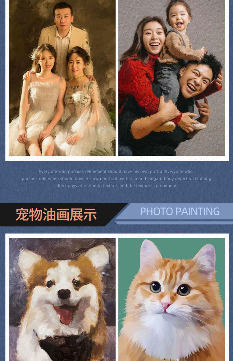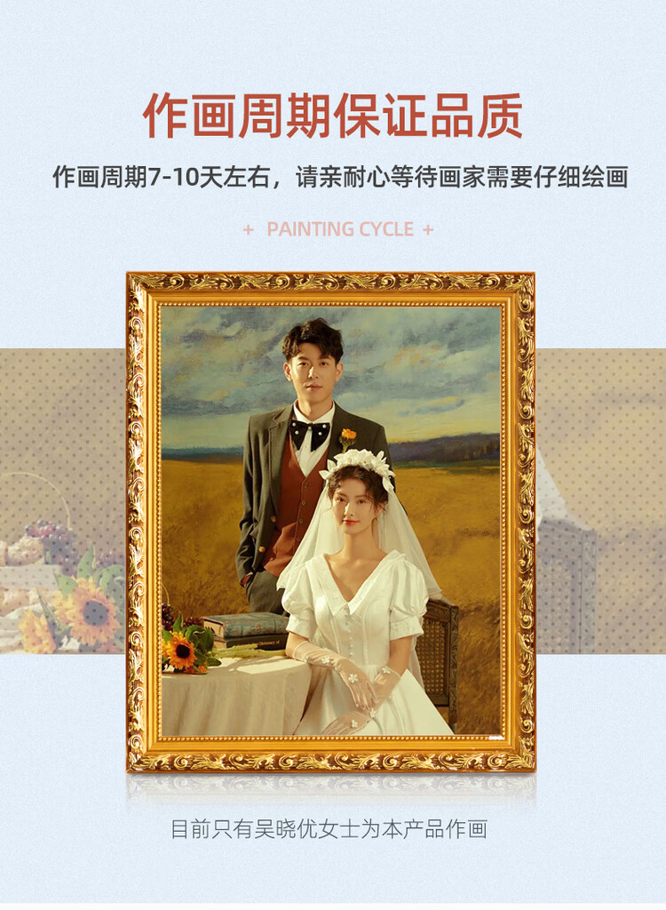 Yusenyi customized oil painting portrait, real person portrait, pure hand-painted landscape, pet living room hanging painting, couple wedding photo outfit, Marseille platinum 60-inch oil painting, universal horizontal and vertical, 110x170CM, single frame