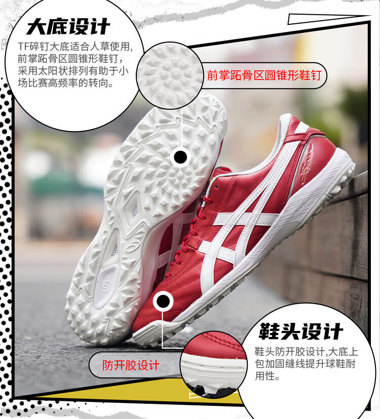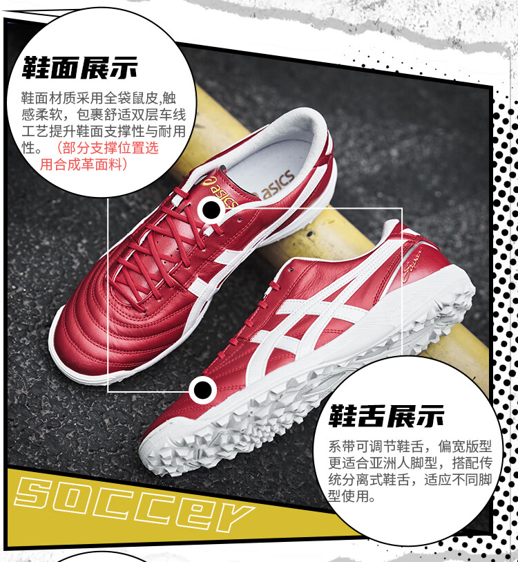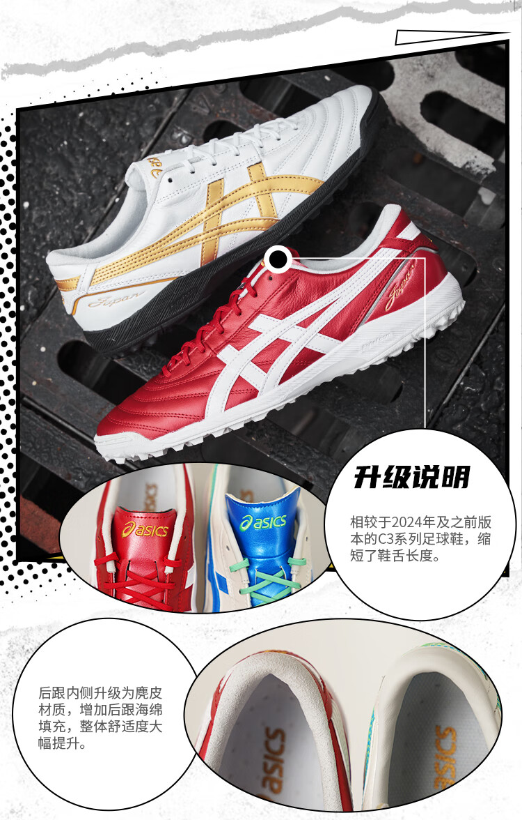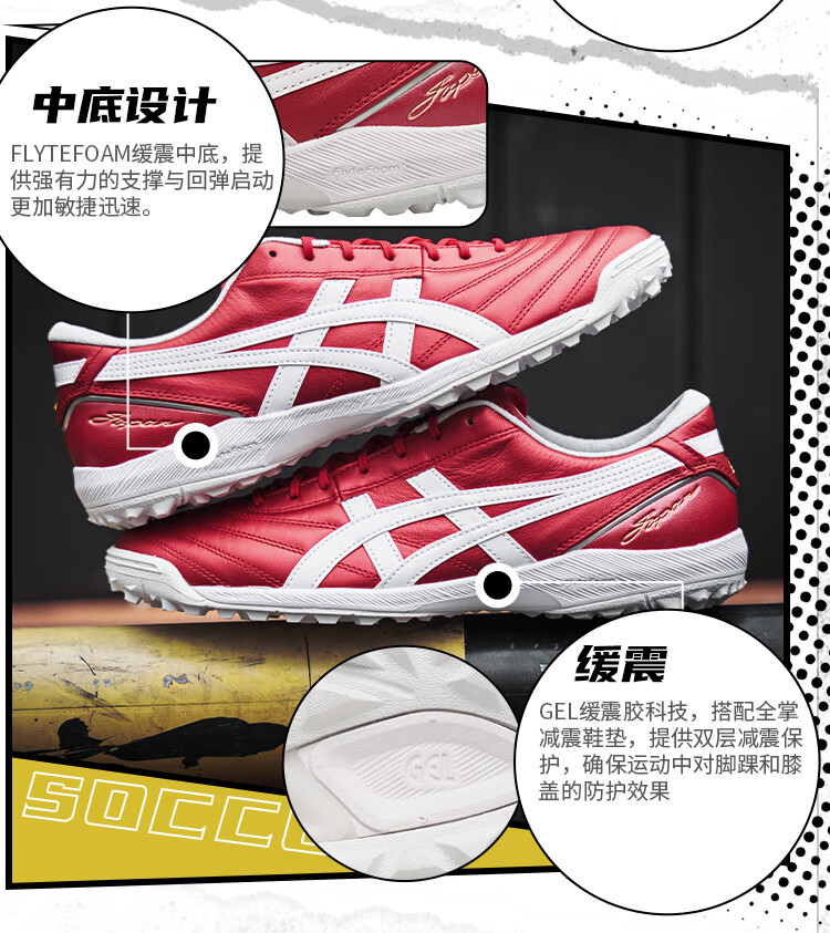 ASICS (ASICS) Tianlang Football C3 Full Kangaroo Leather FF GEL Cushioning TF Broken Spike Football Shoes for Adult Men 1113A Red #1113A056-600 New Upgrade JP255 40.5