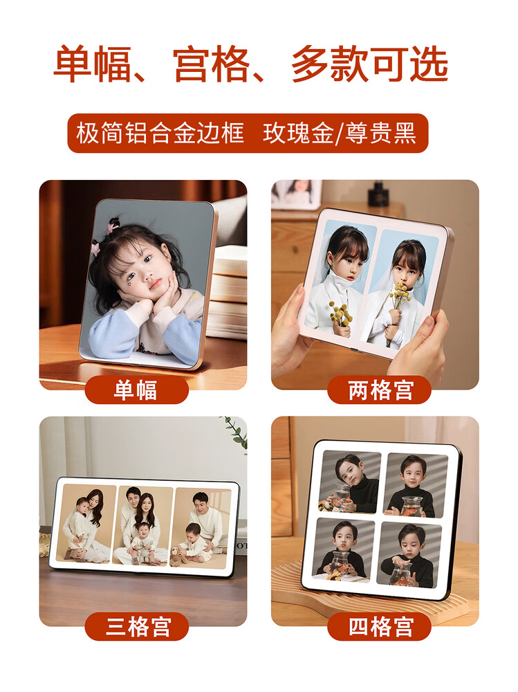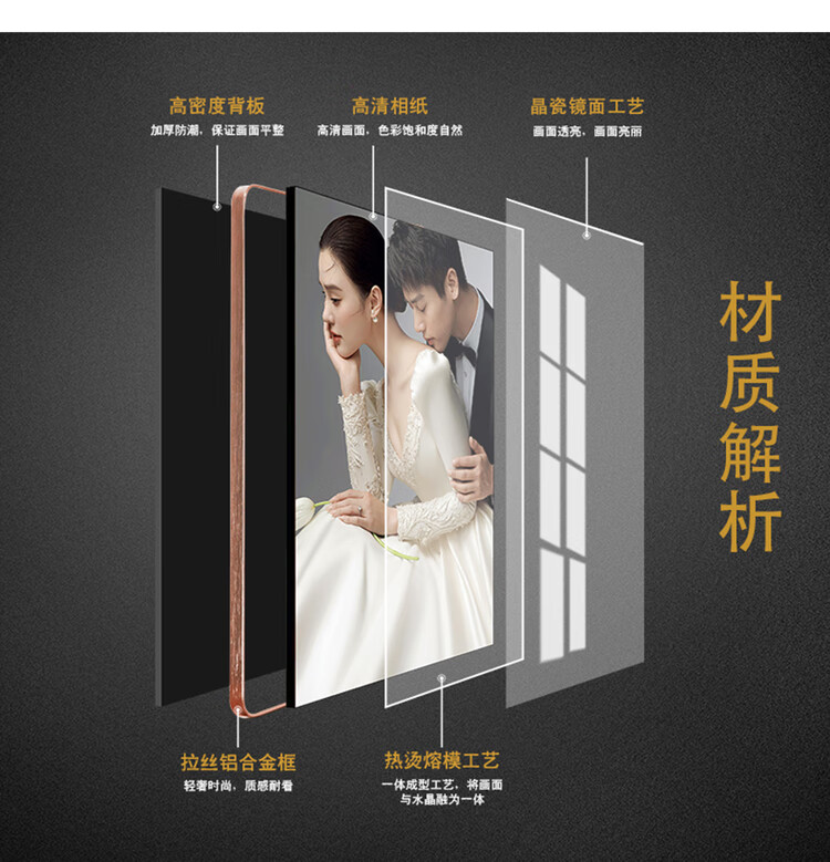 Yusenyi photo frame, stage setting, customized photo printing, made into crystal wedding photos, family photos, baby printing, rose gold rounded corners, 7 inches 13x18cm, suitable for both vertical and horizontal use