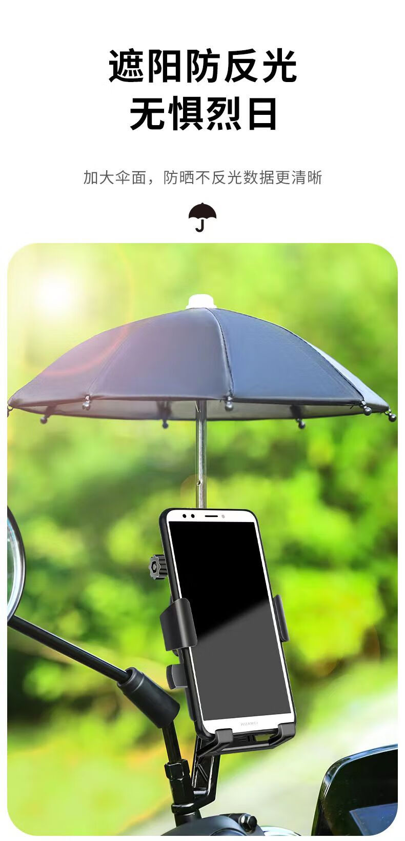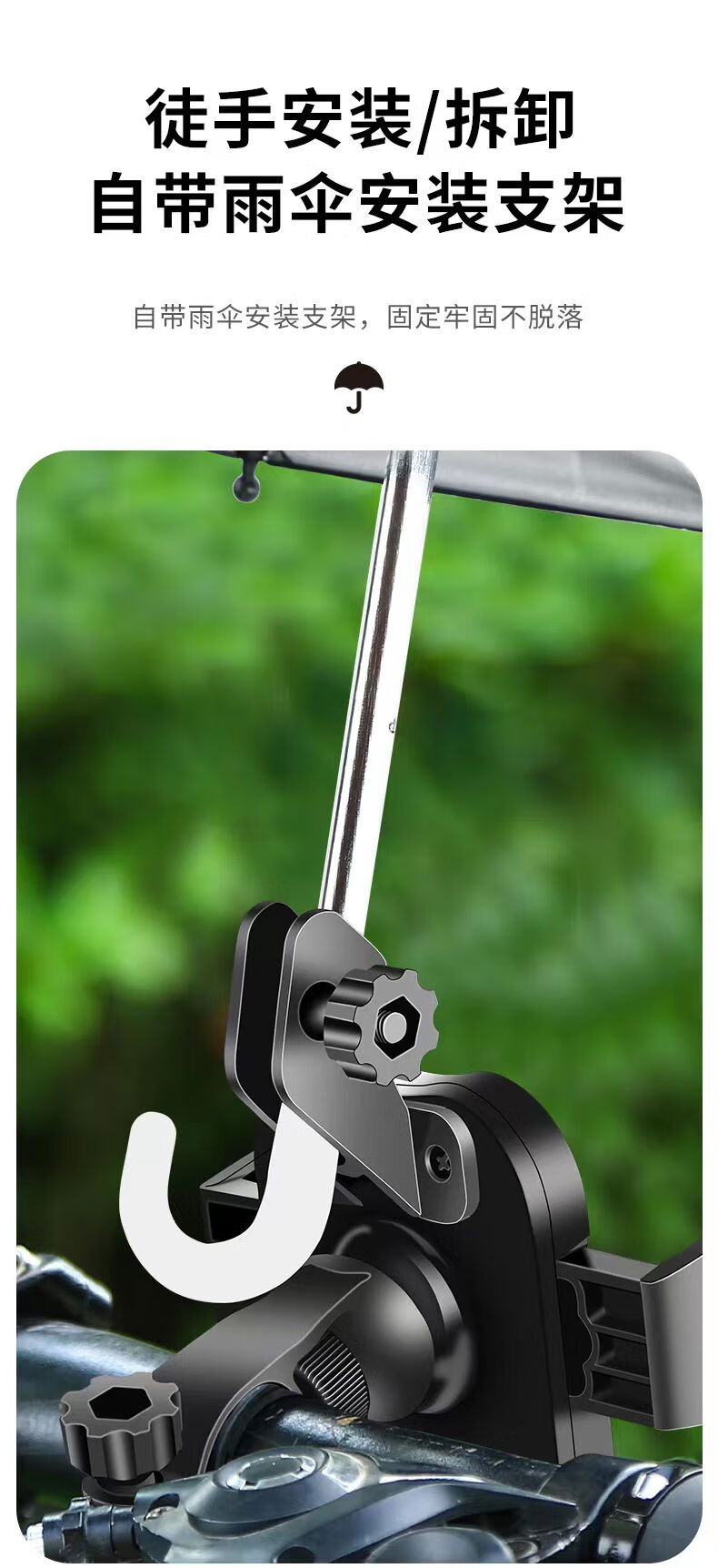 Yusenyi Takeaway Electric Vehicle Mobile Phone Navigation Bracket with Small Umbrella Bicycle Carrier Fixed Rainproof Motorcycle Handlebar Type Eight-claw Locking Physical Shockproof