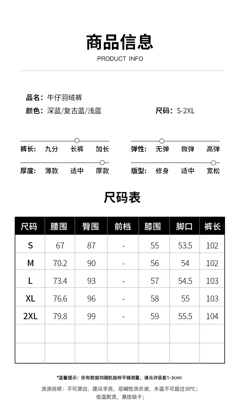 Outseam (cm) 99 cm 101.5 cm 104 cm 106.5 cm 109 cm