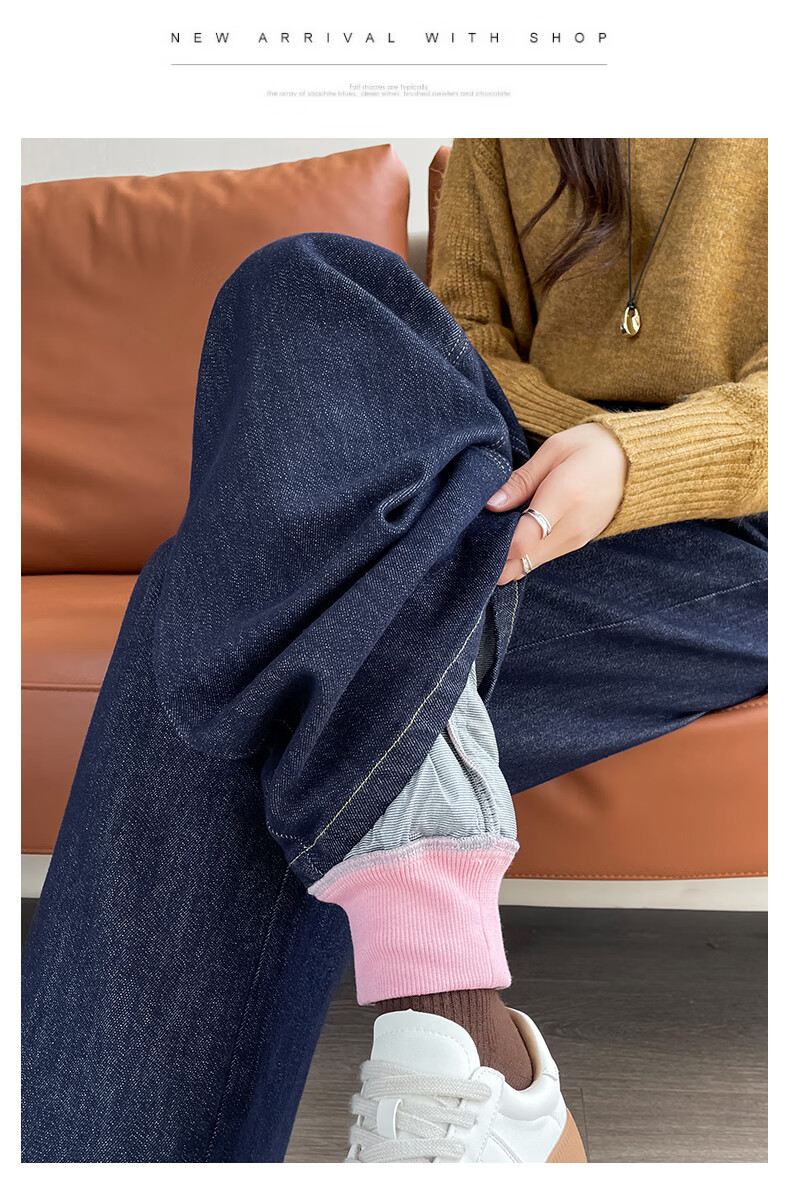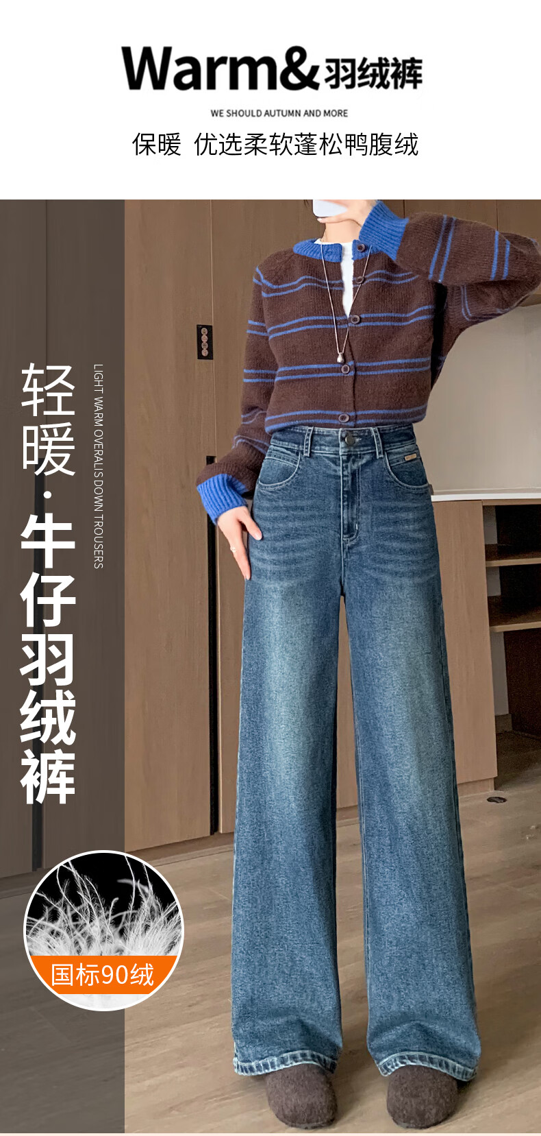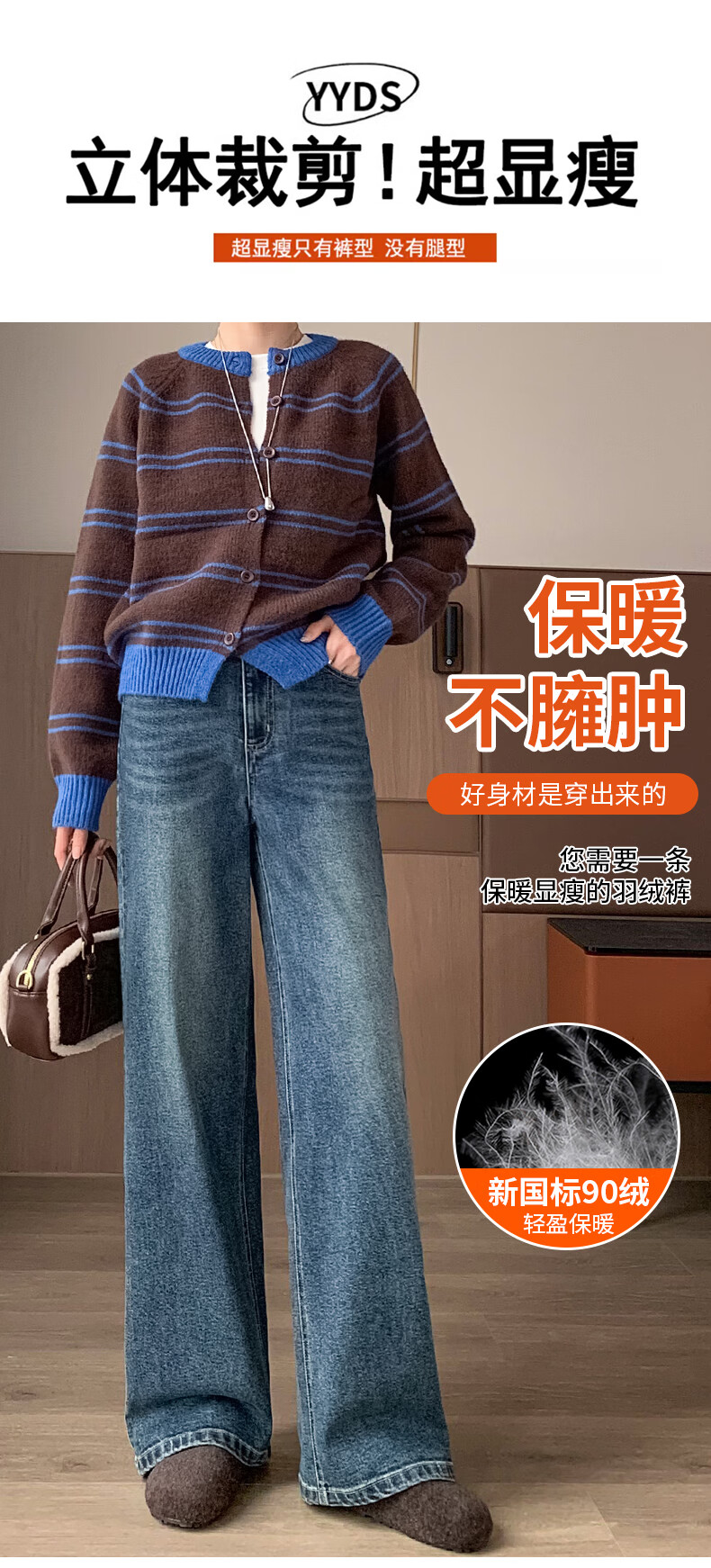 KOVLLIAEN pantalones acolchados de mezclilla de pierna ancha para mujer 2025 invierno nuevo Noreste a prueba de frío menos 40 grados pantalones cálidos pantalones de algodón retro azul pantalones acolchados XL