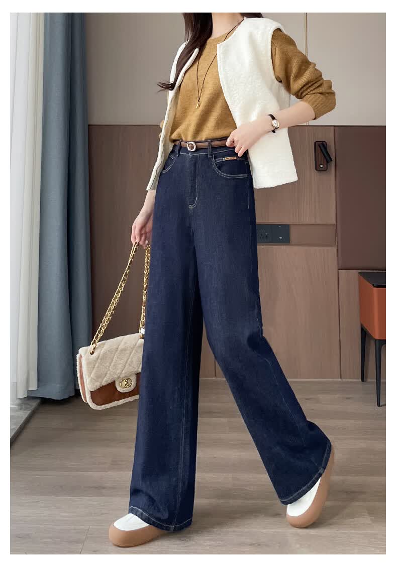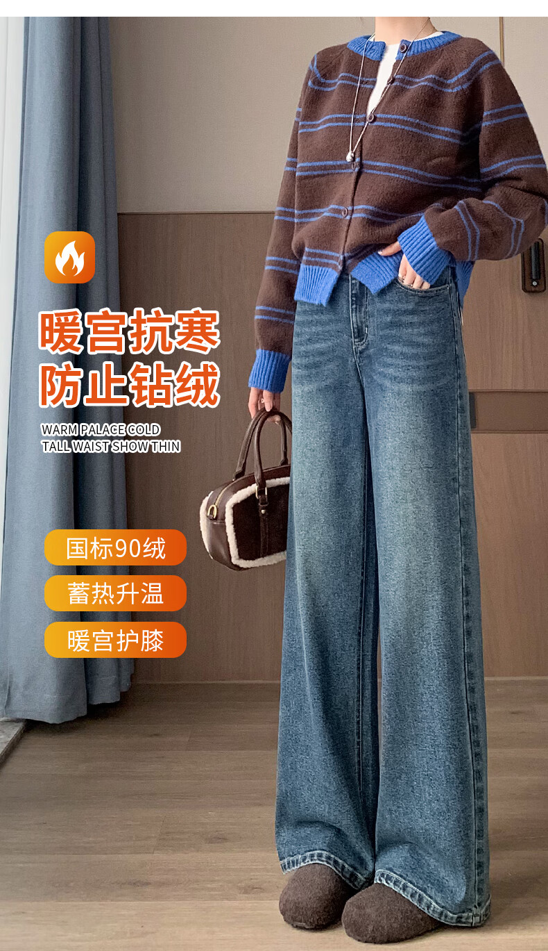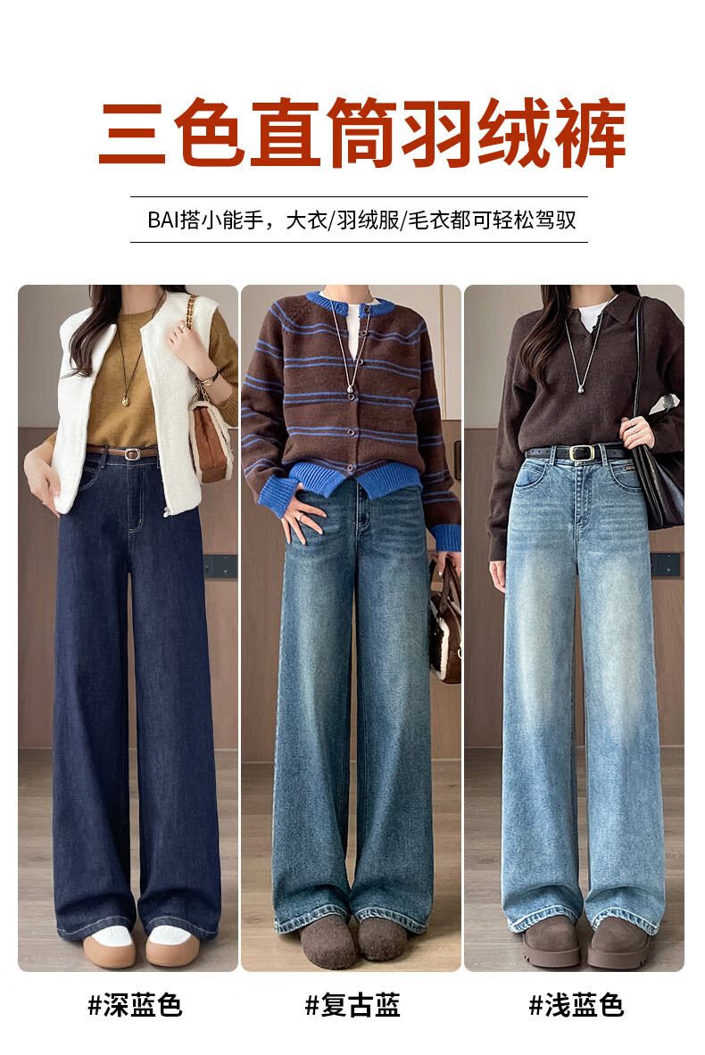 KOVLLIAEN pantalones acolchados de mezclilla de pierna ancha para mujer 2025 invierno nuevo Noreste a prueba de frío menos 40 grados pantalones cálidos pantalones de algodón retro azul pantalones acolchados XL