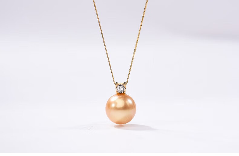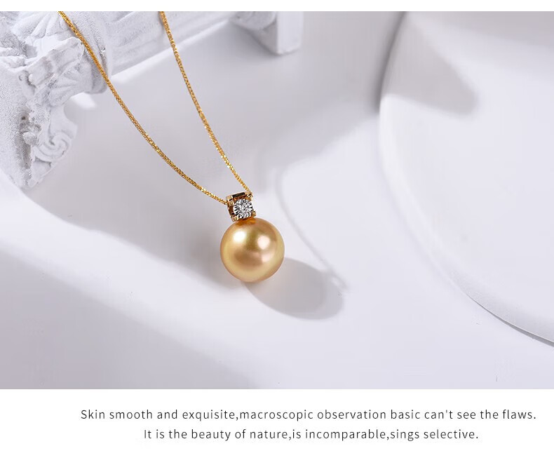 Queshe 13-14mm seawater pearl large particle pendant gold round cubic chromium oxide gold 13-14mm -14mm