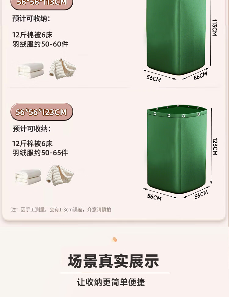 SMVP Thickened Square Round Canvas Bag Storage Bag Home Packing Moving Bag Duffel Bag Express Transfer Bag Large Capacity 2 Pack - Pure Canvas (0.6mm) More Affordable 56*56*123cm