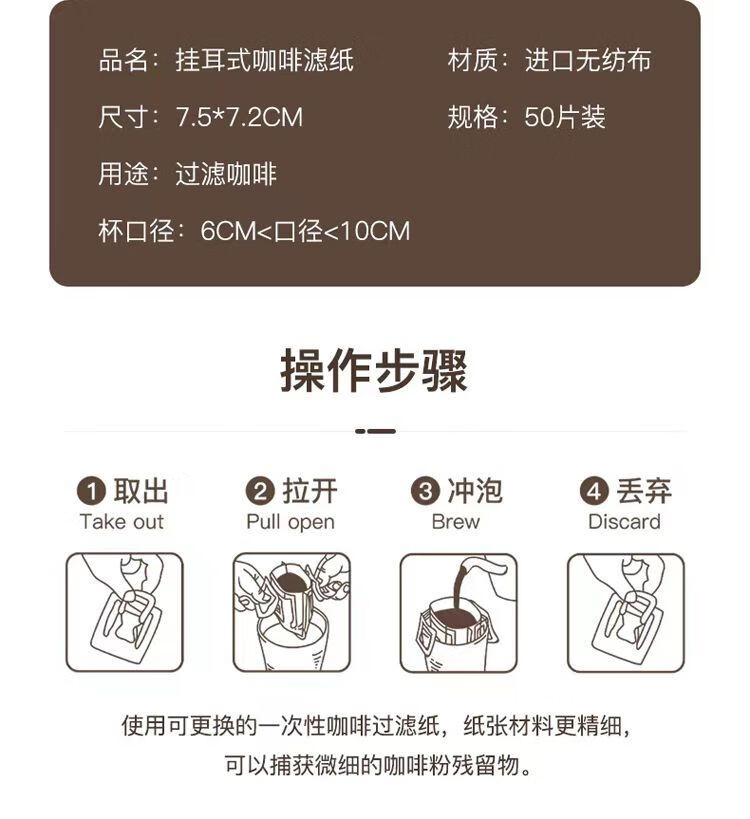 Hanging ear coffee filter bag 50 pieces hanging ear filter paper easy extraction no residue hand brew drip coffee bag CG thick material 10 pieces