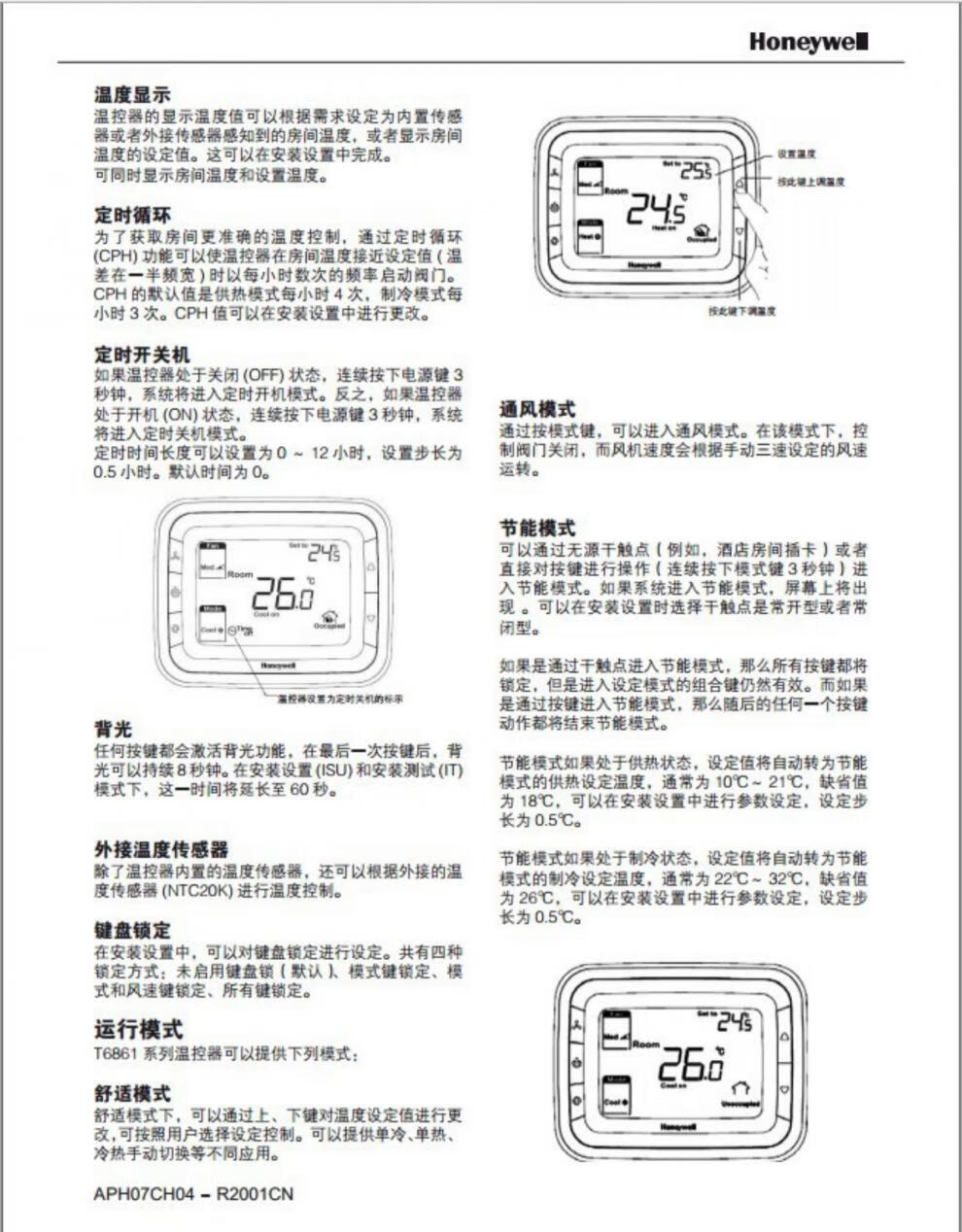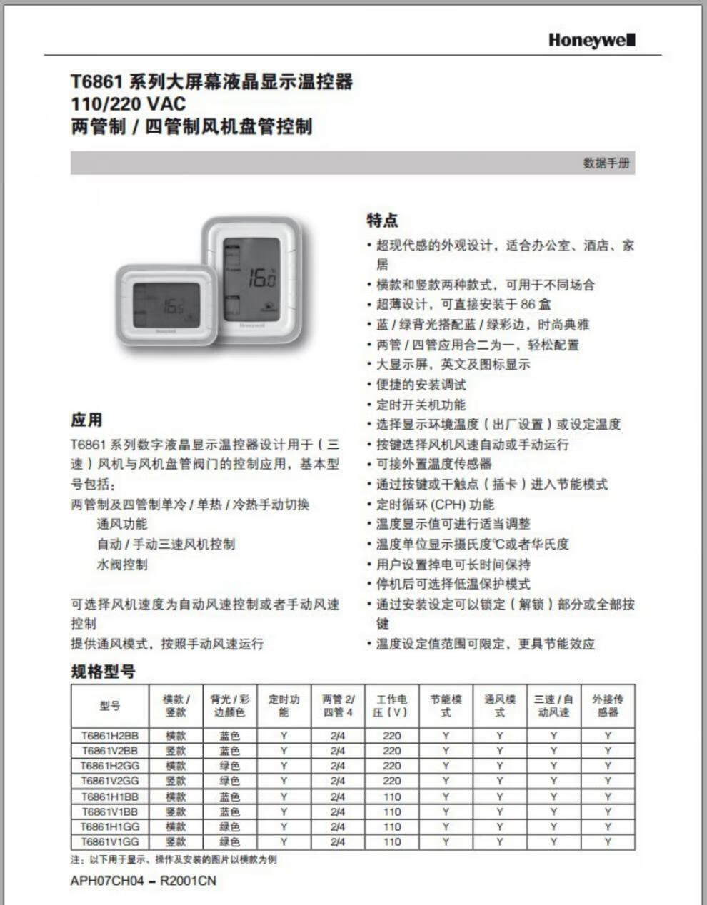 HoneywellHoneywell vertical style T6861V2WB central air conditioning thermostat LCD screen controller panel blue_vertical style T6861V2WB