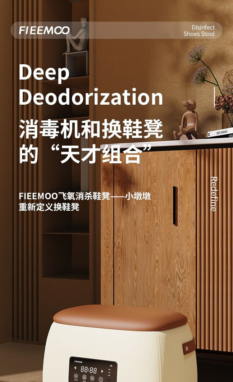 FIEEMOO Multifunctional Smart Shoe Disinfection, Sterilization, Deodorization, Shoe Dryer, Wet and Dry Shoe Changing Bench, Ozone Fungi Killer, Gentleman Gray (Applicable within size 41)