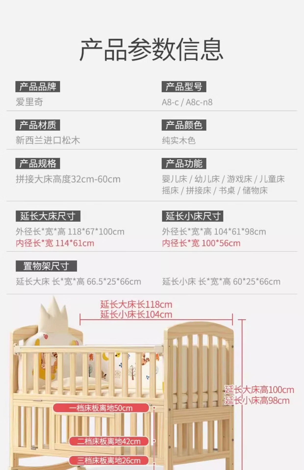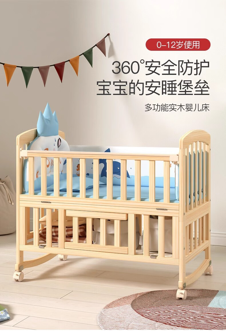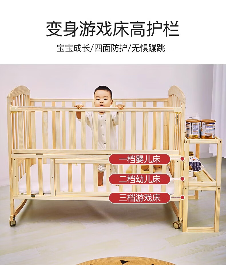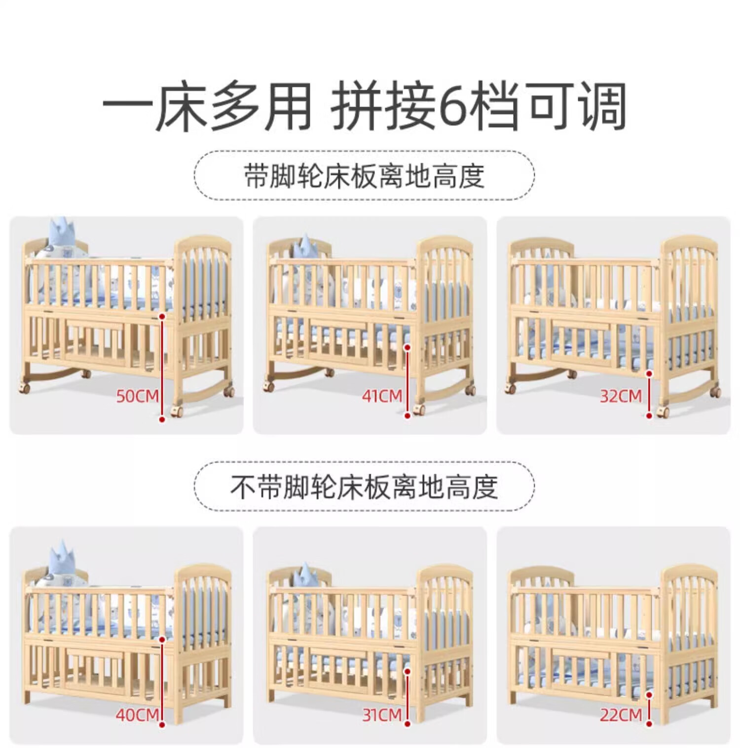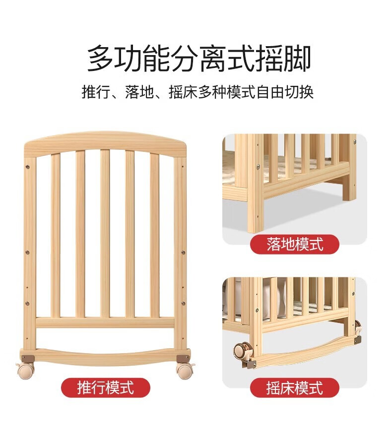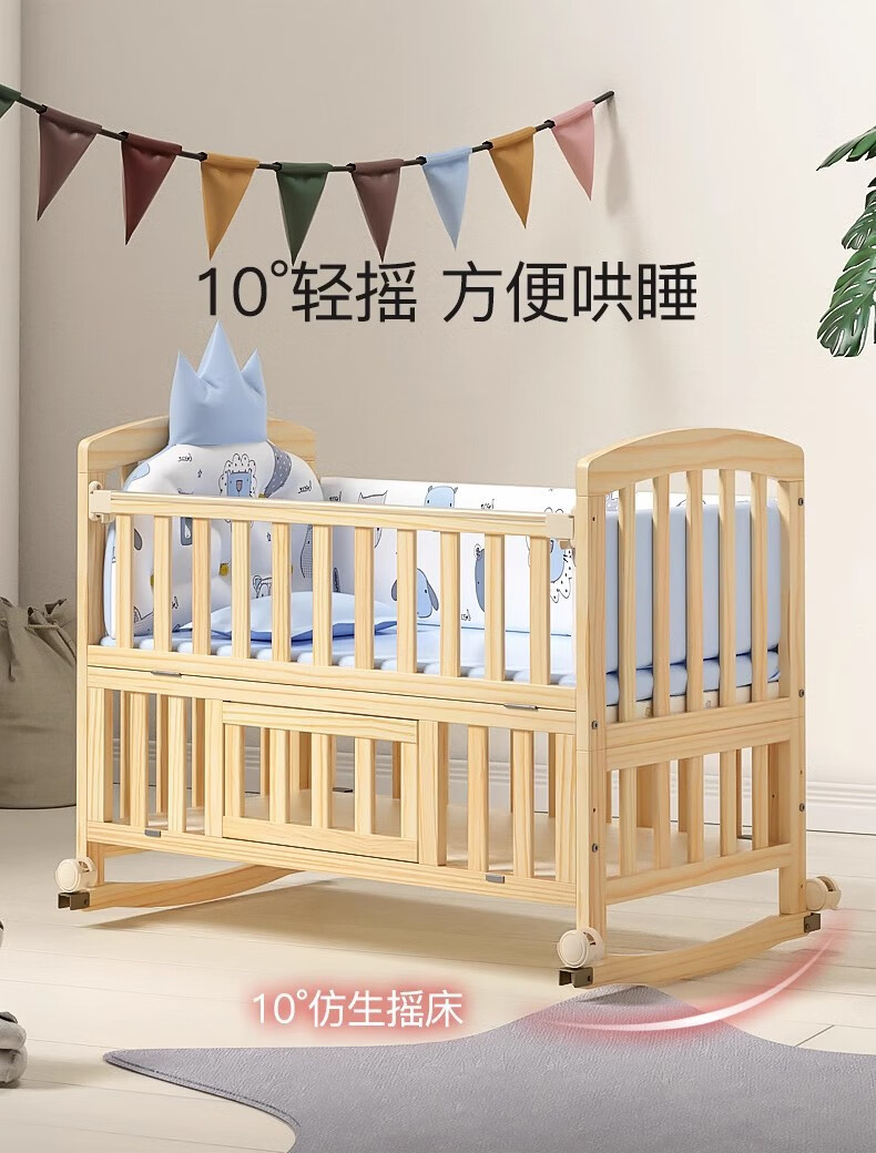 Stroller Hope crib multi-functional baby bed solid wood paint-free rocker newborn removable children's bed + five-piece set inner diameter 114*61cm
