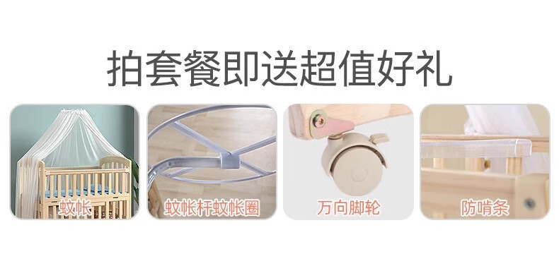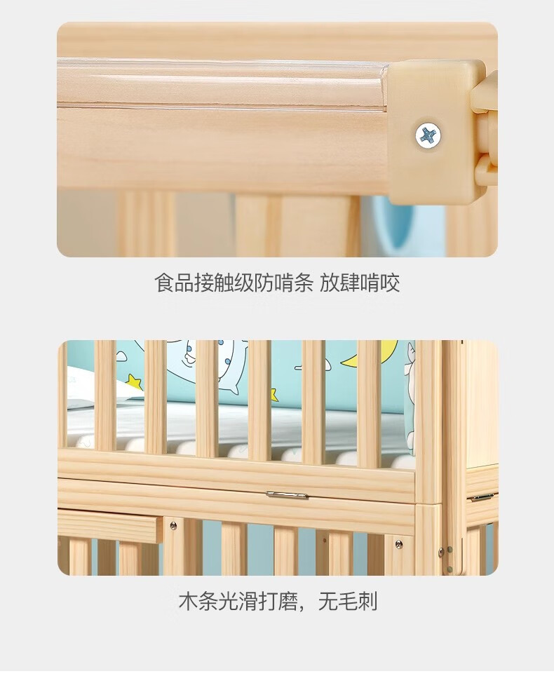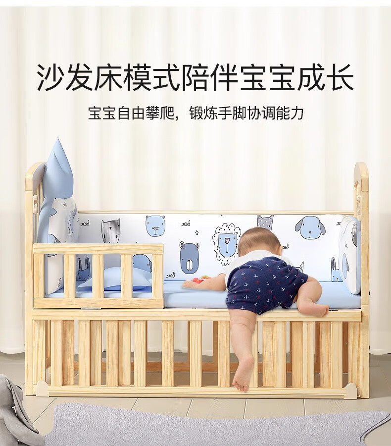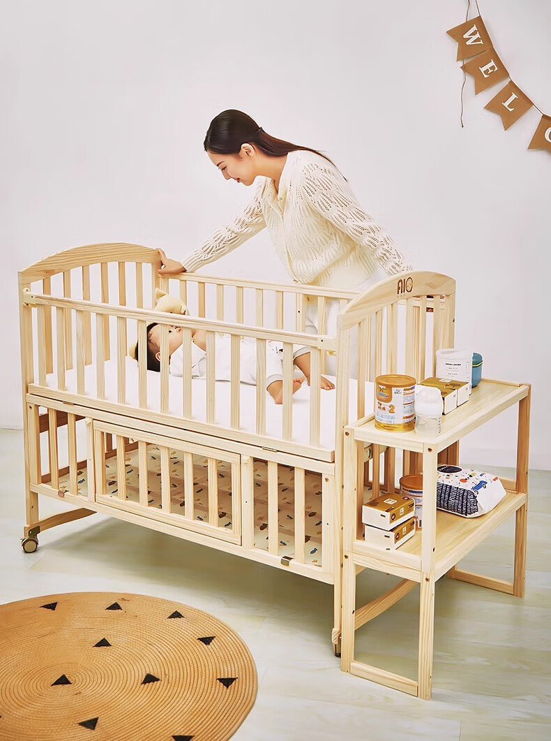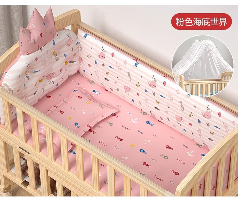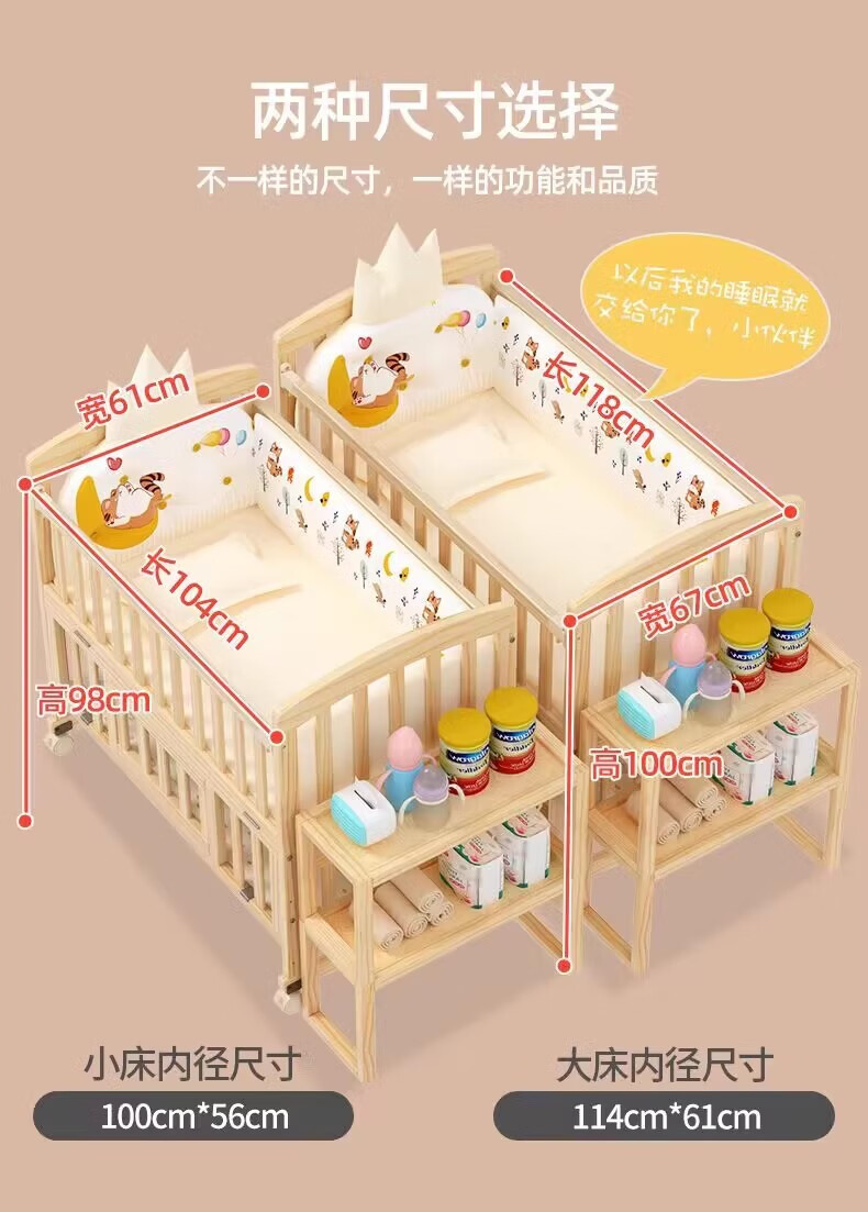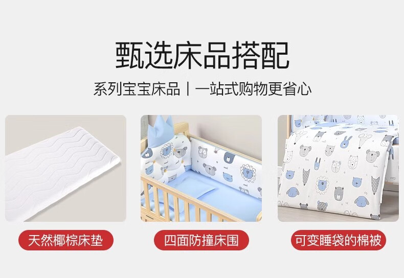 Stroller Hope crib multi-functional baby bed solid wood paint-free rocker newborn removable children's bed + five-piece set inner diameter 114*61cm