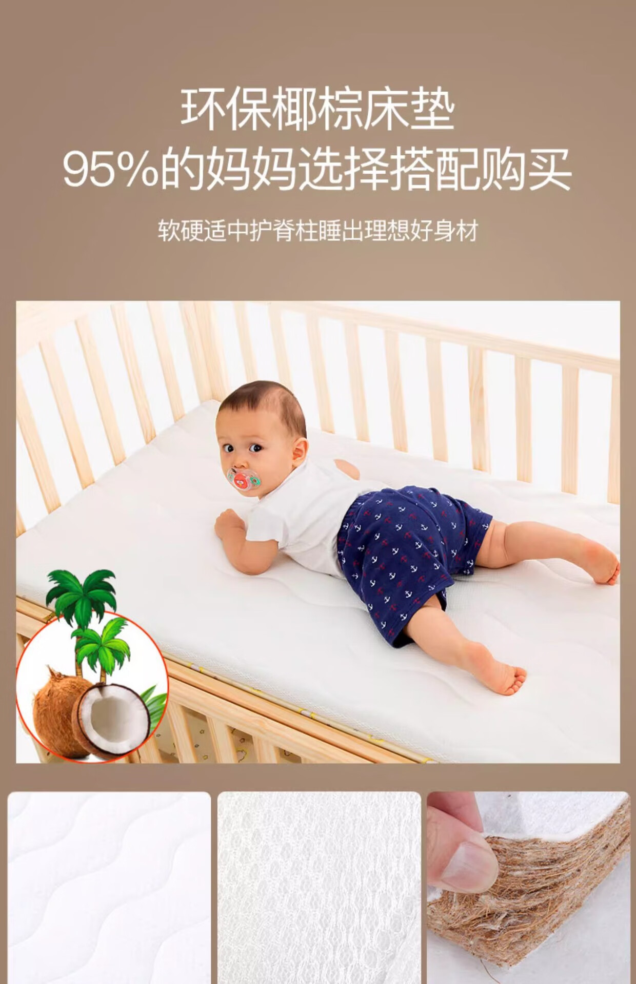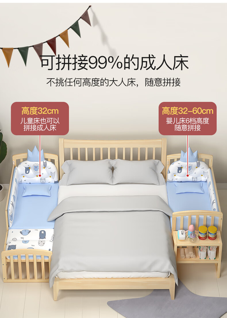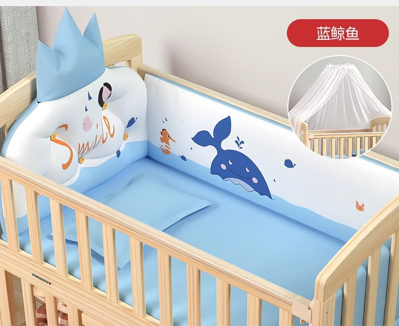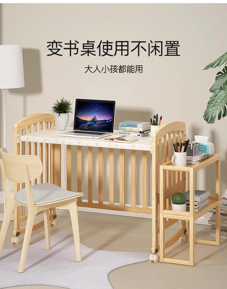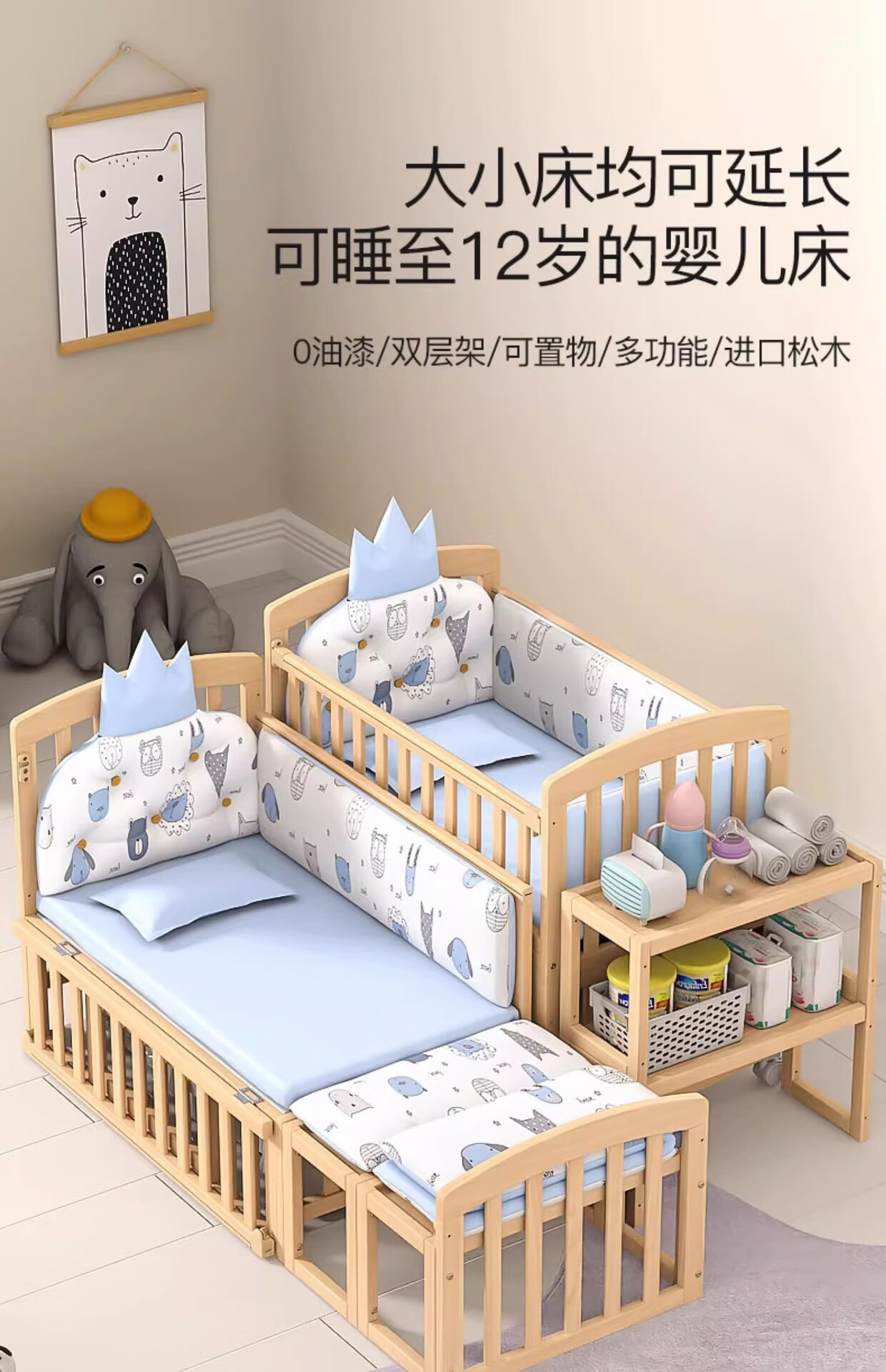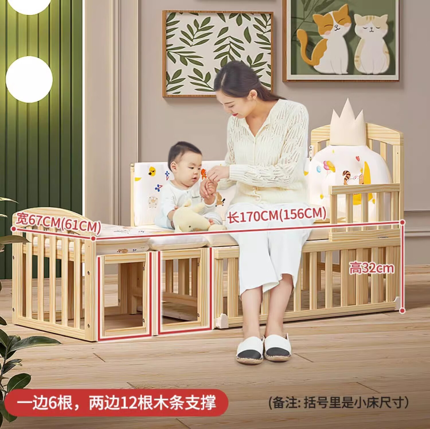 Stroller Hope crib multi-functional baby bed solid wood paint-free rocker newborn removable children's bed + five-piece set inner diameter 114*61cm