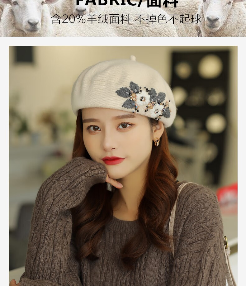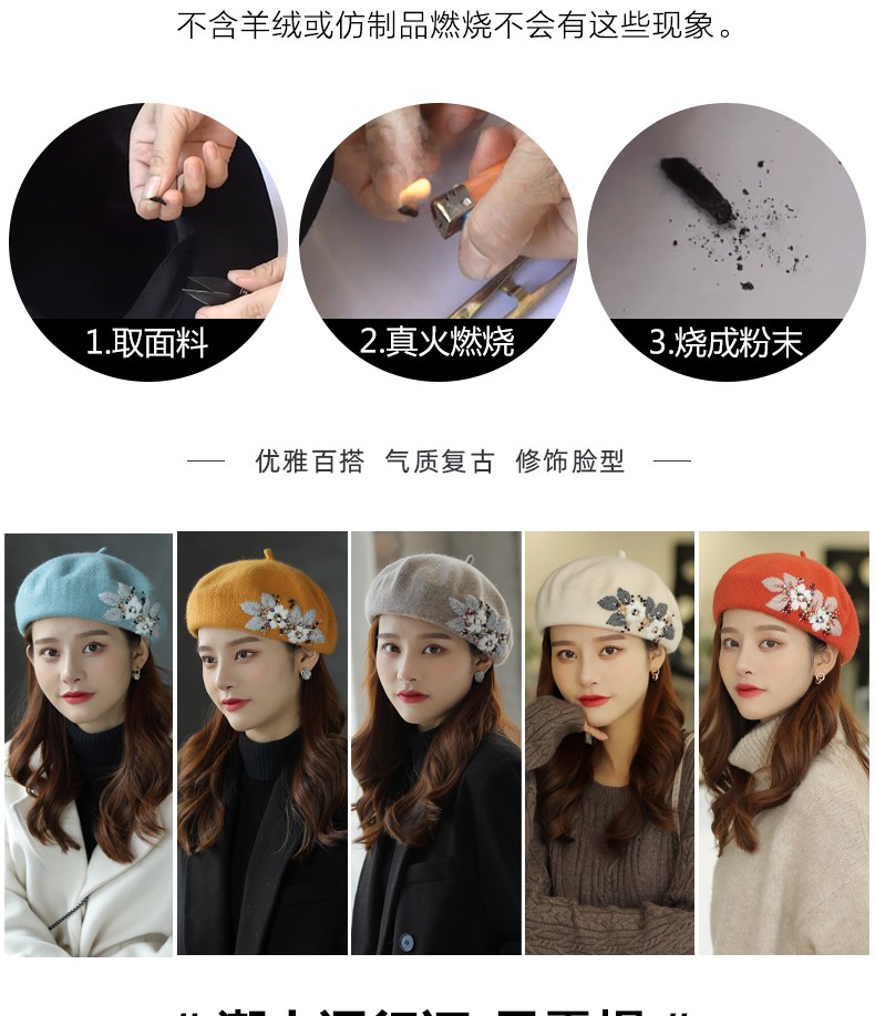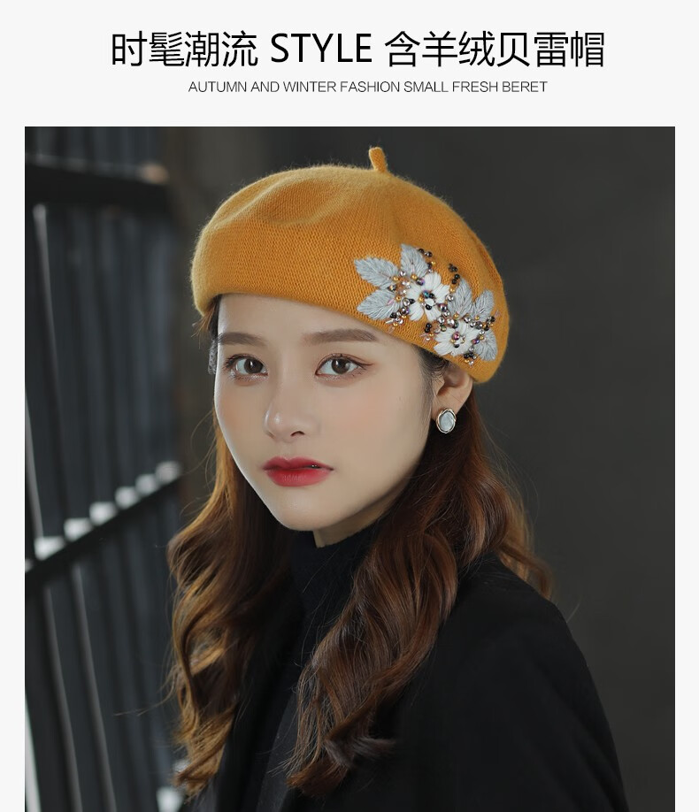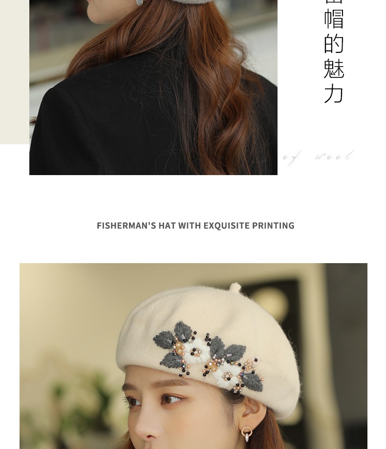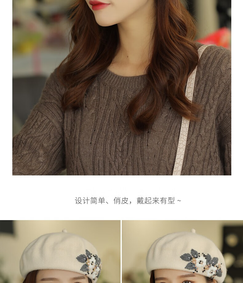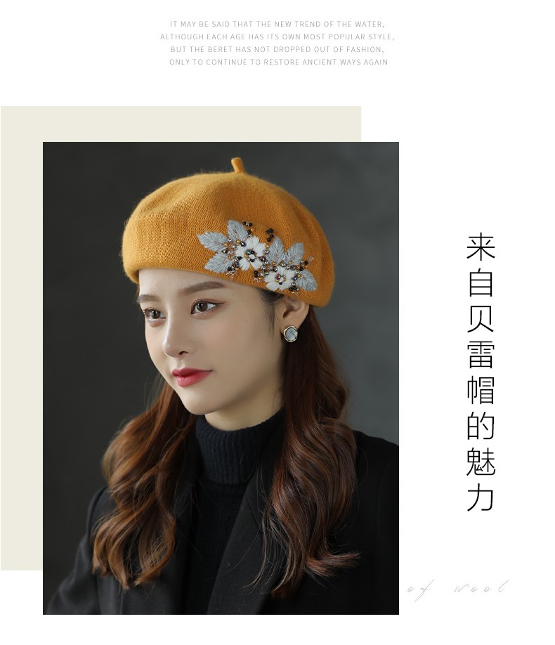 Xiangxue Yuxiu beret women's autumn and winter retro British Korean version versatile hand-embroidered wool painter hat Japanese pumpkin hat beige