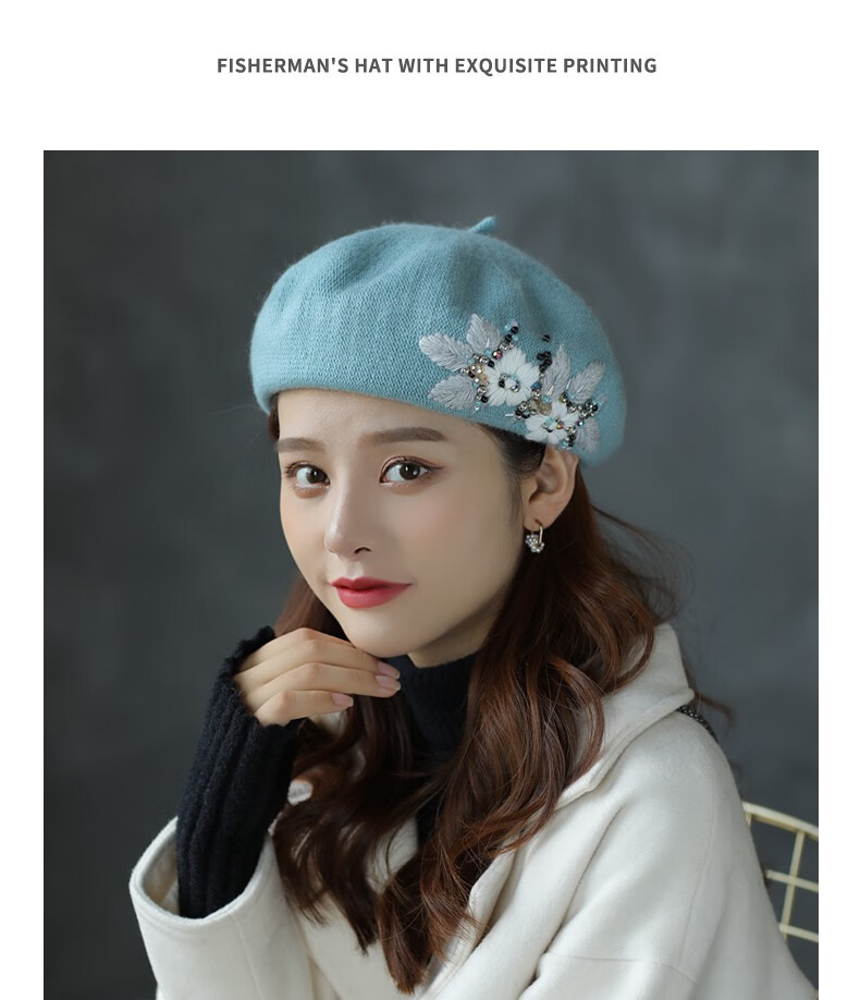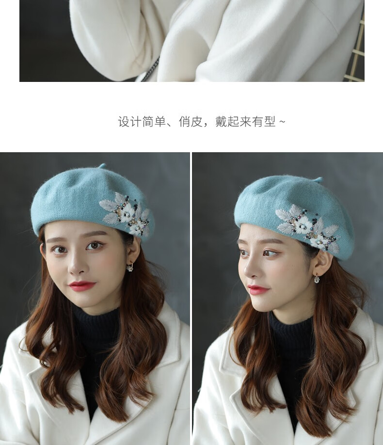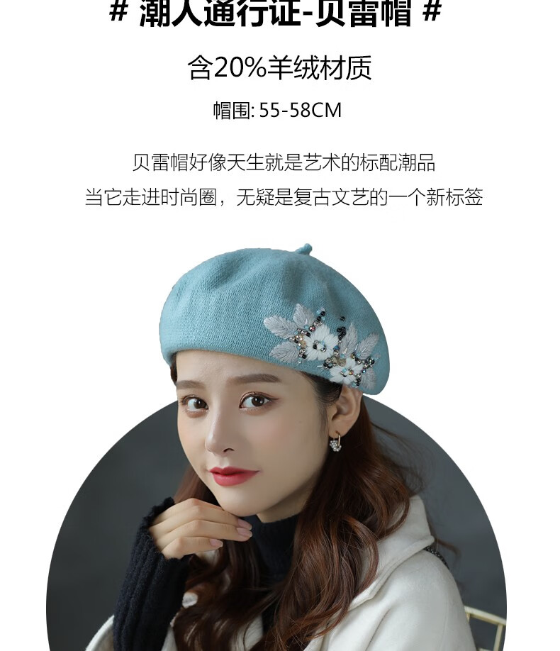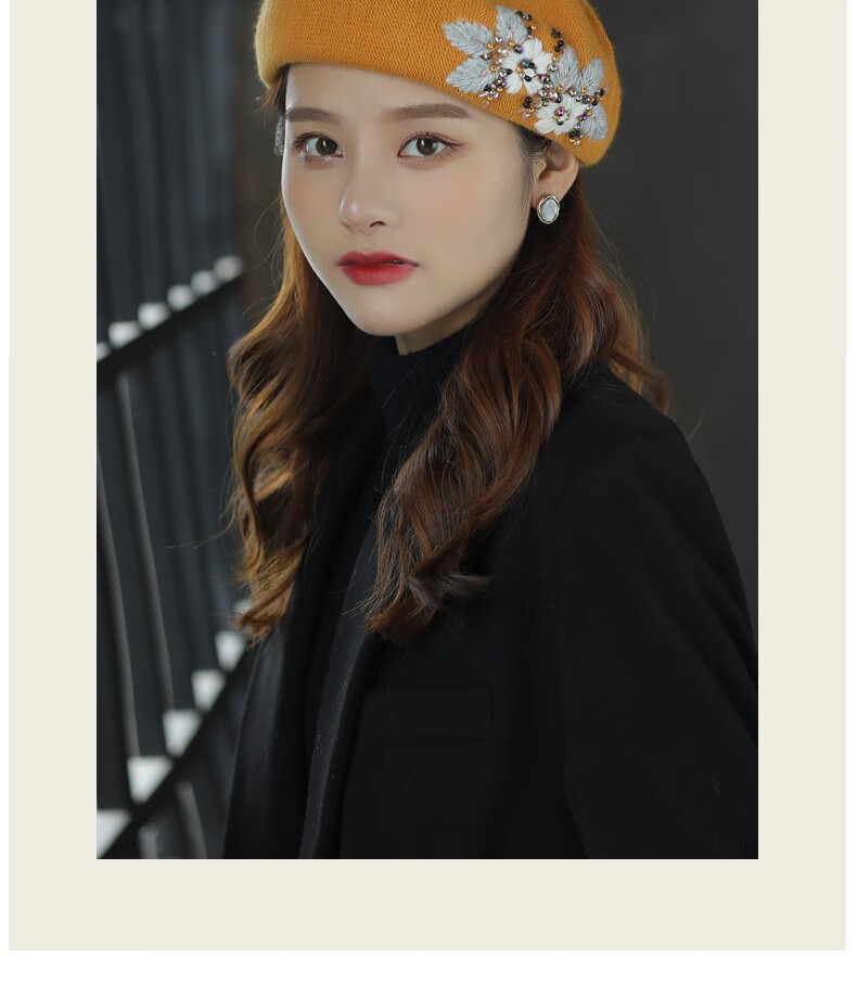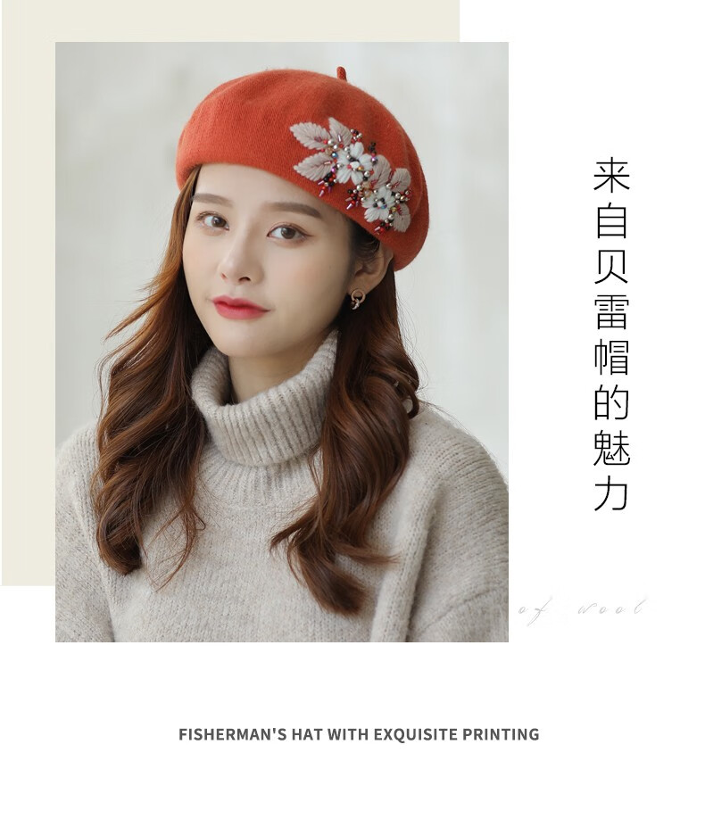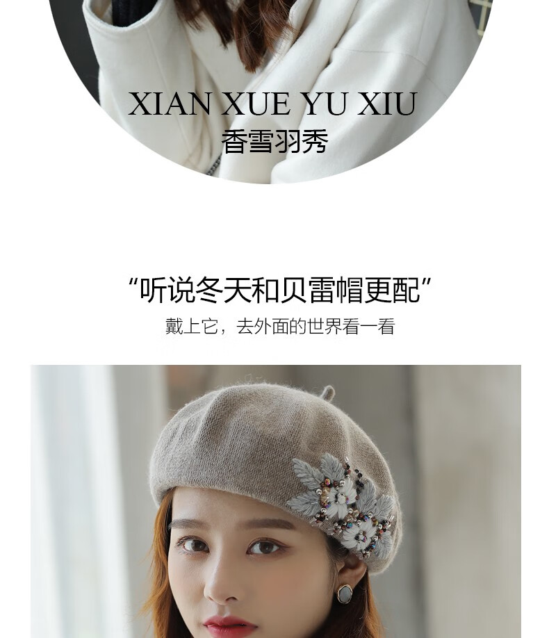 Xiangxue Yuxiu beret women's autumn and winter retro British Korean version versatile hand-embroidered wool painter hat Japanese pumpkin hat beige