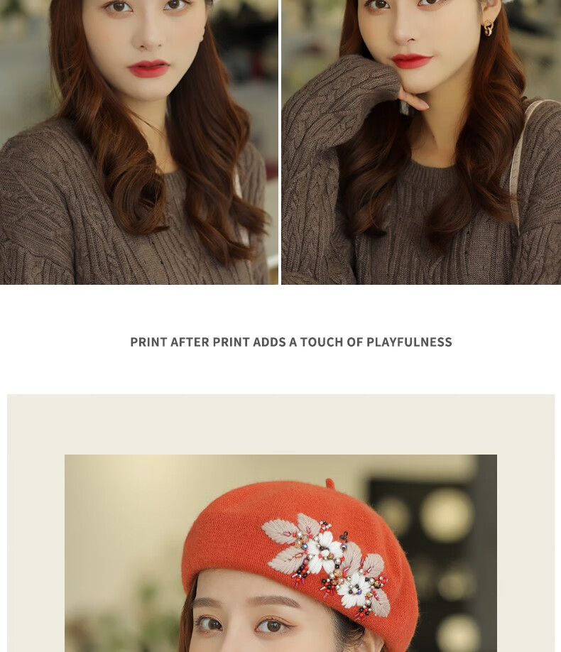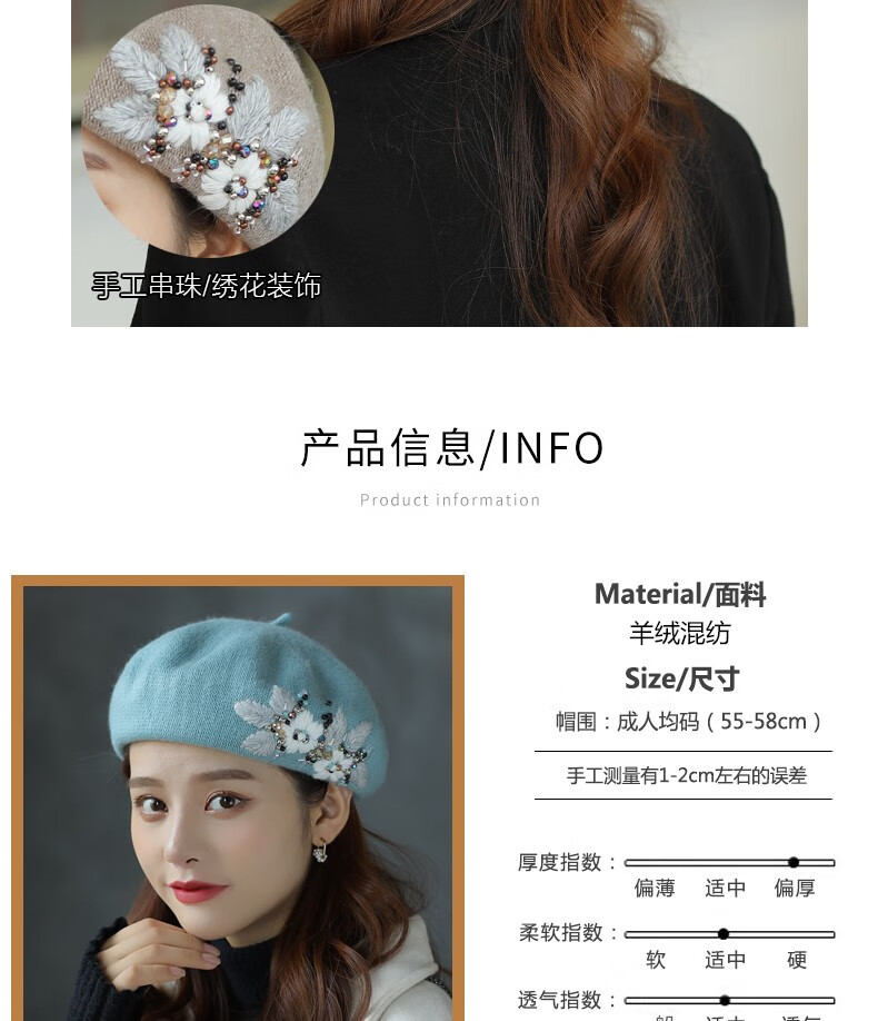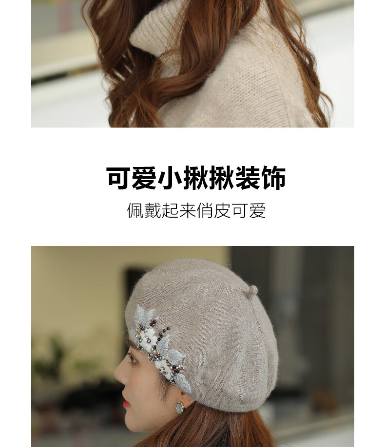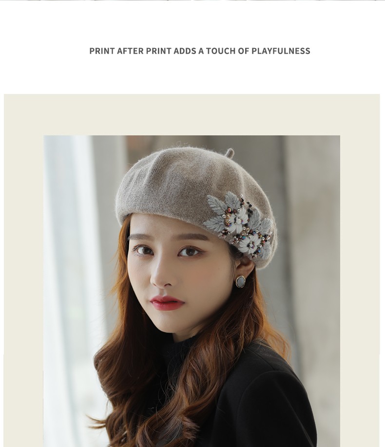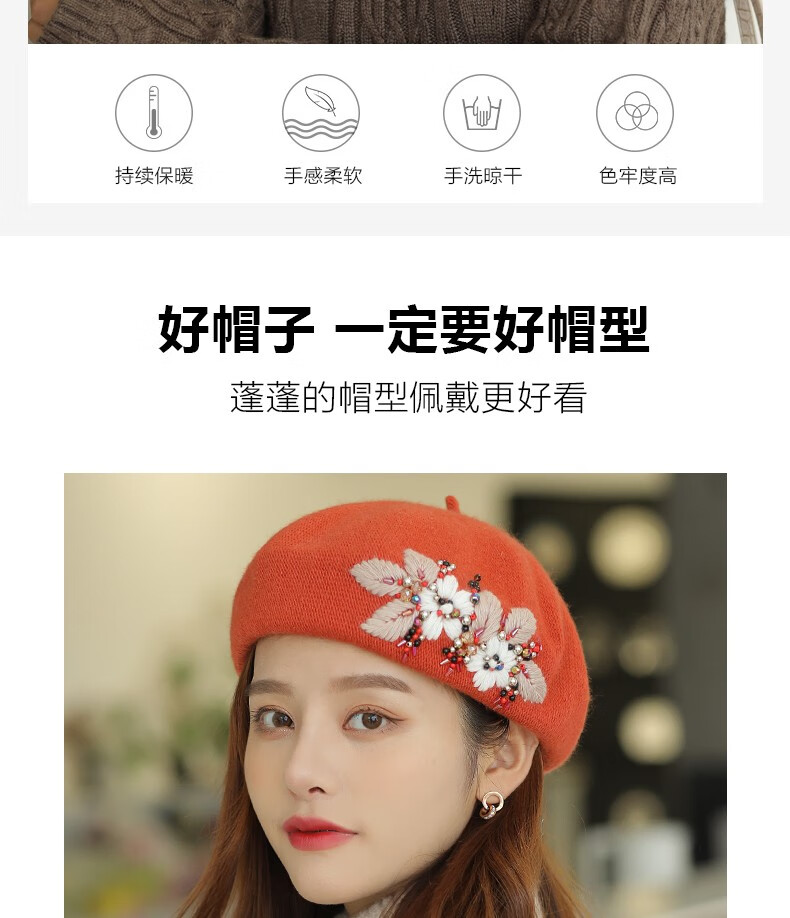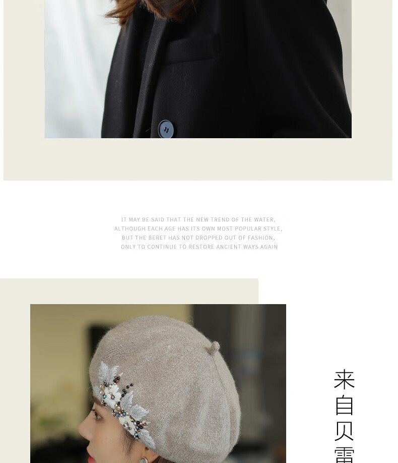 Xiangxue Yuxiu beret women's autumn and winter retro British Korean version versatile hand-embroidered wool painter hat Japanese pumpkin hat beige