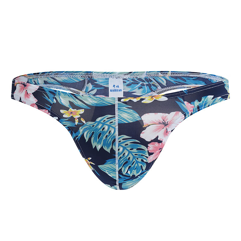 ROSELEX confidential delivery ice silk comfortable sexy thong sexy U convex bag men's t-pants fashion printed low waist black bottom leaves S