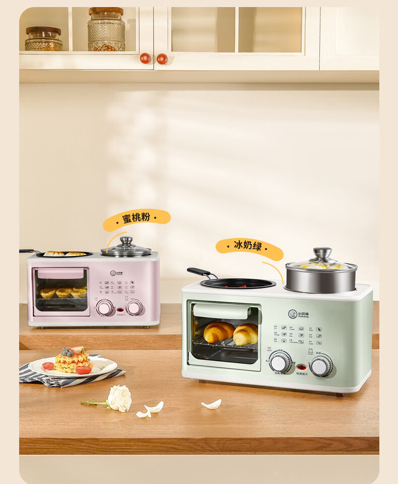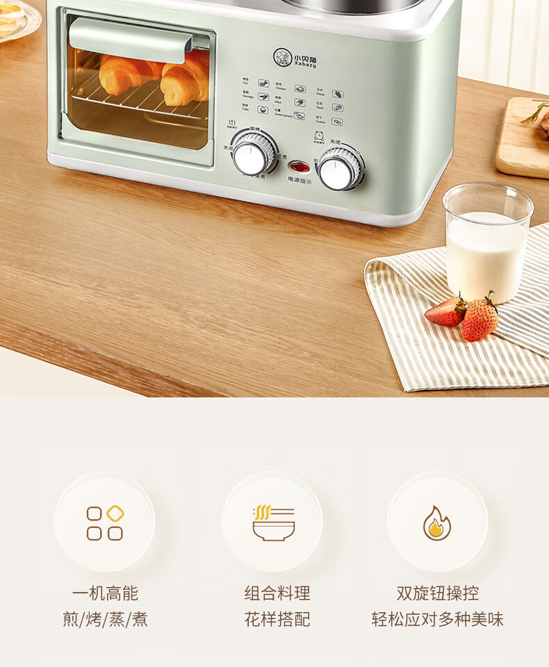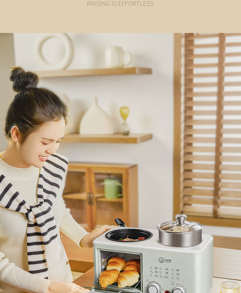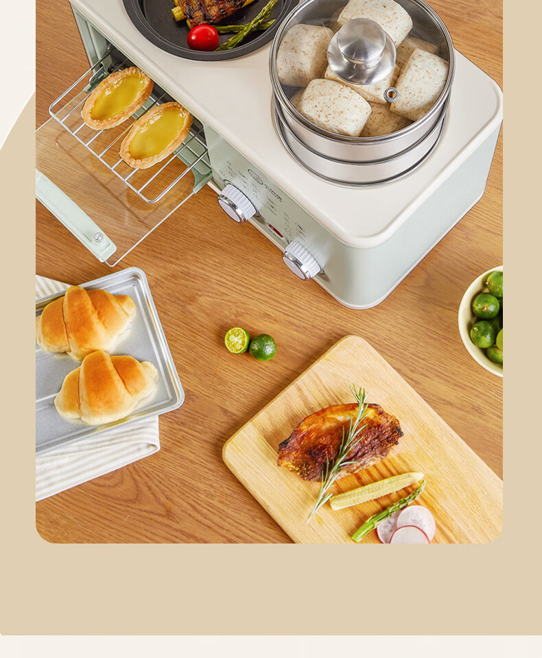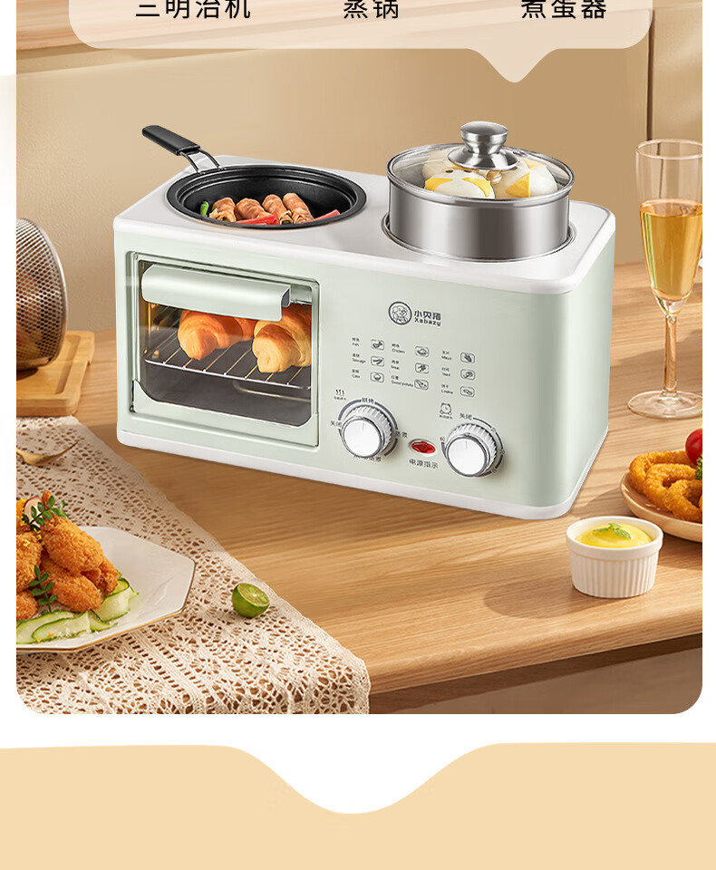 Four-in-one breakfast machine for lazy people's dormitory, coffee, steaming, roasting, and frying, one-piece pot, multi-functional household small mini oven, four-in-one black, with steamer