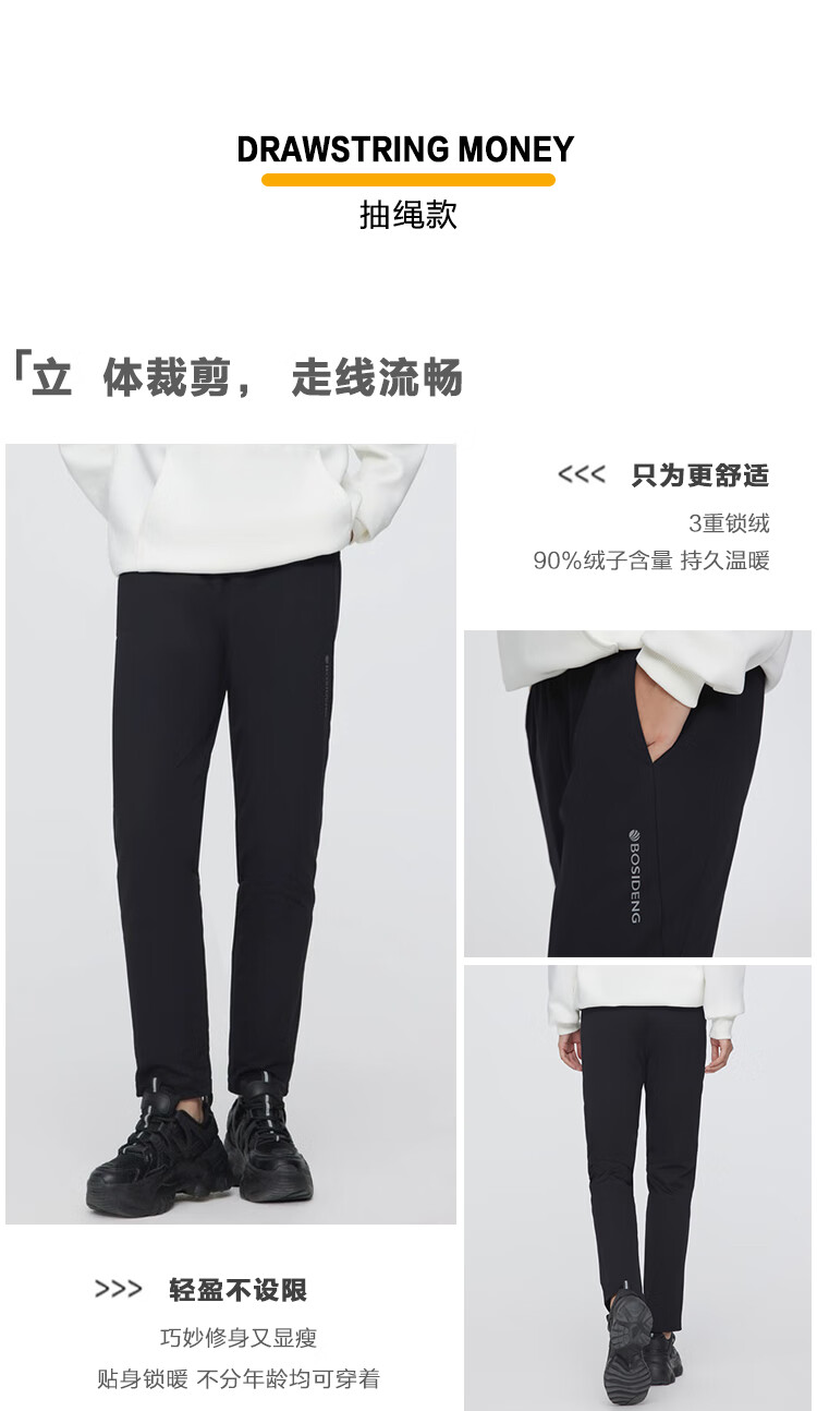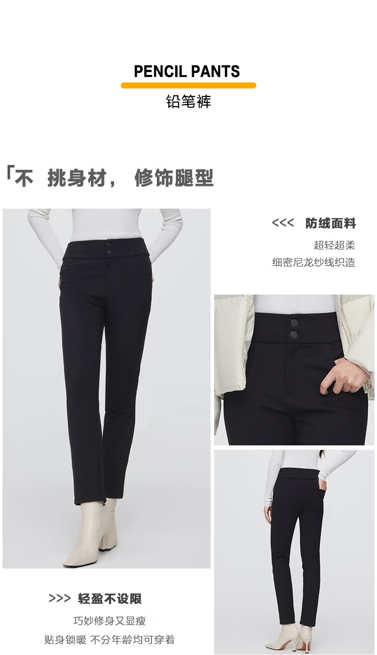 Bosideng Down Pants Women's Winter Outerwear Black Fashion Workwear Versatile Slim Women's Pants Black 8056-New Elastic Waist 5XL 195