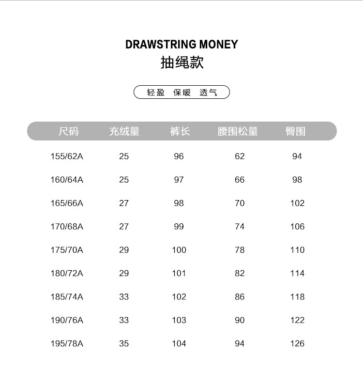 China (cm) 160-165/84-86 165-170 / 88-90 167-172 / 92-96 168-173 / 98-102 170-176 / 106-110