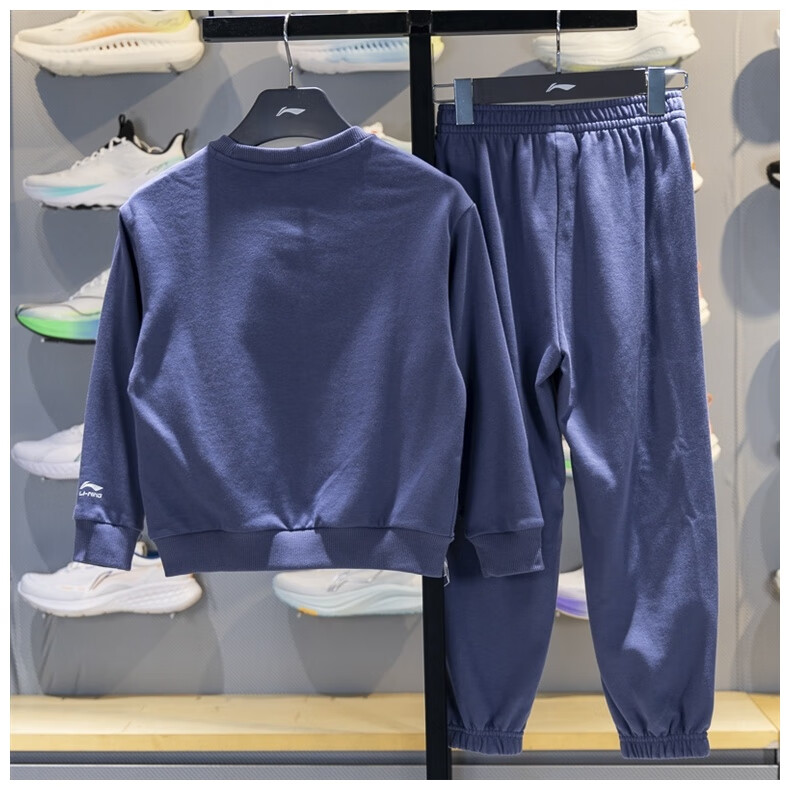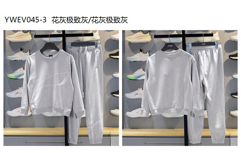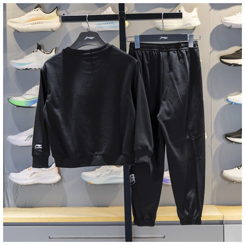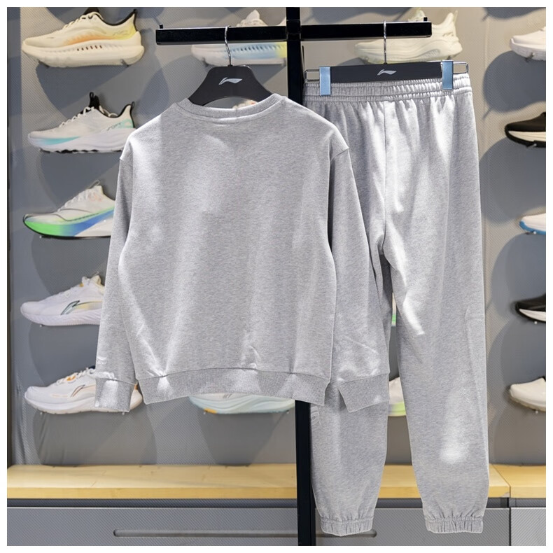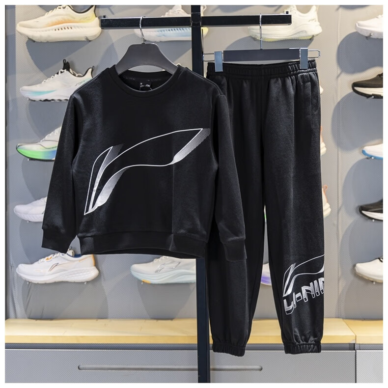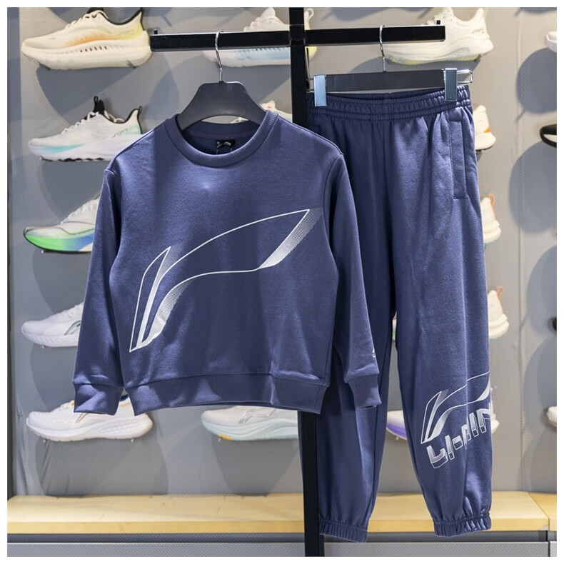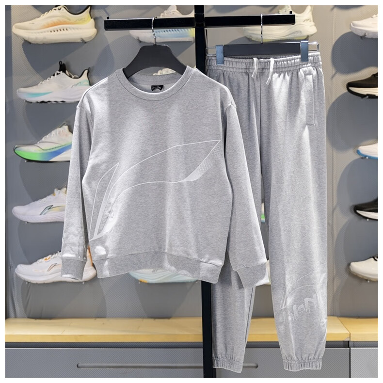 Li Ning Children's Suit 2025 Autumn Men and Women Big Children's Tie-Leg Sweater Loose Pullover Sweatshirt Suit YWEV045 Flower Gray Extreme Gray/Flower Gray Extreme Gray YWEV045-3 130