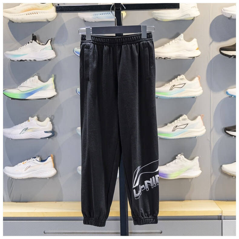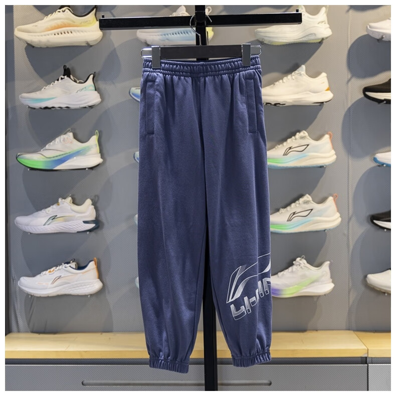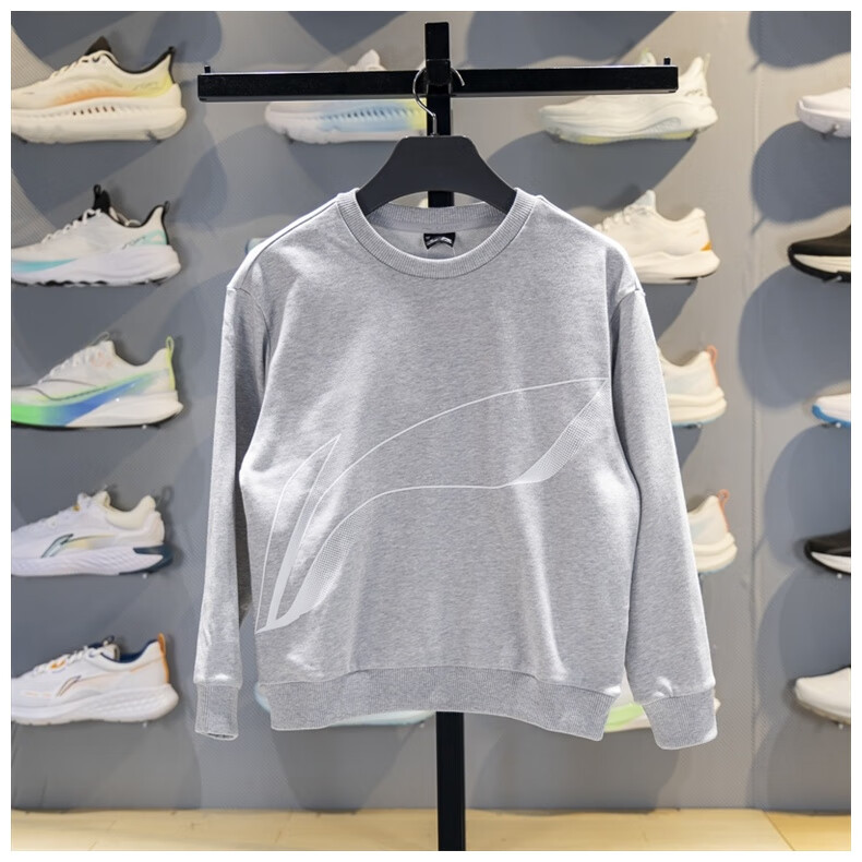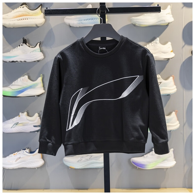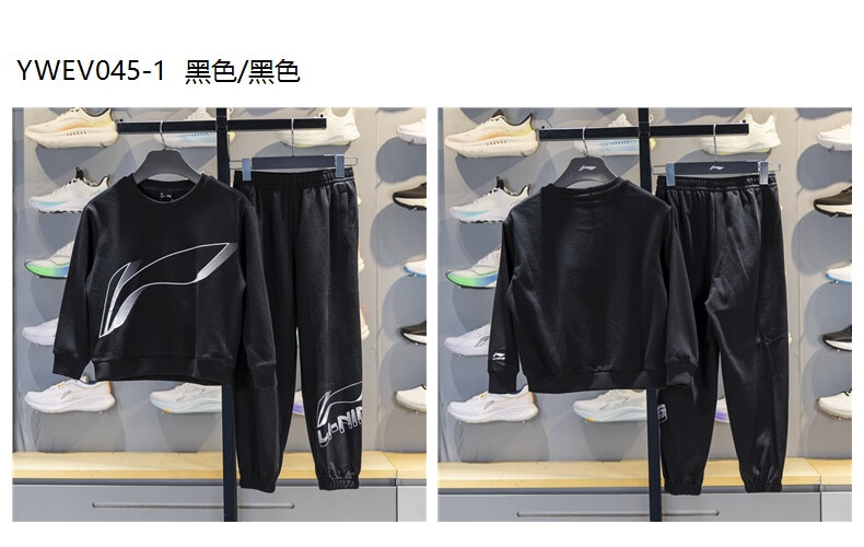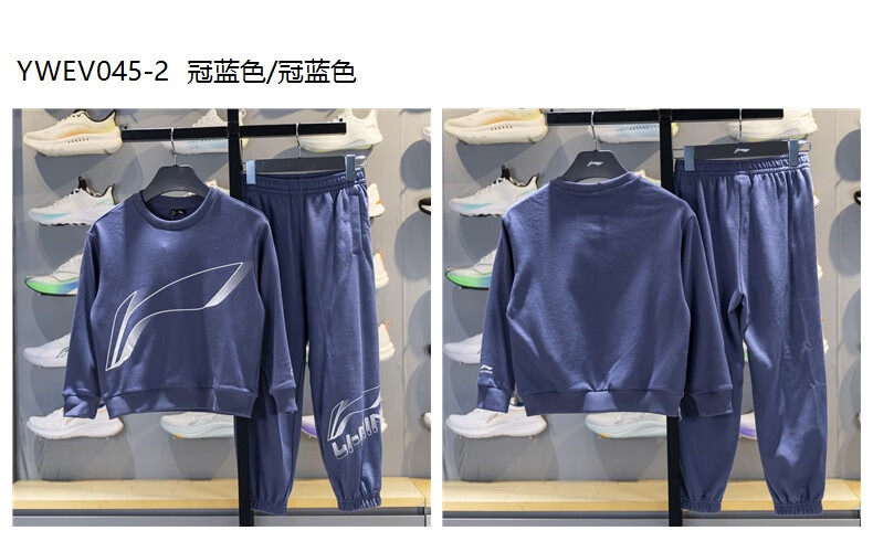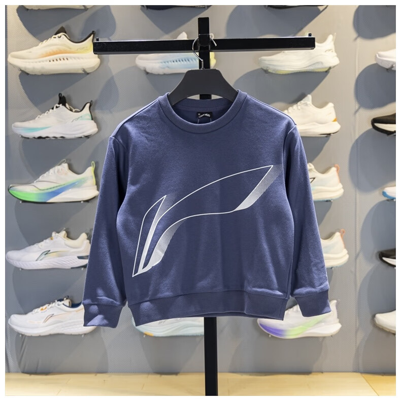 Li Ning Children's Suit 2025 Autumn Men and Women Big Children's Tie-Leg Sweater Loose Pullover Sweatshirt Suit YWEV045 Flower Gray Extreme Gray/Flower Gray Extreme Gray YWEV045-3 130