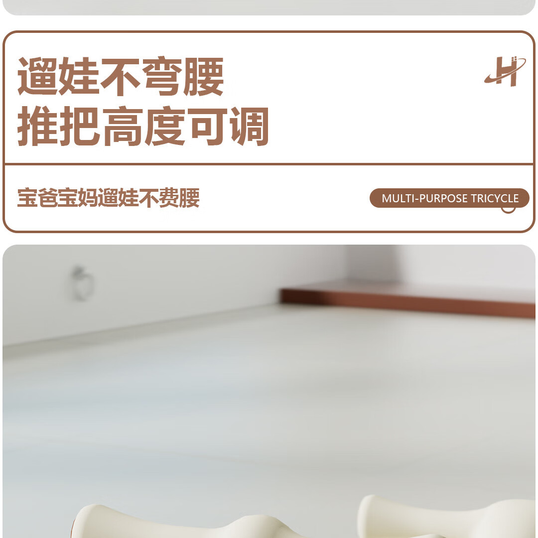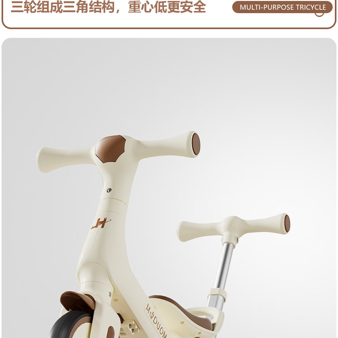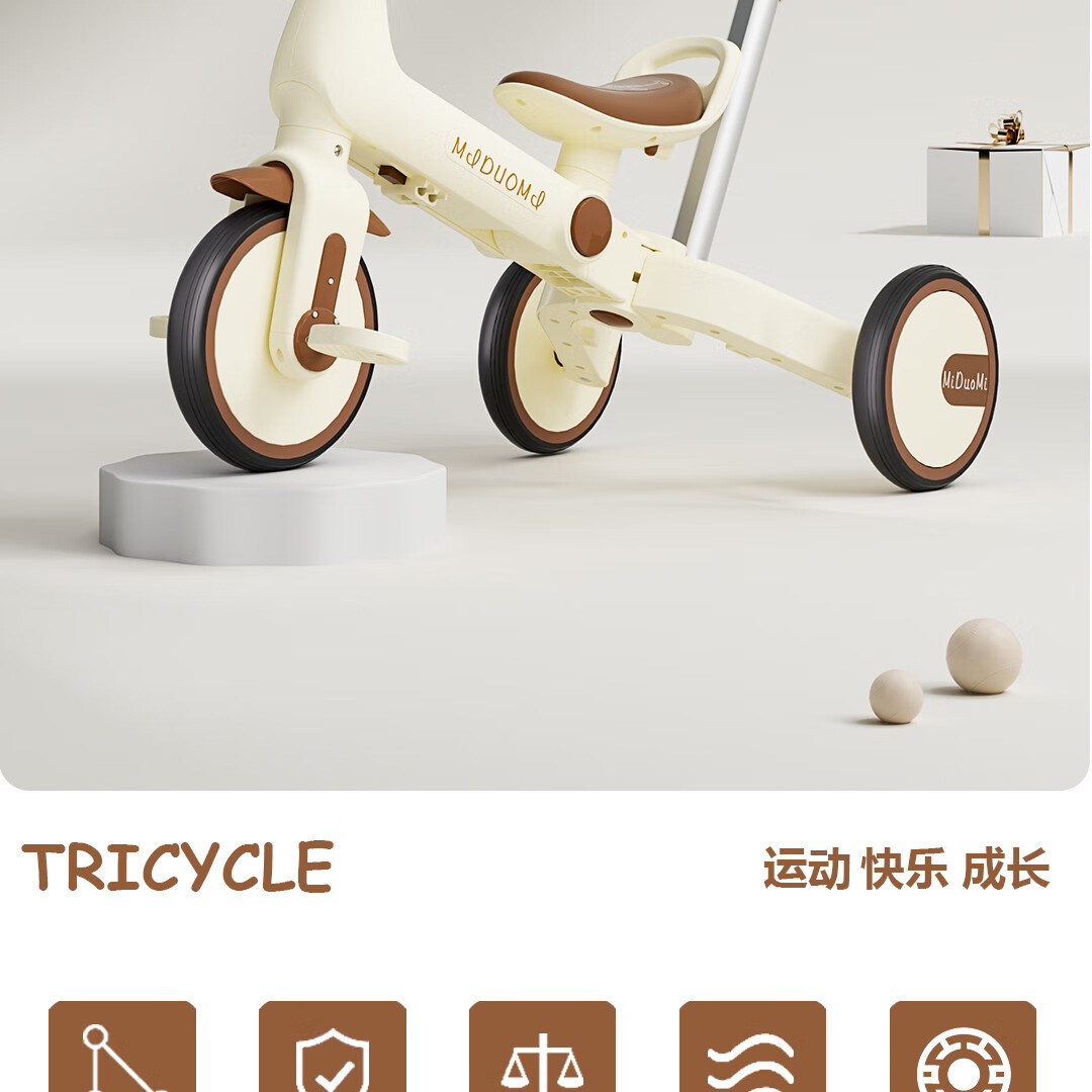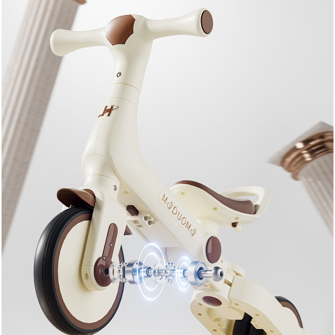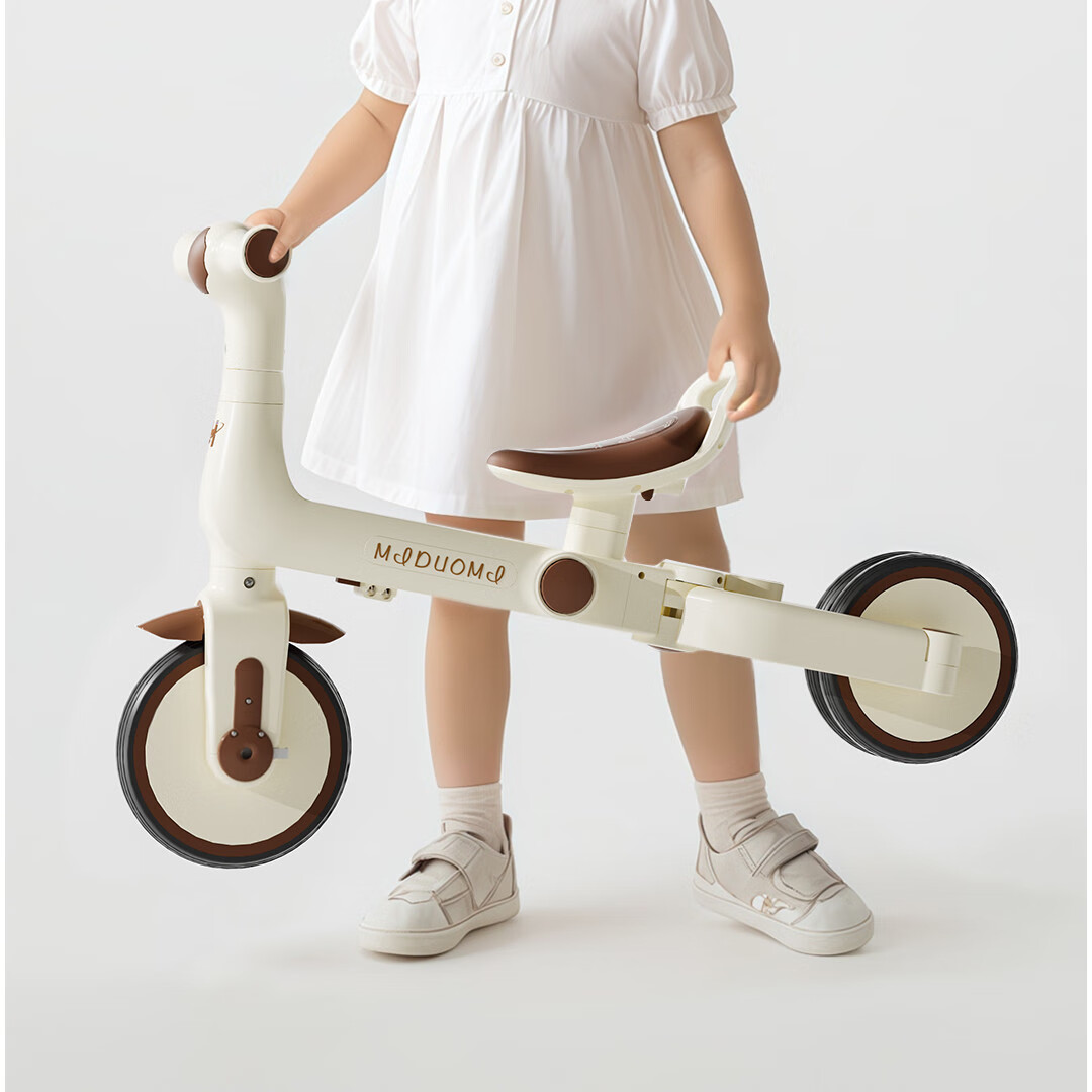 Children's tricycle and bicycle. Babies aged 3 to 6 years old can push and ride multifunctional lightweight foldable pedal balance stroller. White/with push handle + folding + basket
