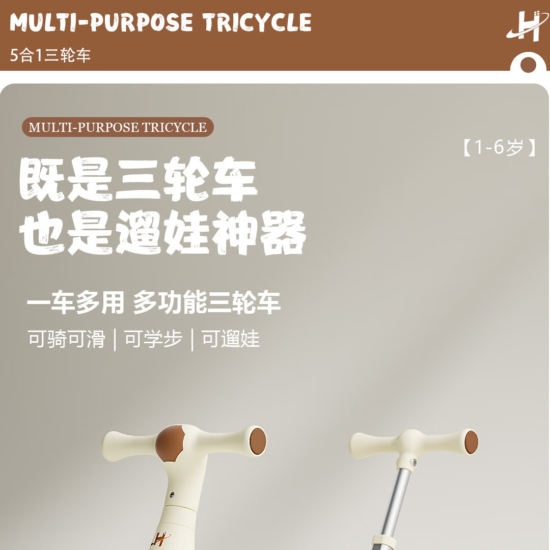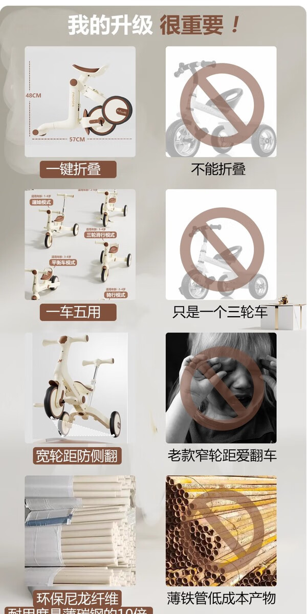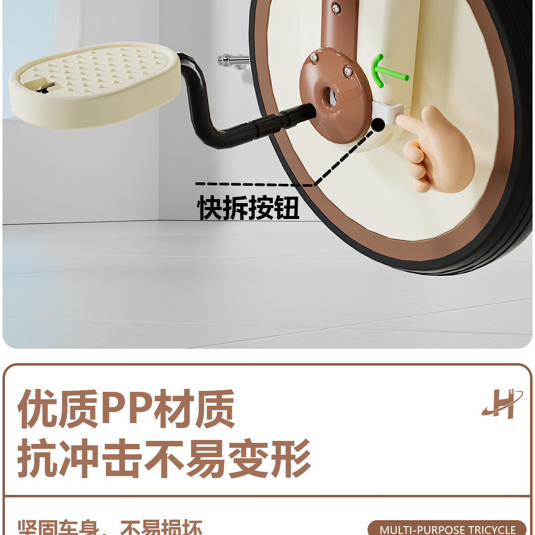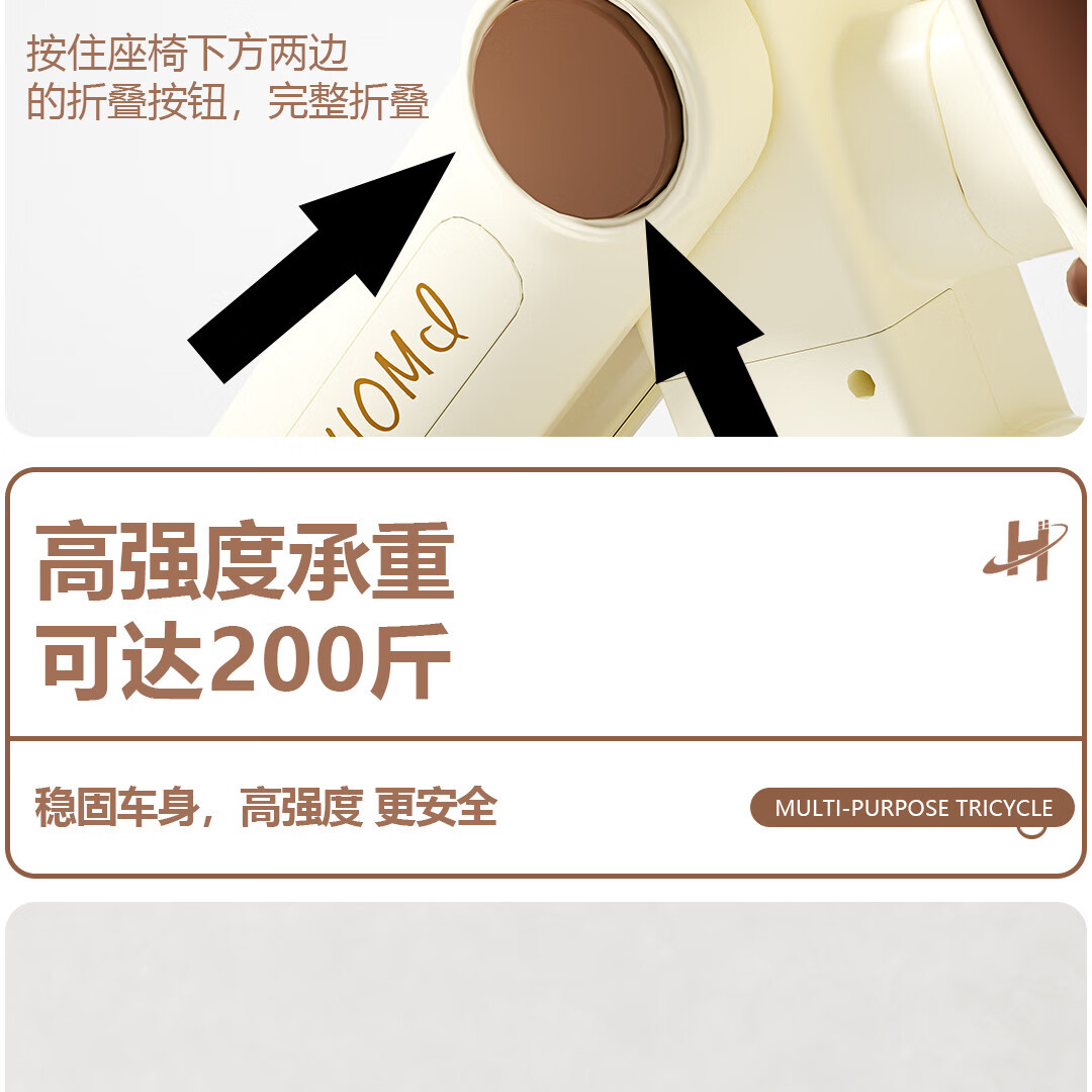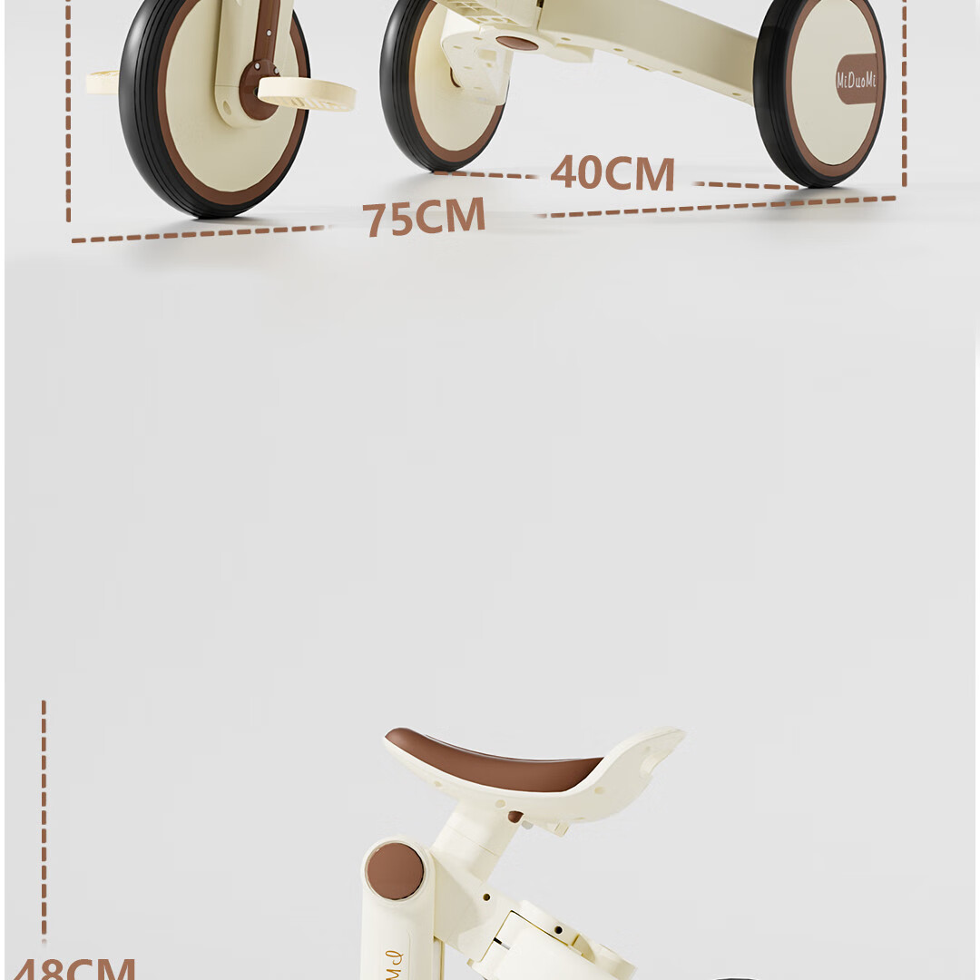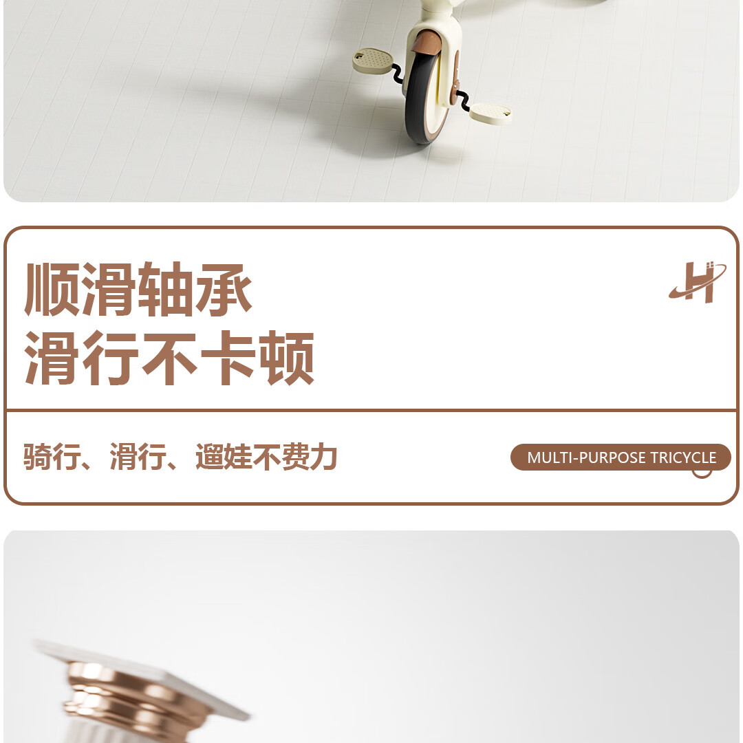 Children's tricycle and bicycle. Babies aged 3 to 6 years old can push and ride multifunctional lightweight foldable pedal balance stroller. White/with push handle + folding + basket