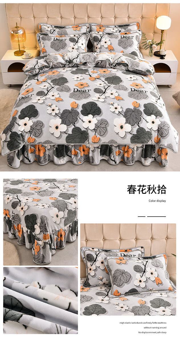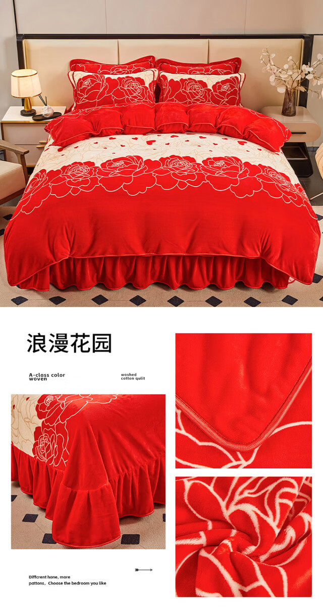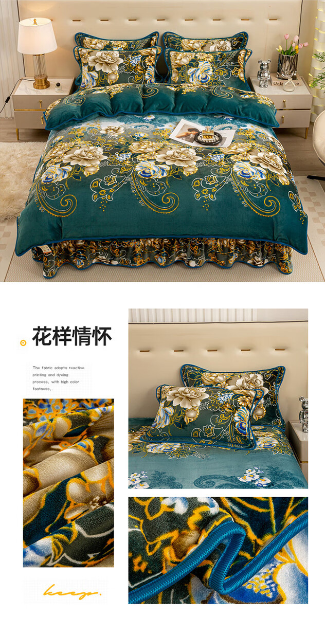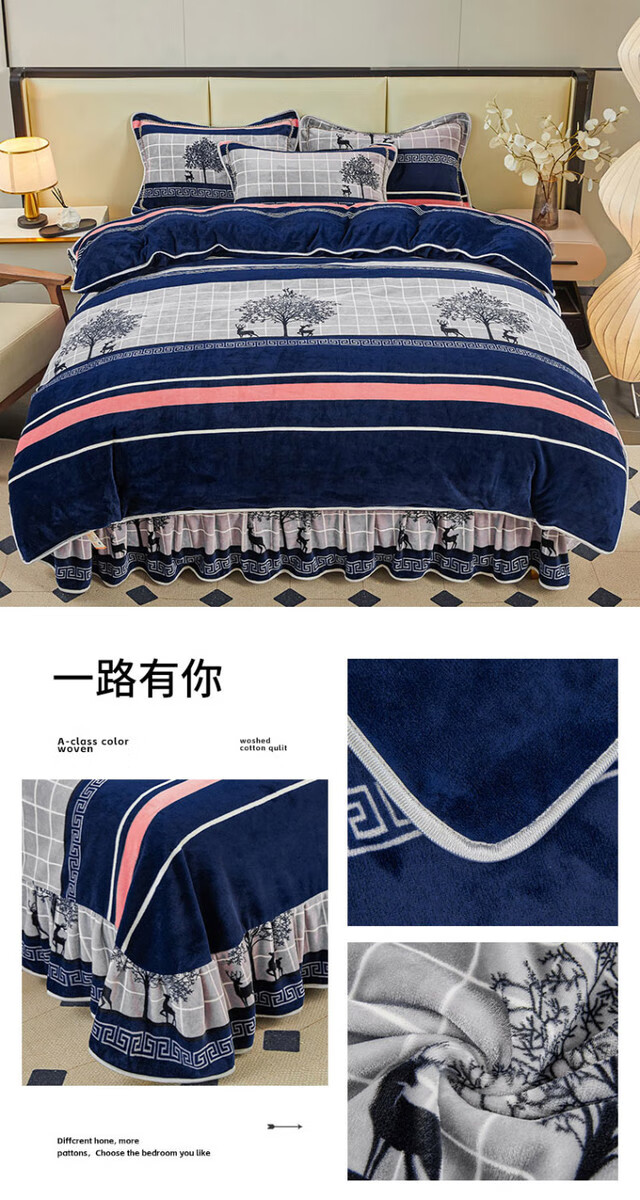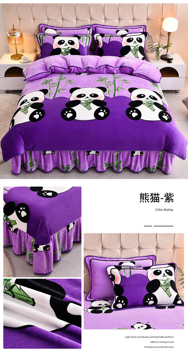 Fantasy winter thickened milk velvet four-piece set, coral velvet double-sided flannel bedding, quilt cover, bed skirt, labubb type A, suitable for infants, bed sheet style, 1.8m bed four-piece set, quilt cover 220x240cm