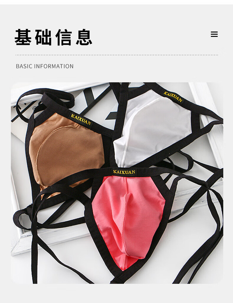 Men's sexy underwear, fun thong, ultra-thin breathable sexy pants, fun briefs, T library double underpants, black S/M