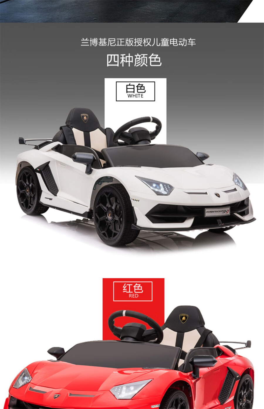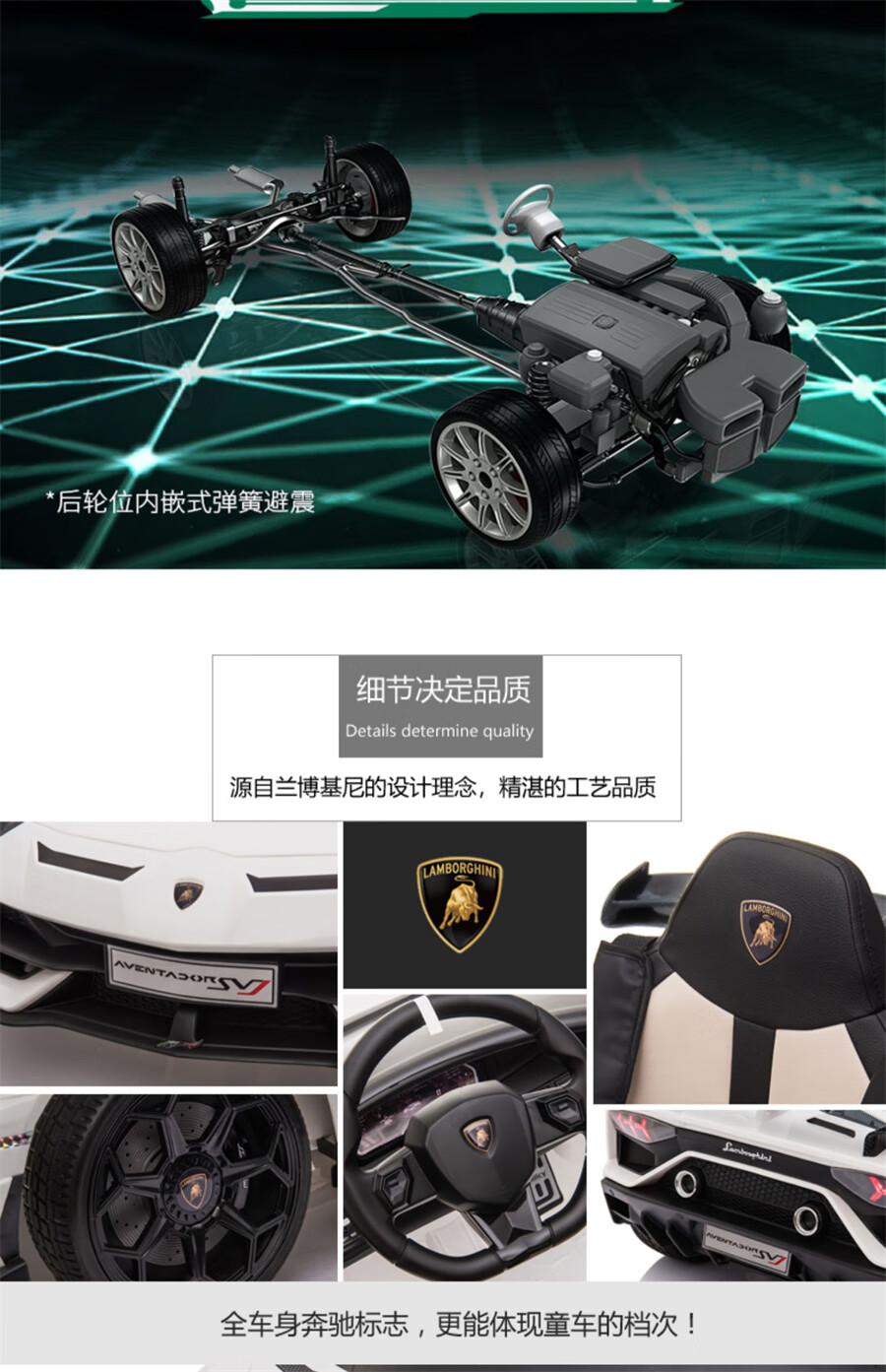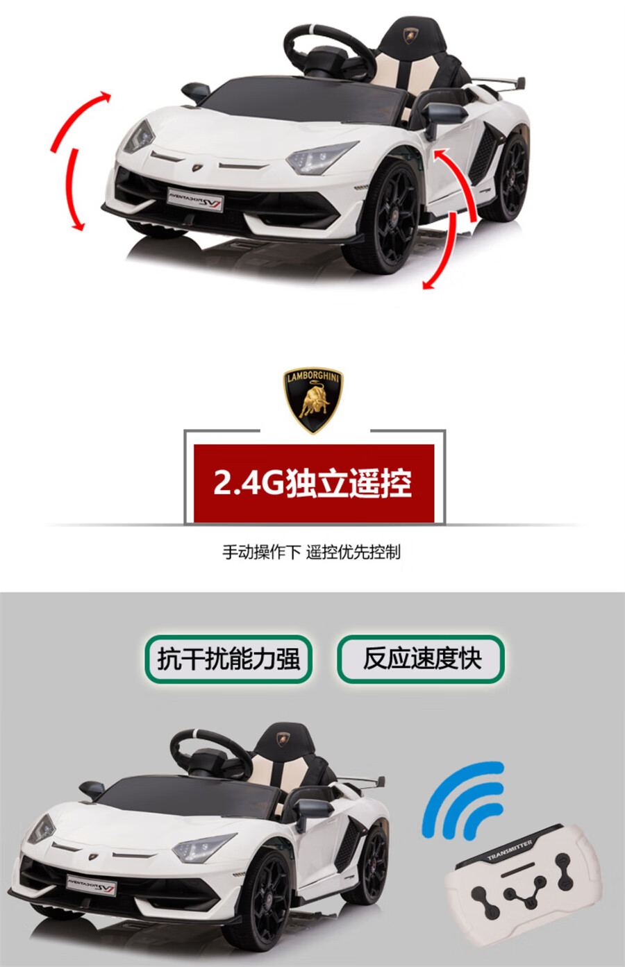 Lamborghini children's electric car four-wheel car remote control toy car can sit a child with a swing baby stroller white (Huawei smart version) with push rod/explosion-proof wheel/send board