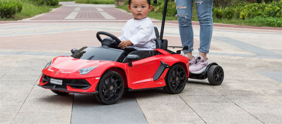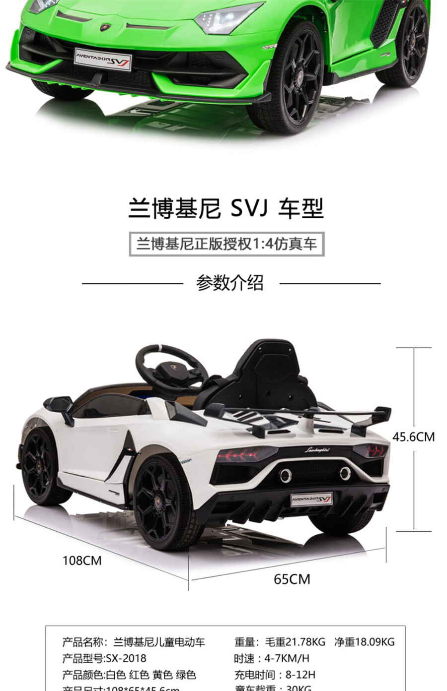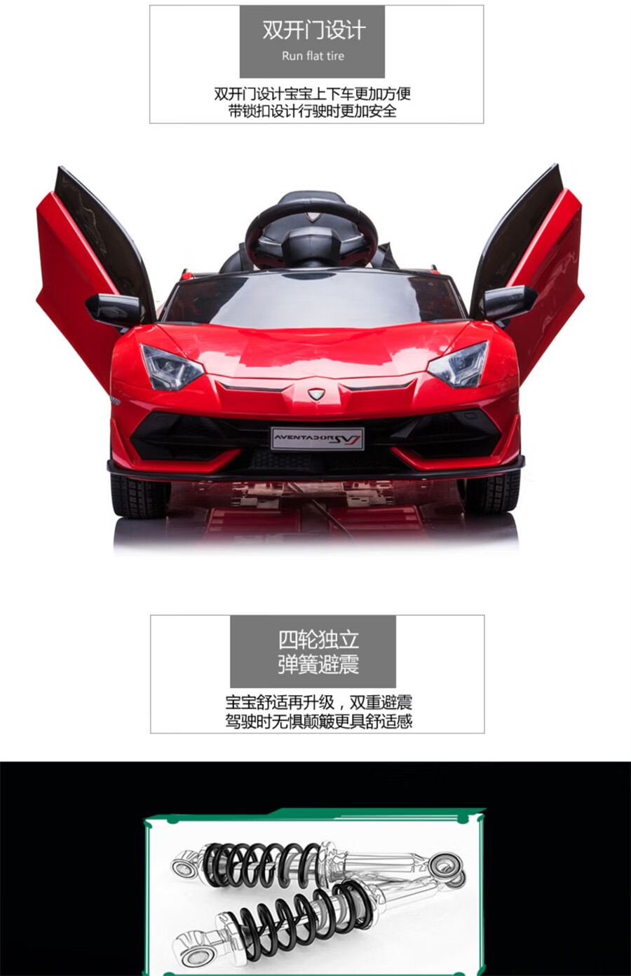 Lamborghini children's electric car four-wheel car remote control toy car can sit a child with a swing baby stroller white (Huawei smart version) with push rod/explosion-proof wheel/send board