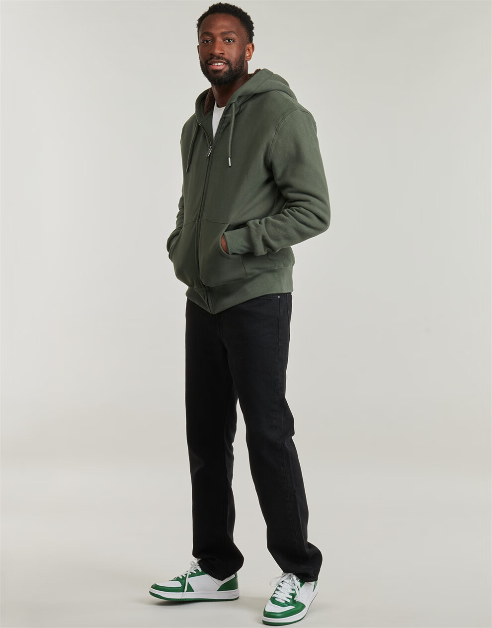 Superdry Men's Hooded Zipper Cardigan Sweatshirt Retro Khaki Plus Velvet Autumn Warm Trendy Casual Fleece Jacket Men's Khaki S (EU)